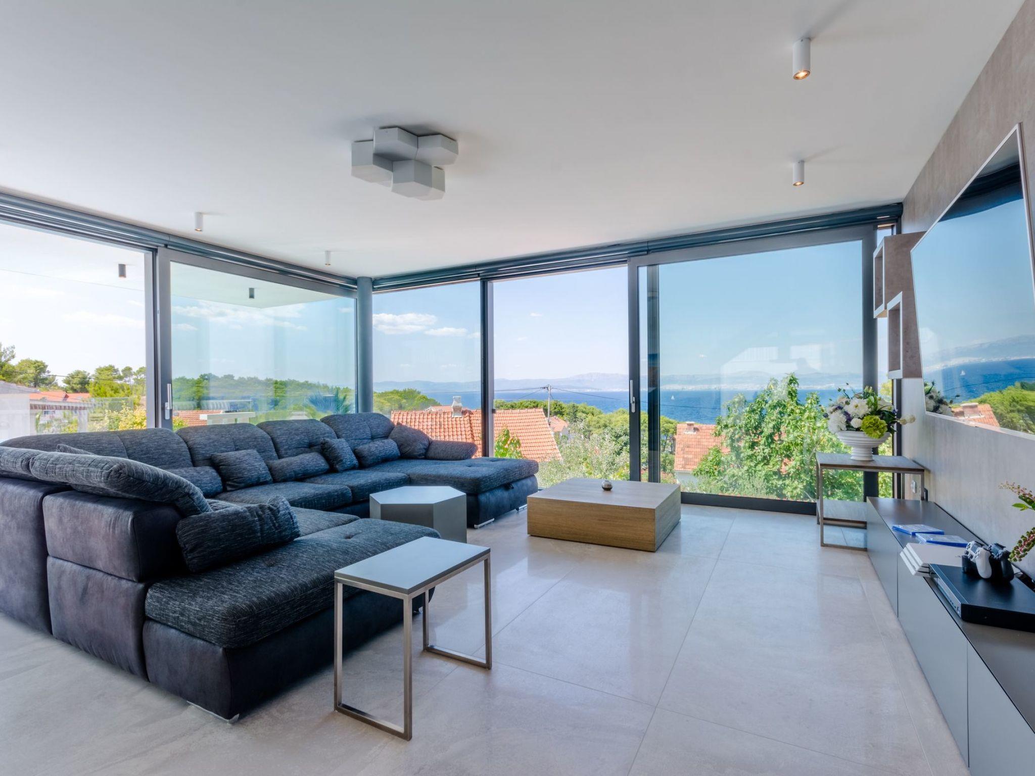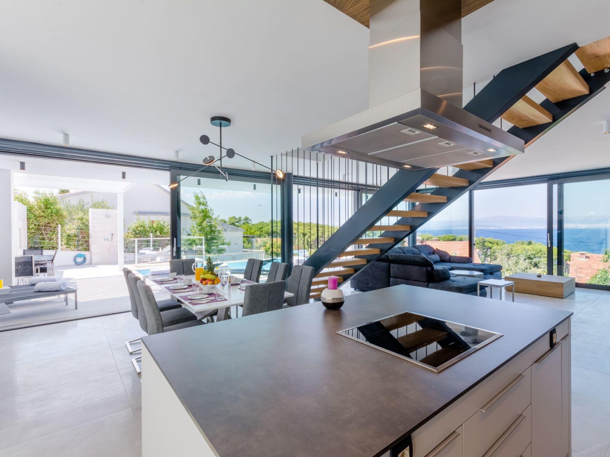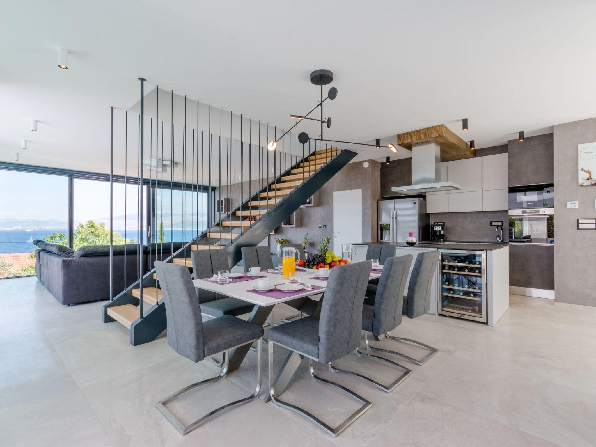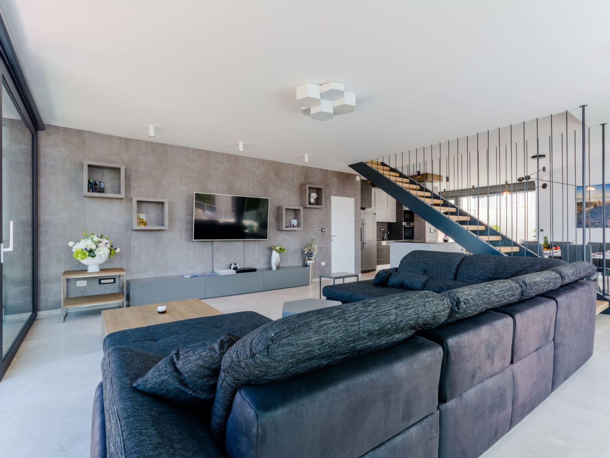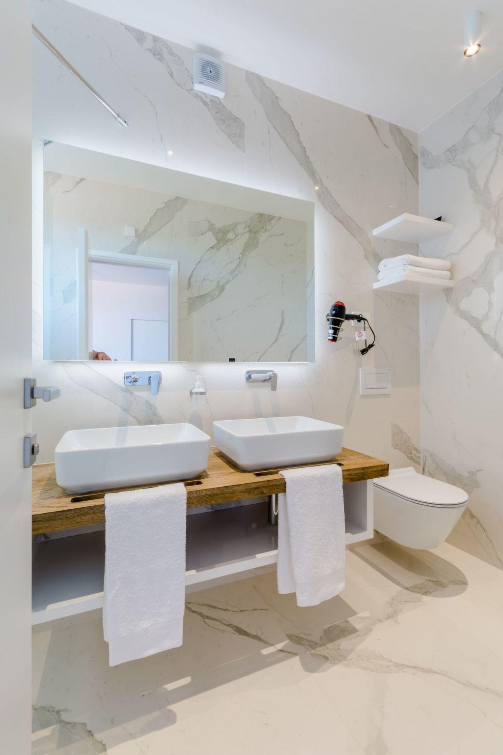 Our estate with a direct view of the Adriatic Sea was built in 2018 in compliance with cutting edge building standards, and it merges together state-of-the-art architecture and elegant luxury. You can observe the starry night sky from the seemingly edgeless heated infinity swimming pool, or enjoy the sunrise while having a delicious breakfast on the spacious terrace. Our stylishly furnished 300 m2 villa offers you a fitness room, as well as a ping pong table. Three exclusively furnished bedrooms with private bathrooms and king-size beds welcome you to dreamland. We also provide you with free high-speed wireless Internet, as well as with LED smart TVs in every bedroom and in the living room.