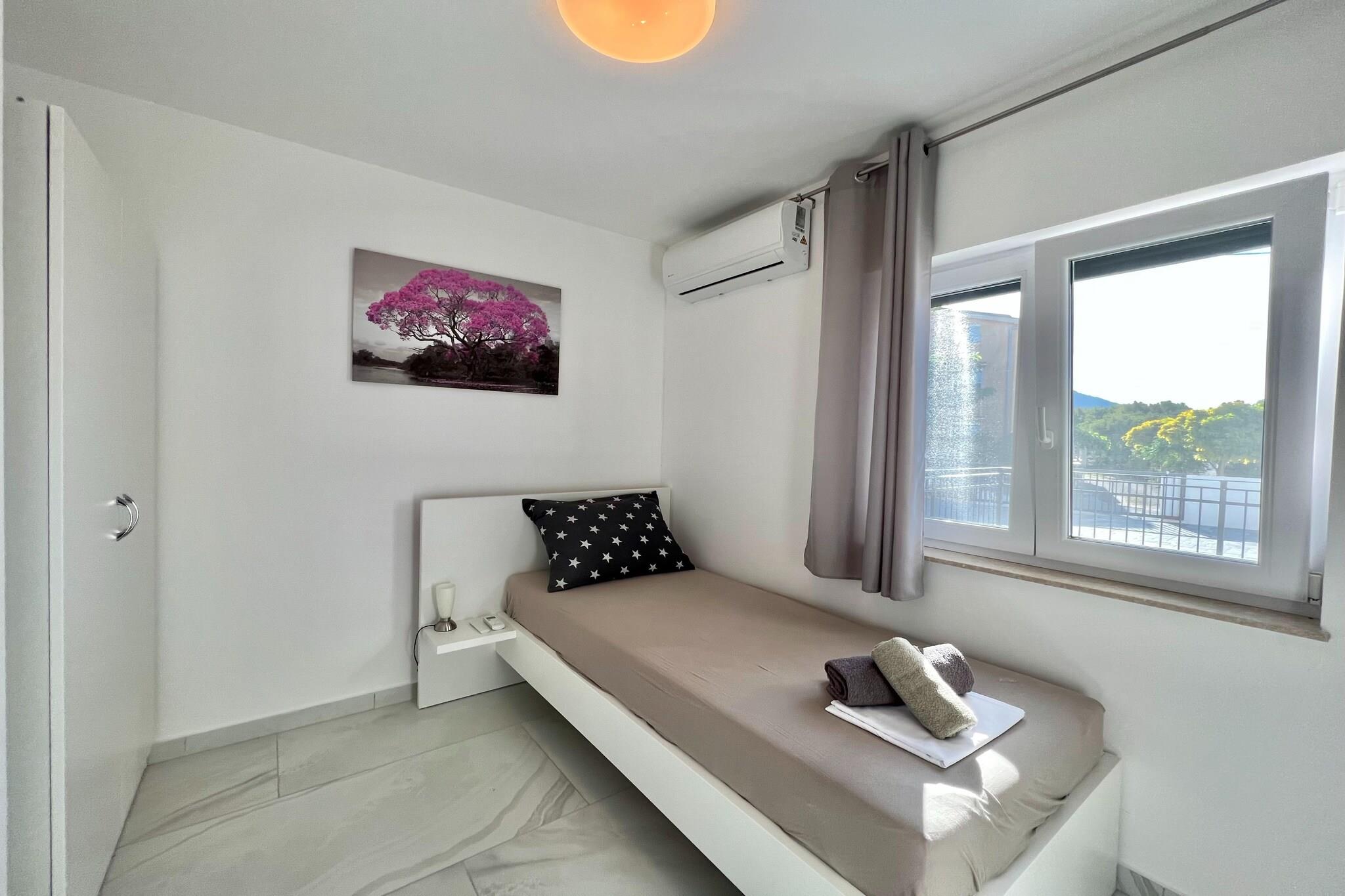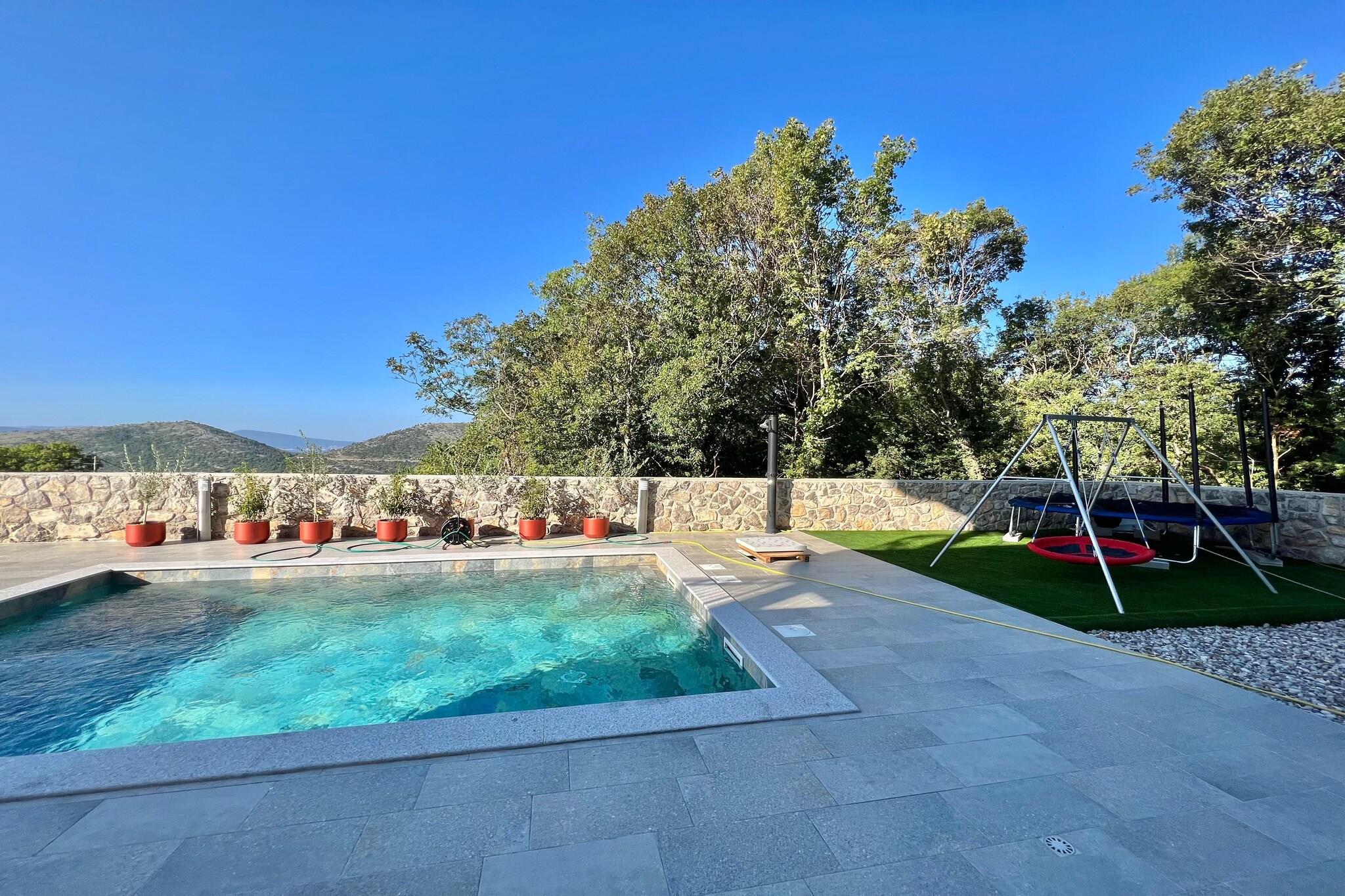 Beliggende i den fredelige landsby Bribir, denne rummelige 10-værelses villa kan rumme op til 18 gæster, hvilket gør den ideel til store familier eller grupperejser. Kun 8 km fra havet og stranden og 9 km fra Crikvenicas pulserende centrum tilbyder det en perfekt blanding af afslapning og nærliggende eventyr. Den private pool, haven og den udendørs pejs skaber rolige rammer for solbeskinnede dage og hyggelige aftener. Fordelt på tre etager har villaen flere opholdsområder, et fuldt udstyret køkken og syv badeværelser, hvilket sikrer komfort og privatliv for alle. Hvert soveværelse har aircondition, og flere åbner ud til private balkoner. Nyd faciliteter såsom satellit-tv, gratis WiFi, bordfodbold og et grillområde, plus en barneseng, vaskemaskine og strygefaciliteter for ekstra bekvemmelighed. Den indhegnede have omfatter liggestole, en terrasse og privat parkering. Med Rijeka Lufthavn kun 30 km væk, og attraktioner såsom vandsport og natteliv inden for 9 km, er denne villa en velindrettet base for at udforske Kvarner-regionen.