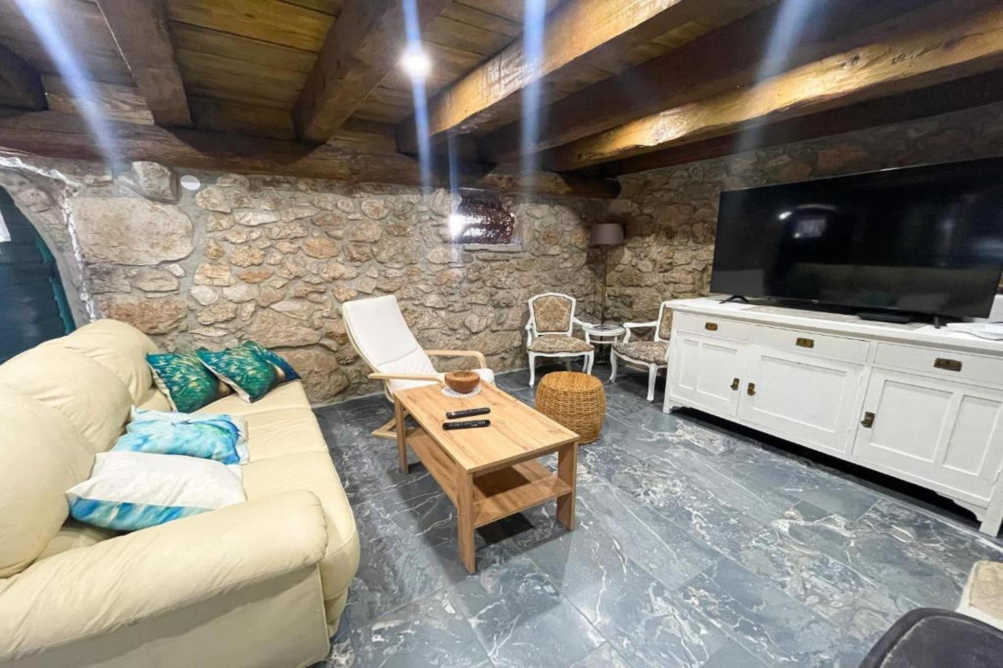 Stueetage: (Stue(enkeltsovesofa, Fjernsyn(fladskærm, parabol), sofahjørne), Køkken(spisebord, elkedel, brødrister, komfur, kaffemaskine, ovn, mikrobølgeovn, opvaskemaskine , køle-fryseskab, ), badeværelse, terrasse(privat)) På 1. etage: (Soveværelse med badeværelse(enkeltseng, dobbeltseng, bruser, håndvask, toilet), Soveværelse med badeværelse(enkeltseng, dobbeltseng, bruser, håndvask, toilet), balkon) udekøkken, bruser(udendørs), vaskemaskine, vaskemaskine, klimaanlæg, terrasse(privat), have(privat), havemøbler, solstole, grill, parkering, Parasol, swimmingpool(privat), strygebræt, strygejern, føntørrer, loungemøbler