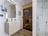 - *En Suite bathroom with a walk-in shower, a washbasin with a work surface and a hair dryer,