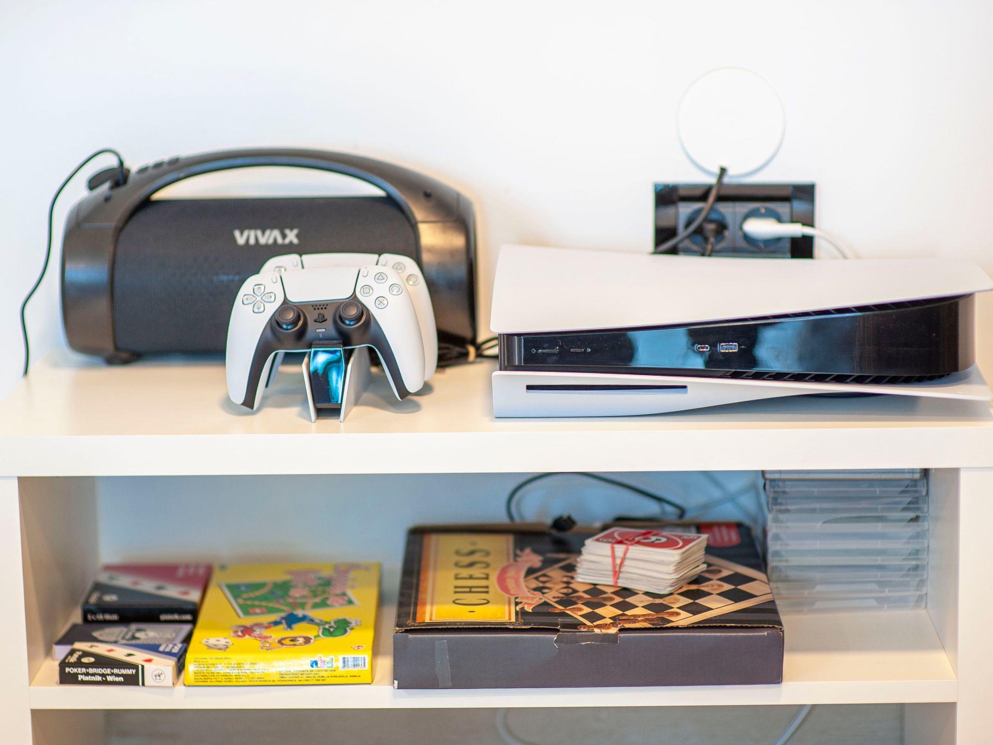 - Living room for children with big LED TV and PlayStation, Social Games (UNO, Ludo, Chess, Belote cards…)