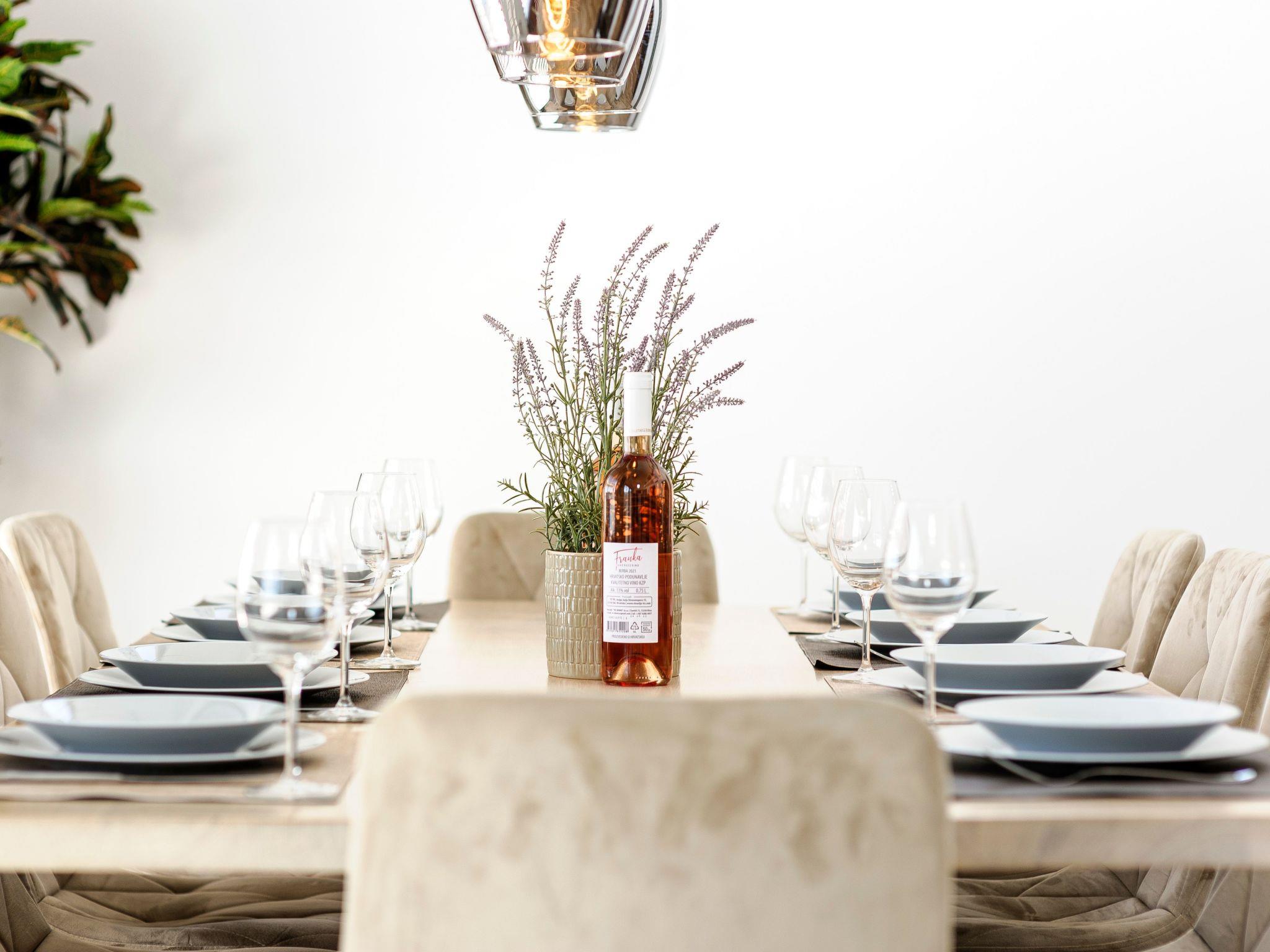 - Outdoor terrace (150 m2) next to a pool with a large table for 12 people, pool deck chairs and outdoor shower