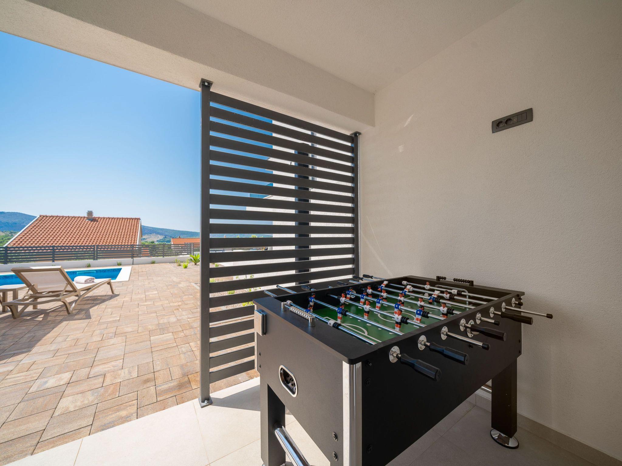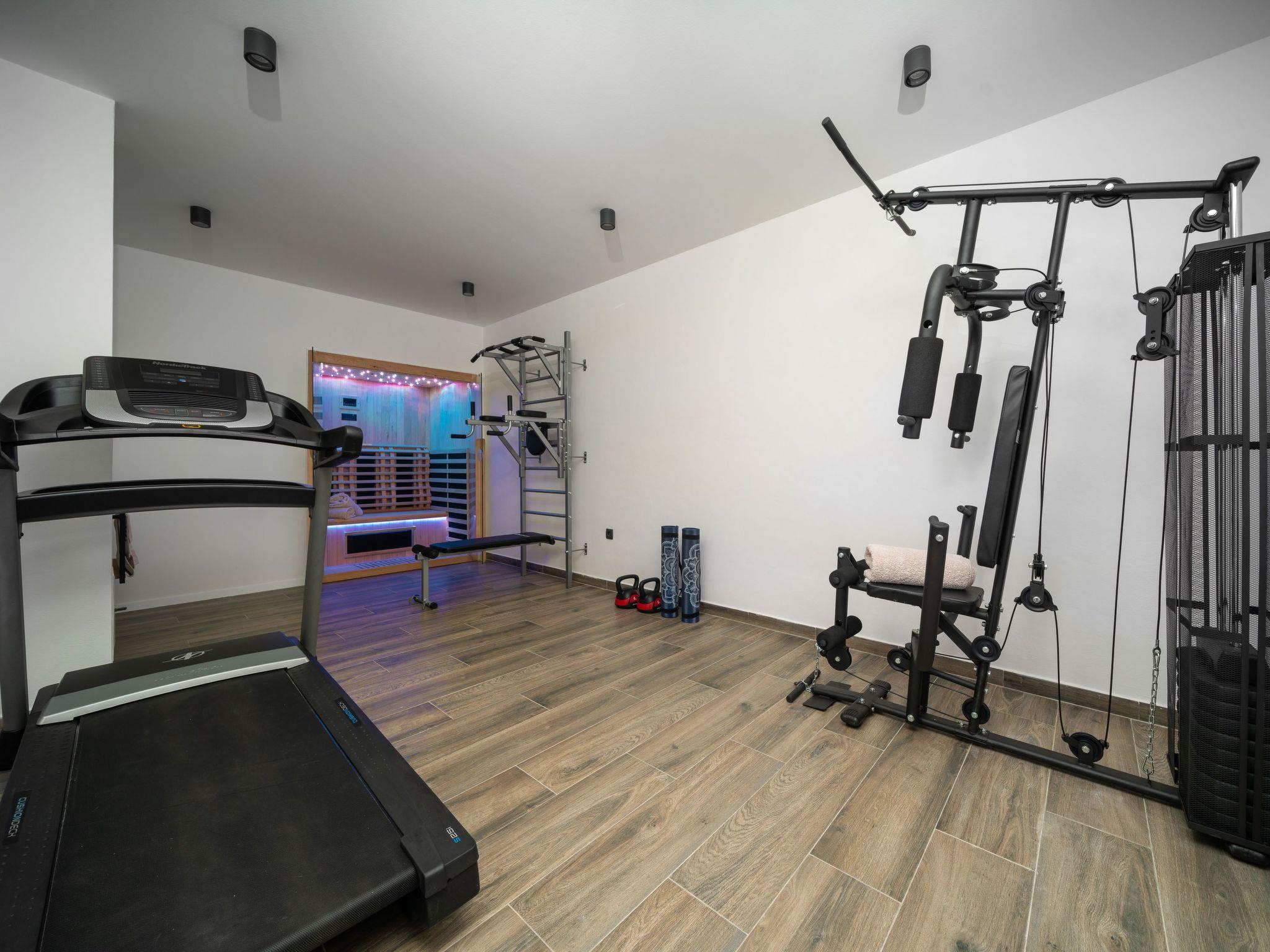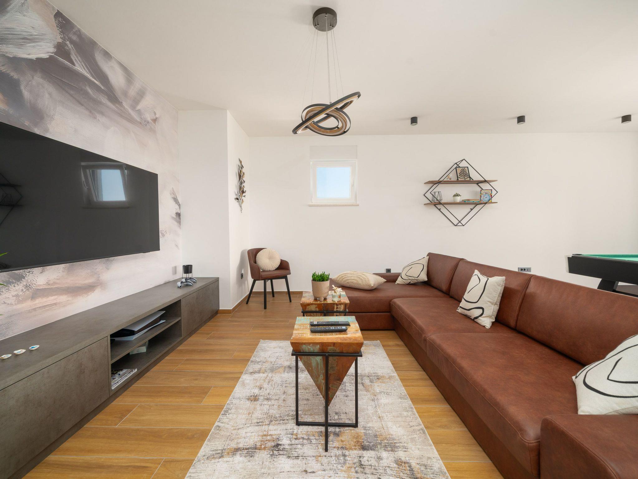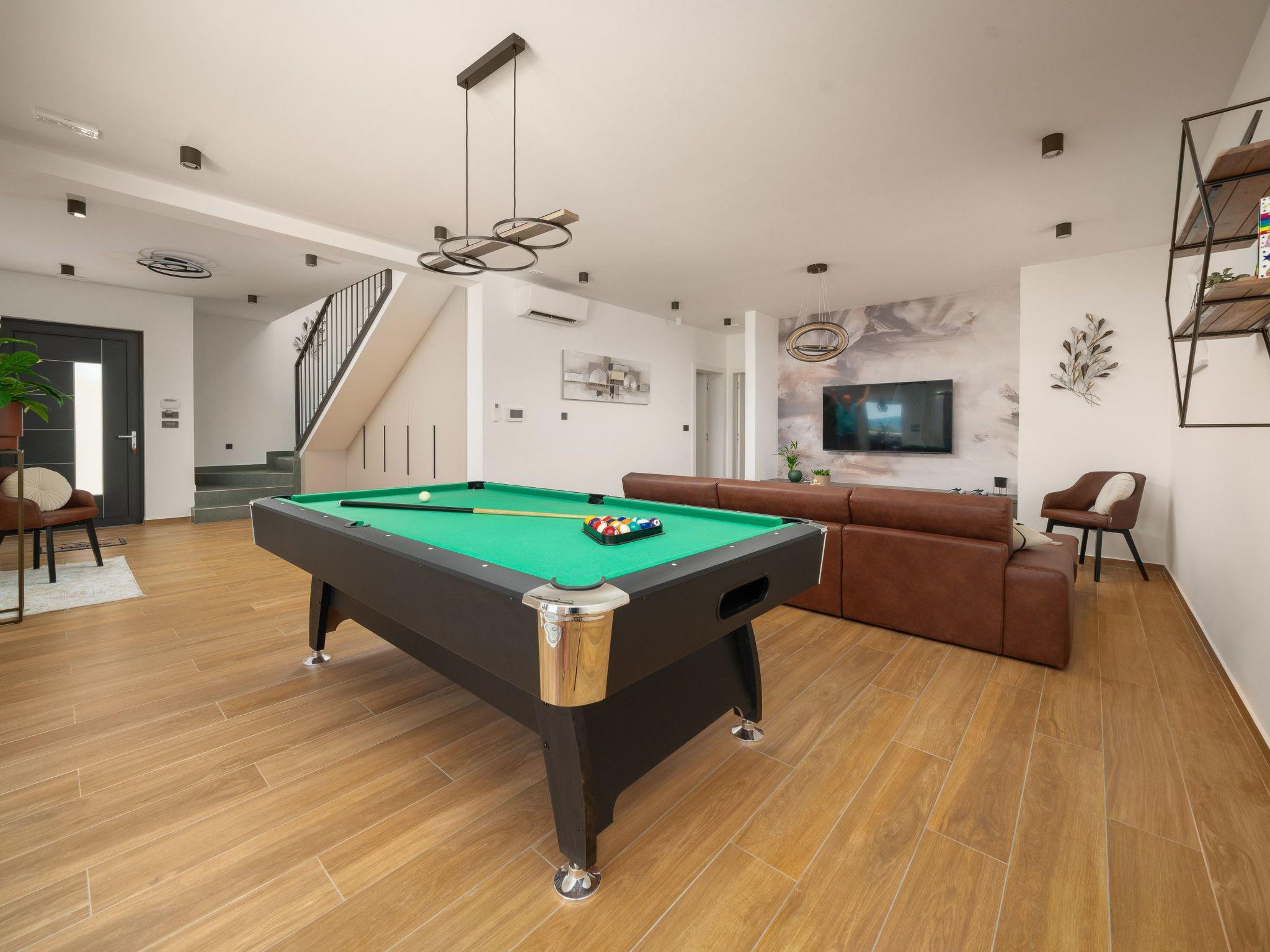 Inside Villa Suncica, you'll find a thoughtfully designed space that caters to your every need. The house features four well-appointed bedrooms, each providing a private sanctuary for rest and rejuvenation. Five bathrooms ensure convenience and privacy for all guests, complemented by modern amenities such as a washing machine and clothes dryer for exclusive use. The villa is also equipped with a coffee machine, dishwasher, and electric kettle, making daily routines effortless. The entertainment options are plentiful, with a fitness room, sauna, billiards, and table football available for guests' enjoyment.