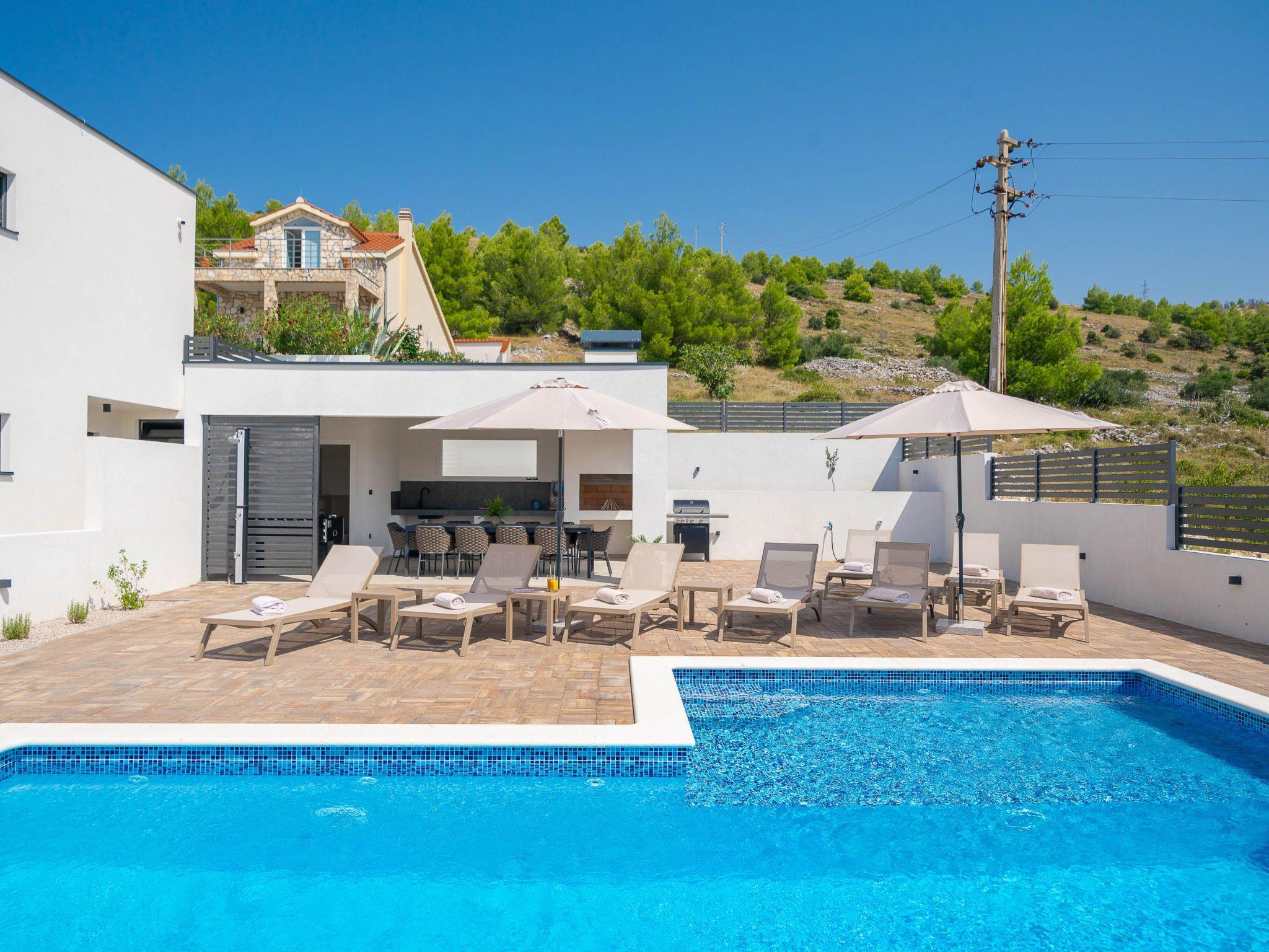 The outdoor area of Villa Suncica is equally impressive, designed to provide the ultimate in leisure and relaxation. A beautiful yard embraces a heated pool, promising endless fun and refreshment under the sun. The outdoor kitchen invites you to indulge in al fresco dining, creating memorable meals in the company of loved ones. Additionally, a private roof terrace offers a secluded spot to unwind or entertain, making every moment spent outdoors truly unforgettable.
