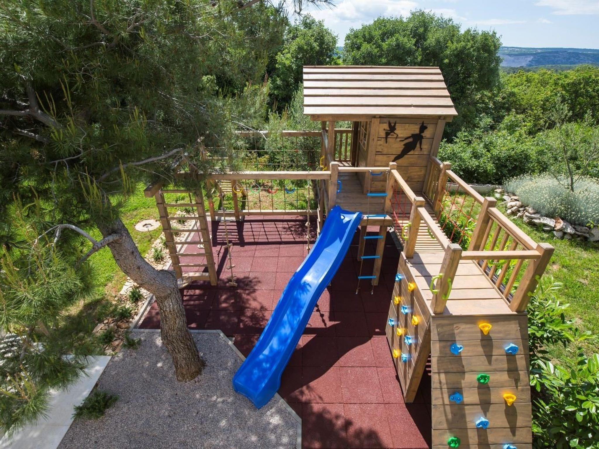 The fully fenced yard of the villa is ideal for children and adults. There is an outdoor dining room, barbecue, and garden at their disposal. Also, there is a spacious pool with a surface of 58 m2 near which there is a jacuzzi. Children can play safely in the spacious children's playground.