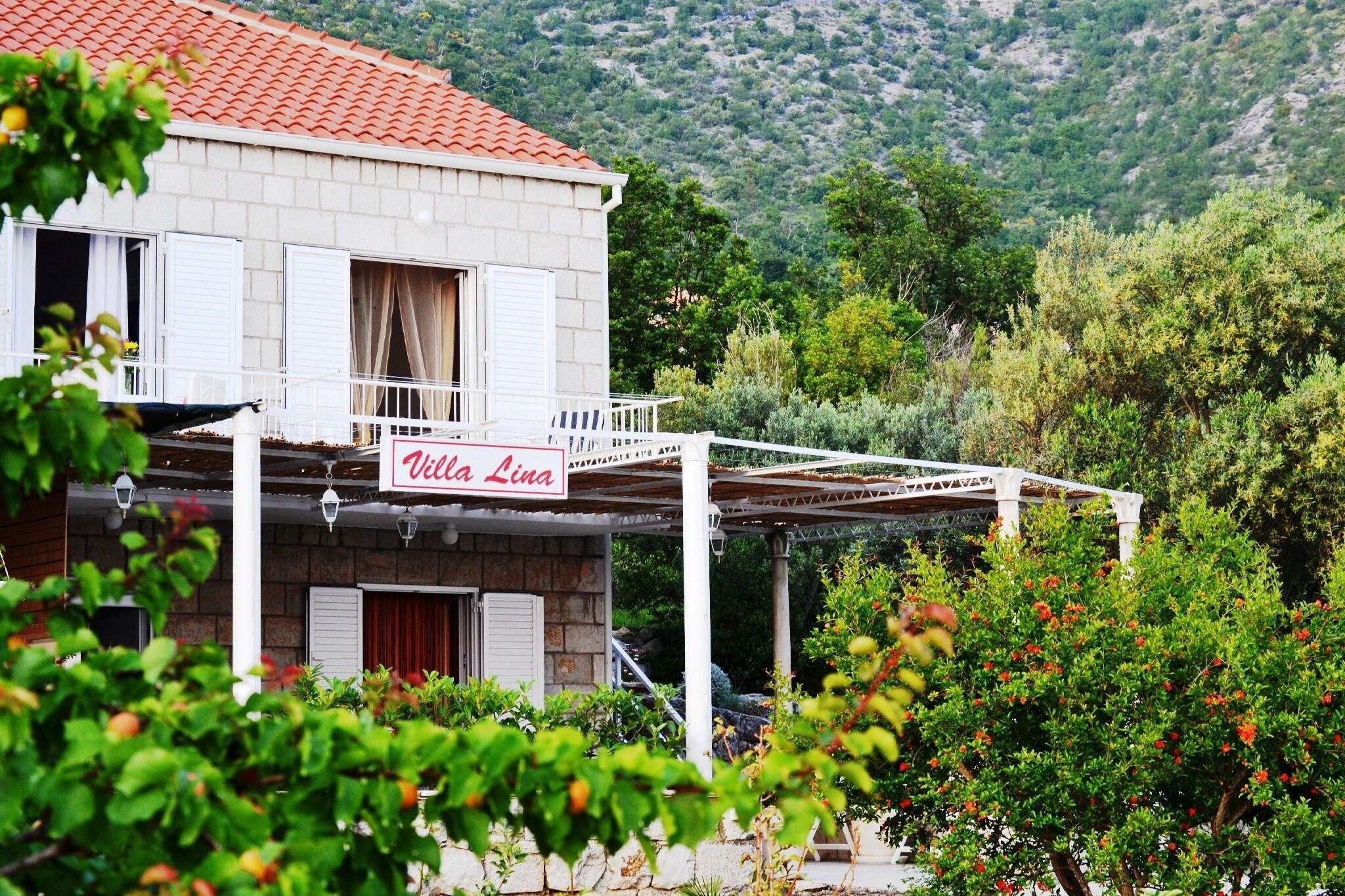 Villa Lina tilbyder indkvartering med egen forplejning beliggende i Brsecine, i et fredeligt landligt indre område med intakt natur og rig vegetation. I tilfælde af at du ankommer tidligere, bemærk venligst, at du vil være i stand til at efterlade din bagage, men lad os venligst vide det inden, så vi kan rådgive med ejerne. Der tilbydes gratis WiFi, og der er gratis parkering på stedet. Kæledyr må bo med varsel (7 euro pr. dag/ pr. kæledyr). Rengøringsgebyr er 50 euro, og gæsterne betaler det direkte til ejeren. Indkvarteringen repræsenterer en villa med fem soveværelser med to stueetagen værelser med en dobbeltseng og to enkeltsenge, et familie badeværelse, en stue og fuldt udstyret køkken, LCD SAT TV, opholdsområde og aircondition. Villaen har også to dobbeltværelser, 1 tredobbelt værelse med tre enkeltsenge og et værelse med sofa til ekstra to gæster. Hvert værelse har aircondition og familiebadeværelse. Et dobbeltværelse og et værelse med sofa giver også balkon. Indkvarteringen byder på en terrasse med udendørsmøbler, fælles grill og smuk udsigt over havet og haven.Holiday Home Lina er beliggende i Brsecine, en landsby kun 18 km væk fra det historiske og kulturelle centrum Dubrovnik. Det tilbyder en perfekt komme væk fra hverdagen og stress, vækker alle sanser og opfylder ønsket om at opleve den ideelle ferie med venner og familie. Ejendommen er omgivet af en gammel olivenlund og have med indfødte planter og citrusfrugter.Den nærmeste strand ligger 400 m fra ejendommen og kan nås på ca. 8 minutter til fods eller 1 minut med køretøj.Strand 350 meterBusstation 50 meterSupermarked 10 km Pæleport 24 km