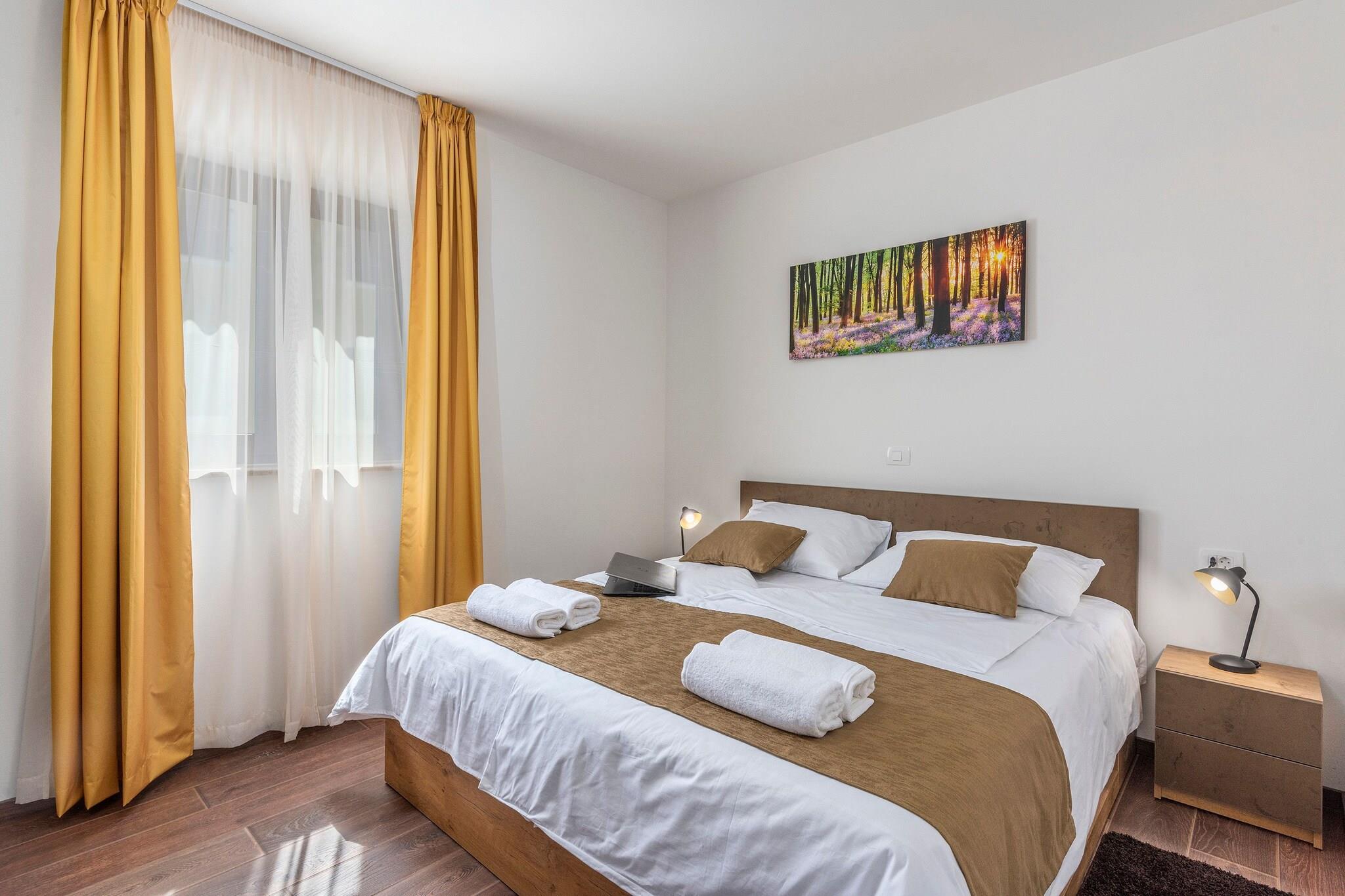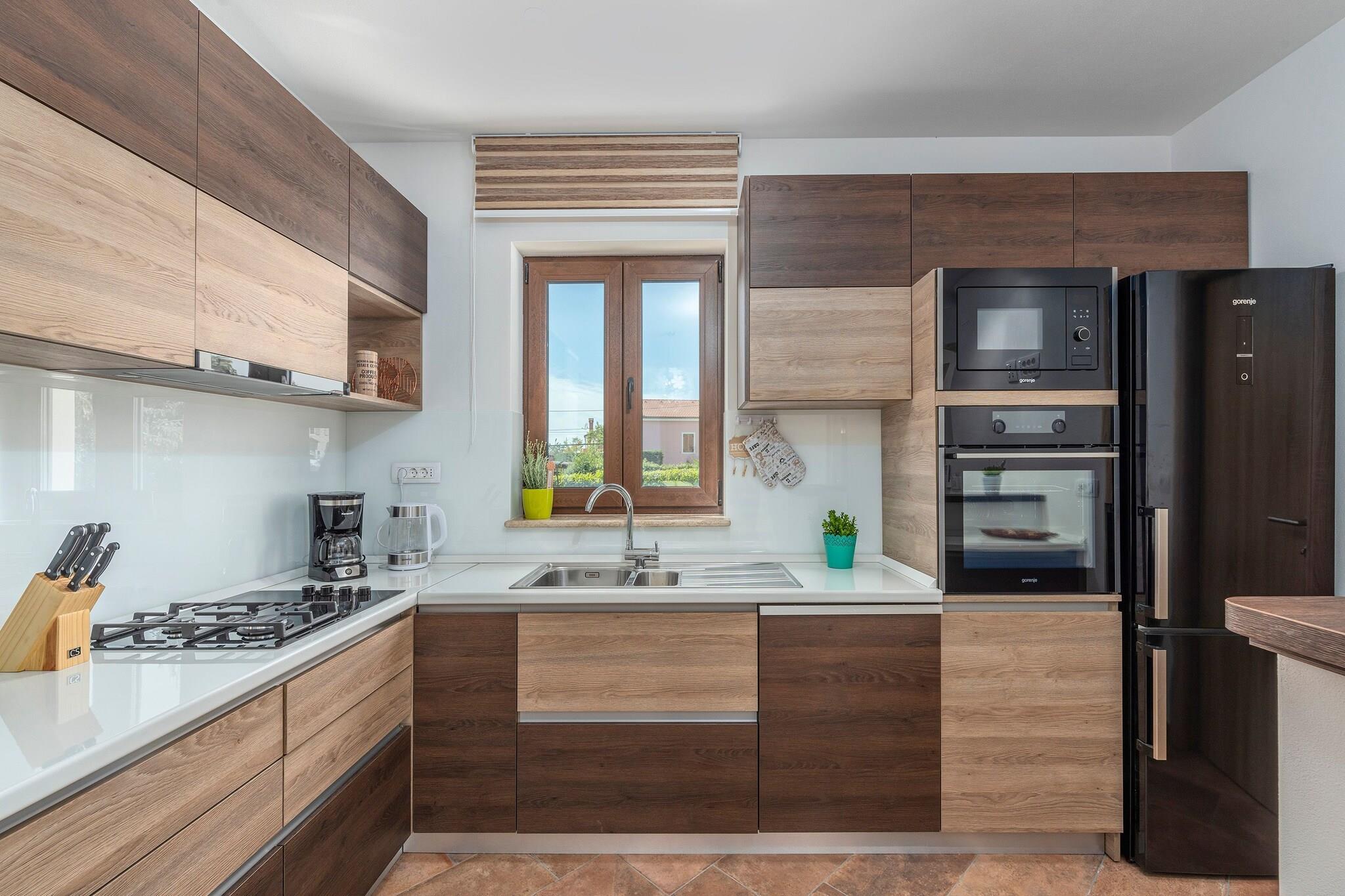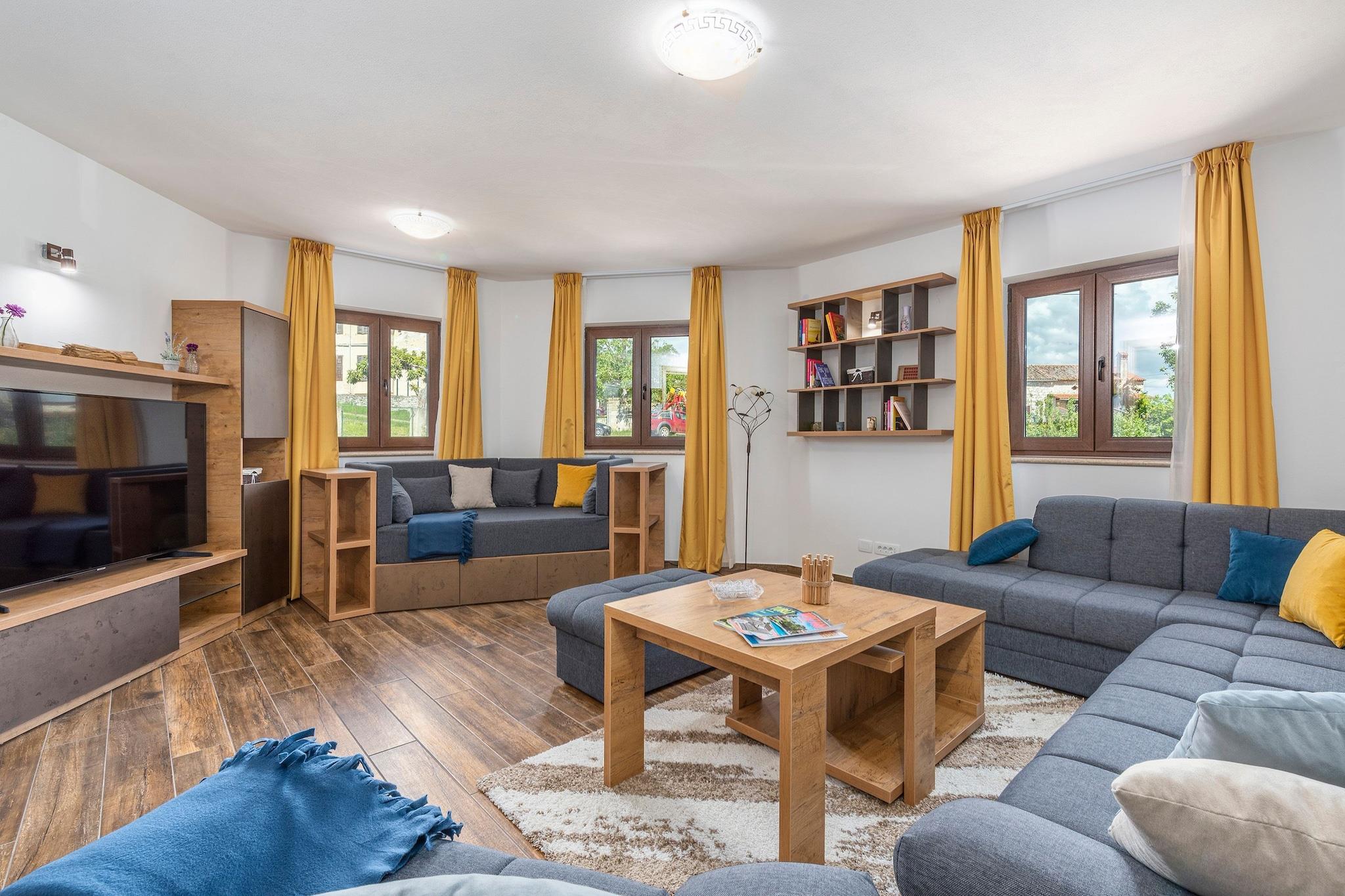 Stueetage: (Køkken(spisebord, kaffemaskine, ovn, mikrobølgeovn, opvaskemaskine , køle-fryseskab, vaskemaskine), stue / spisestue(enkeltsovesofa, Fjernsyn(parabol), sofahjørne), soveværelse(dobbeltseng), soveværelse(2x enkeltseng), soveværelse(enkeltseng, feltseng), badeværelse(badekar), badeværelse(bruser)) varme, klimaanlæg, terrasse, have(privat), havemøbler, grill, parkering, swimmingpool(privat)