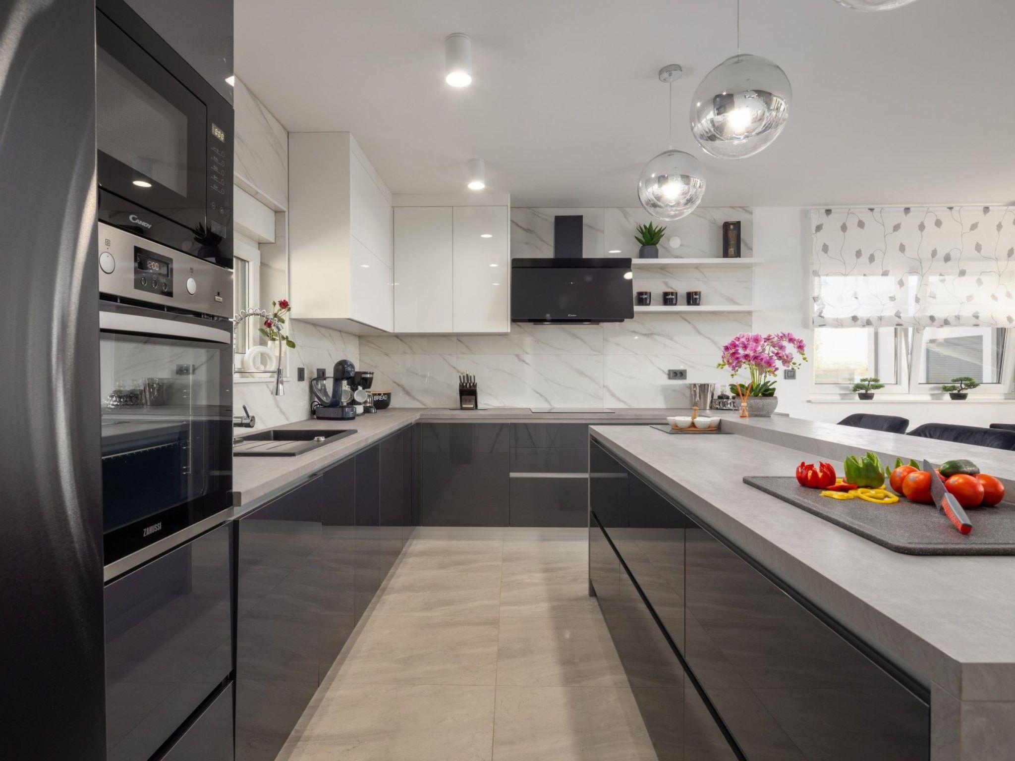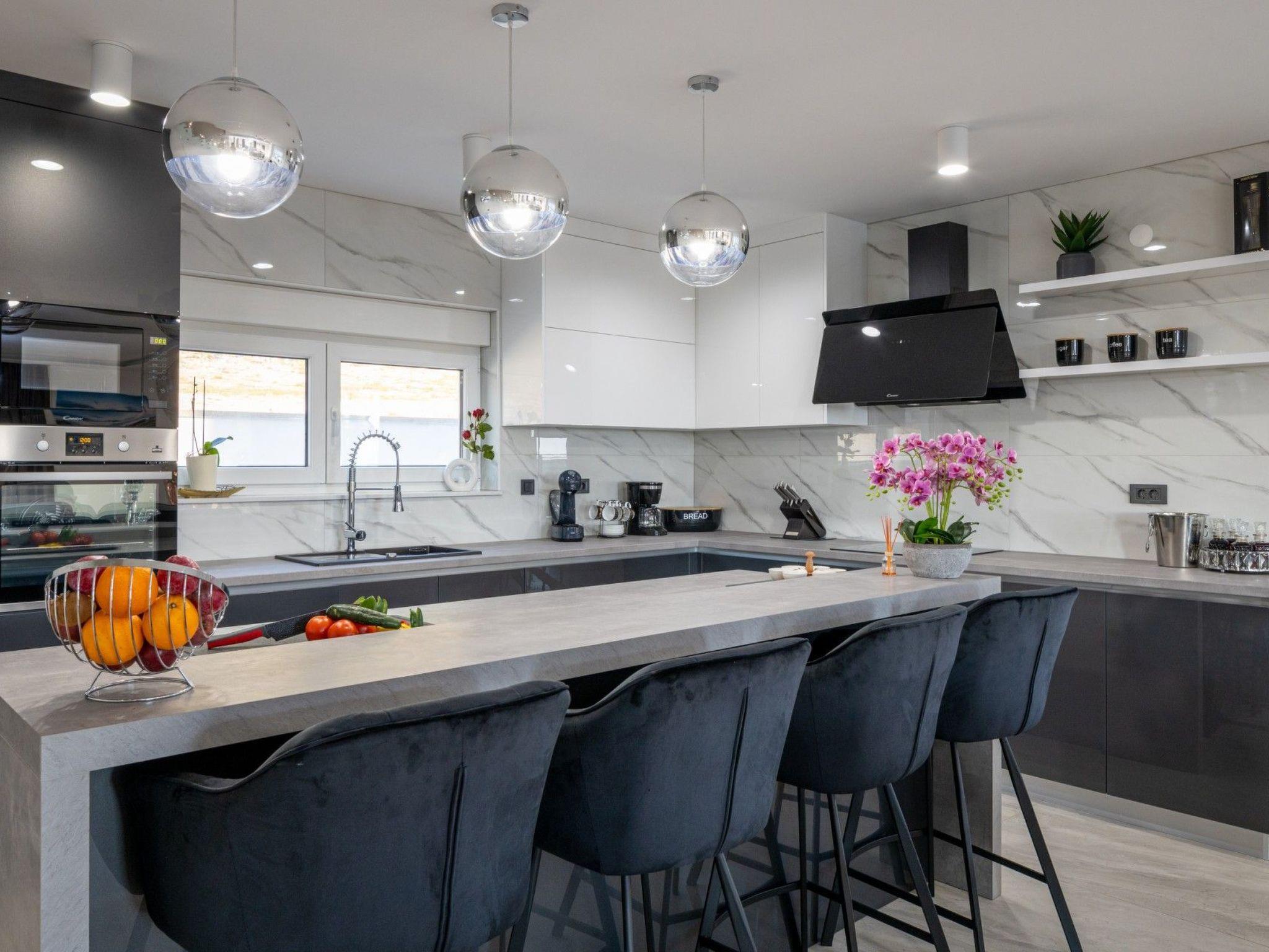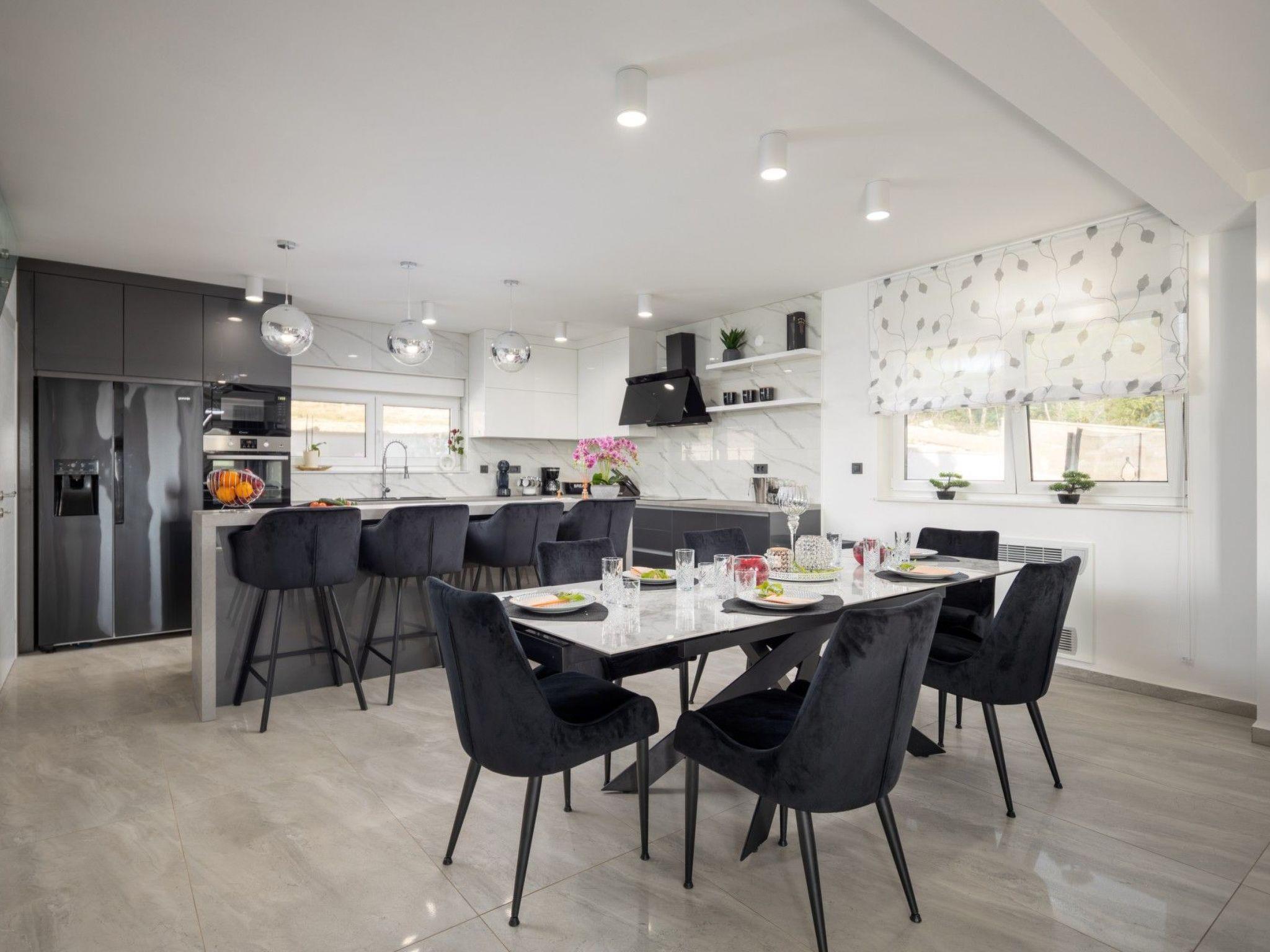 The interior of Villa Bura is thoughtfully designed to cater to your every need. Equipped with air conditioning and underfloor heating throughout, the villa ensures your comfort regardless of the season. Each of the four spacious bedrooms promises restful nights, complemented by three well-appointed bathrooms, enhancing your stay with privacy and convenience. The villa's state-of-the-art kitchen, complete with a dishwasher, coffee machine, and electric kettle, makes meal preparation a breeze. Additionally, a washing machine and clothes dryer are exclusively available for guests' use, ensuring all the comforts of home.