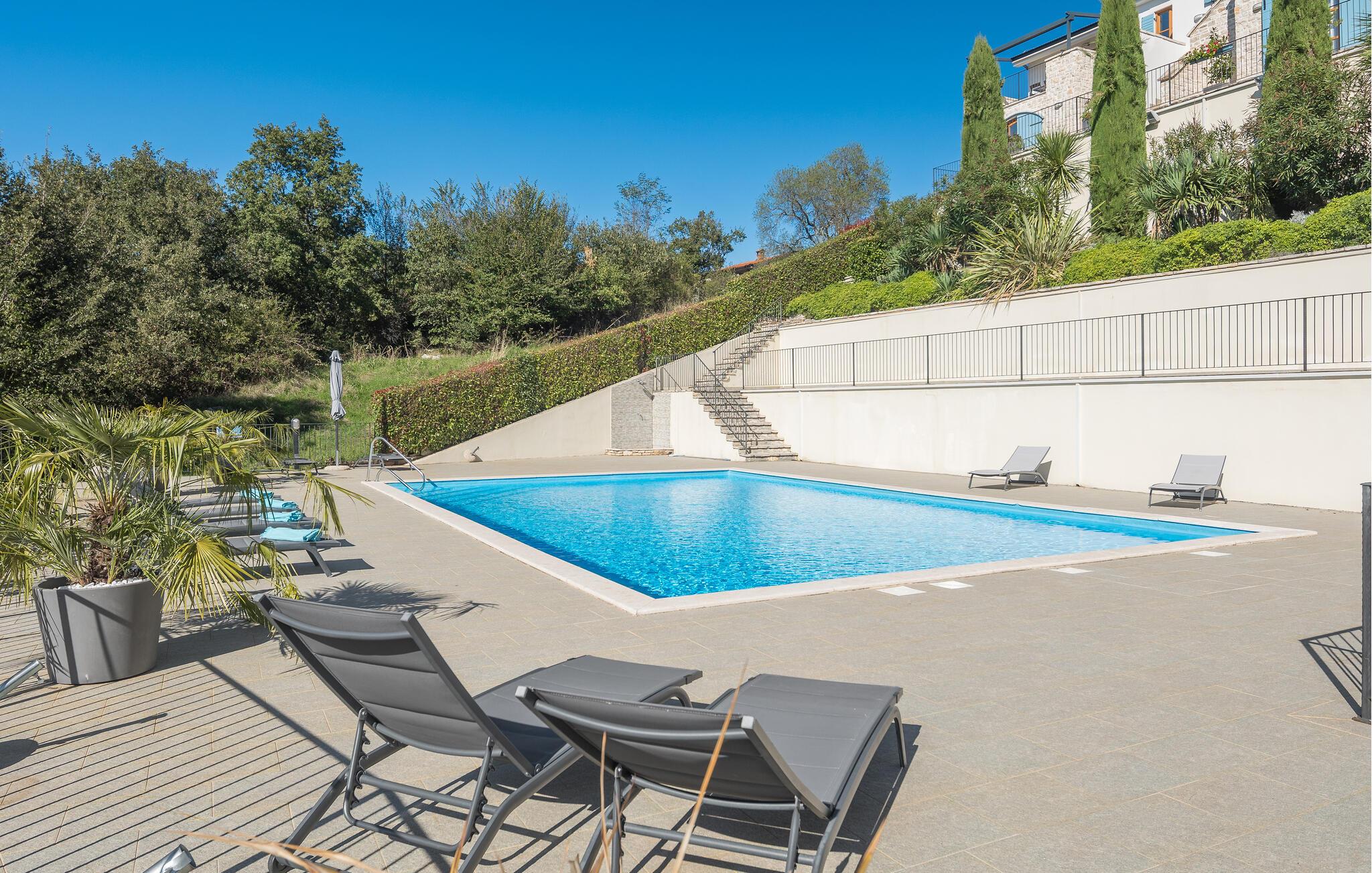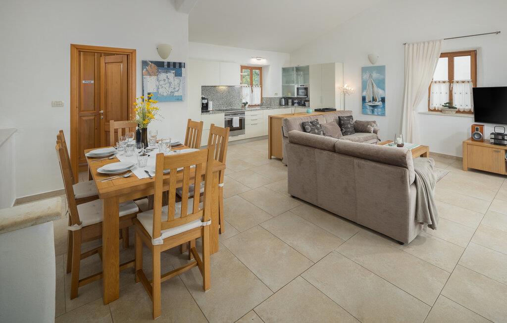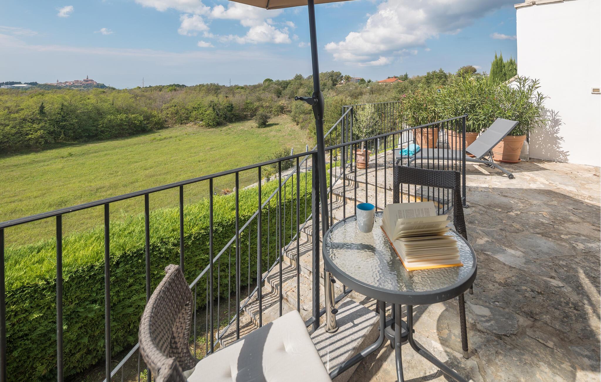 I den lille landsby Bibali, nær byen Buje, ligger denne skønne og moderne ferielejlighed fordelt på to plan. Den er indrettet med bekvemme møbler, en feriedrøm for alle, der vil slappe af i rolige omgivelser, men gerne bo lidt ekstra godt. Lejligheden ligger i en hus, med fire andre ferielejligheder, der også udlejes. Soveværelserne ligger i stueplan, mens køkken, stue og spisestue ligger på første sal. I den fælles have, ligger den fælles udendørs pool, hvor I kan tage en forfriskende svømmetur. Den rige, omliggende natur får jer til at føle, at I bor omgivet af bjerge, men samtidig bor I bare 20 minutter i bil fra Umags skønne strande og Adriaterhavet. Byen Buje ligger i det nordlige Istrien, med ti kilometer ud til kysten. Da huset ligger på en bakke, har I en fantastisk udsigt ud over de omliggende landskaber. Fra terrassen kan I nyde synet af sølvgrønne olivenlunde og vinbjerge med snorlige rækker af planter. Om foråret kan I plukke vilde grønne asparges. Tilføj æg og lav den traditionelle istriske ret Fritaja. I kan også spise på en af de mange besøgs-bondegårde, hvor I kan smage lokale retter, lavet af gårdens egne produkter. For bare få år siden var det kun de færreste der kendte denne del af Kroatien med havets blå bølger og baglandets frodige grønne bakker. Men den charme som det det kroatiske Toscana udstråler tiltrækker nu gæster fra hele verden, der holder af det bakkede landskab, de elegante cypresser og de urgamle bjergbyer med smukke huse af natursten.