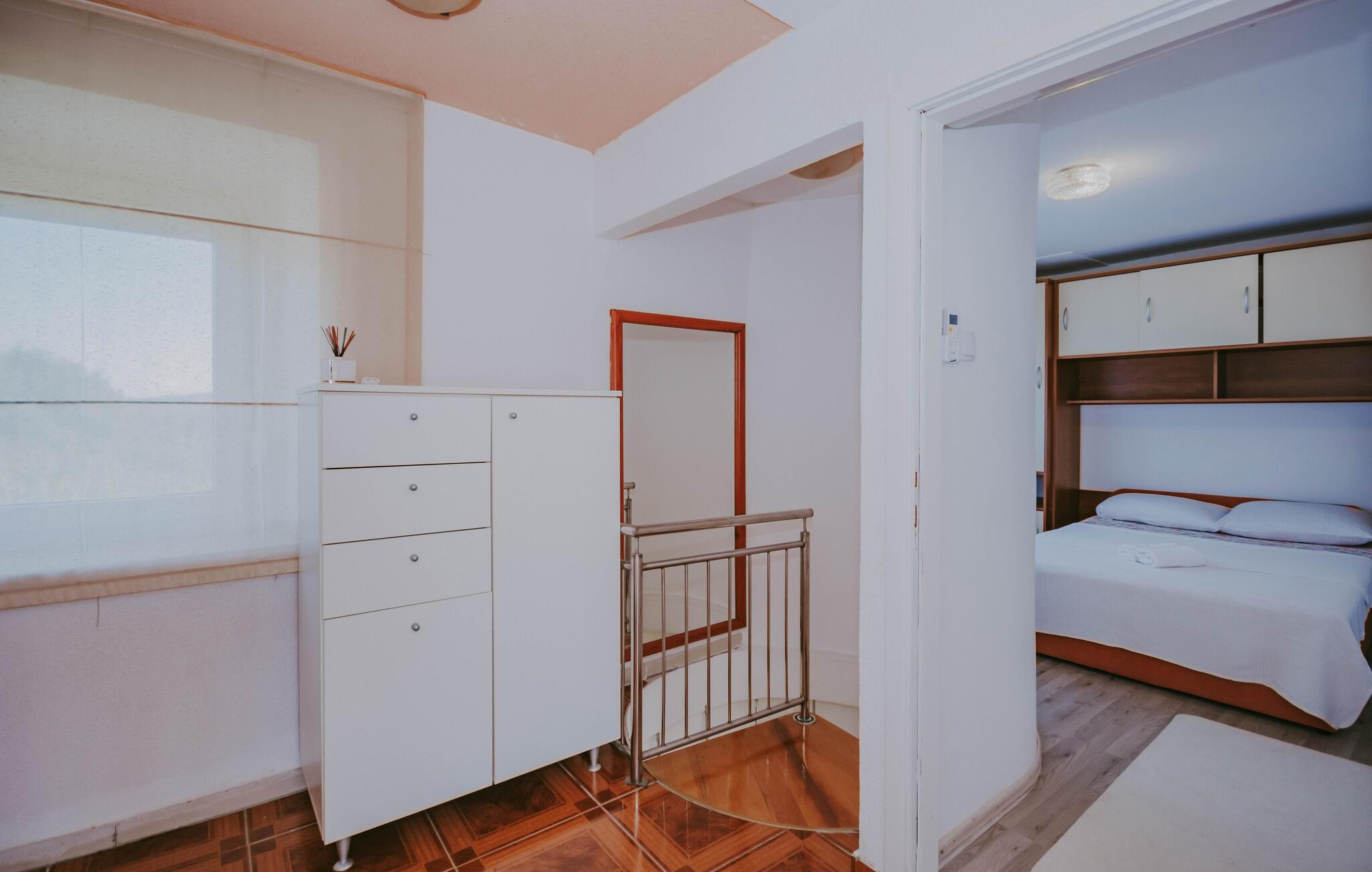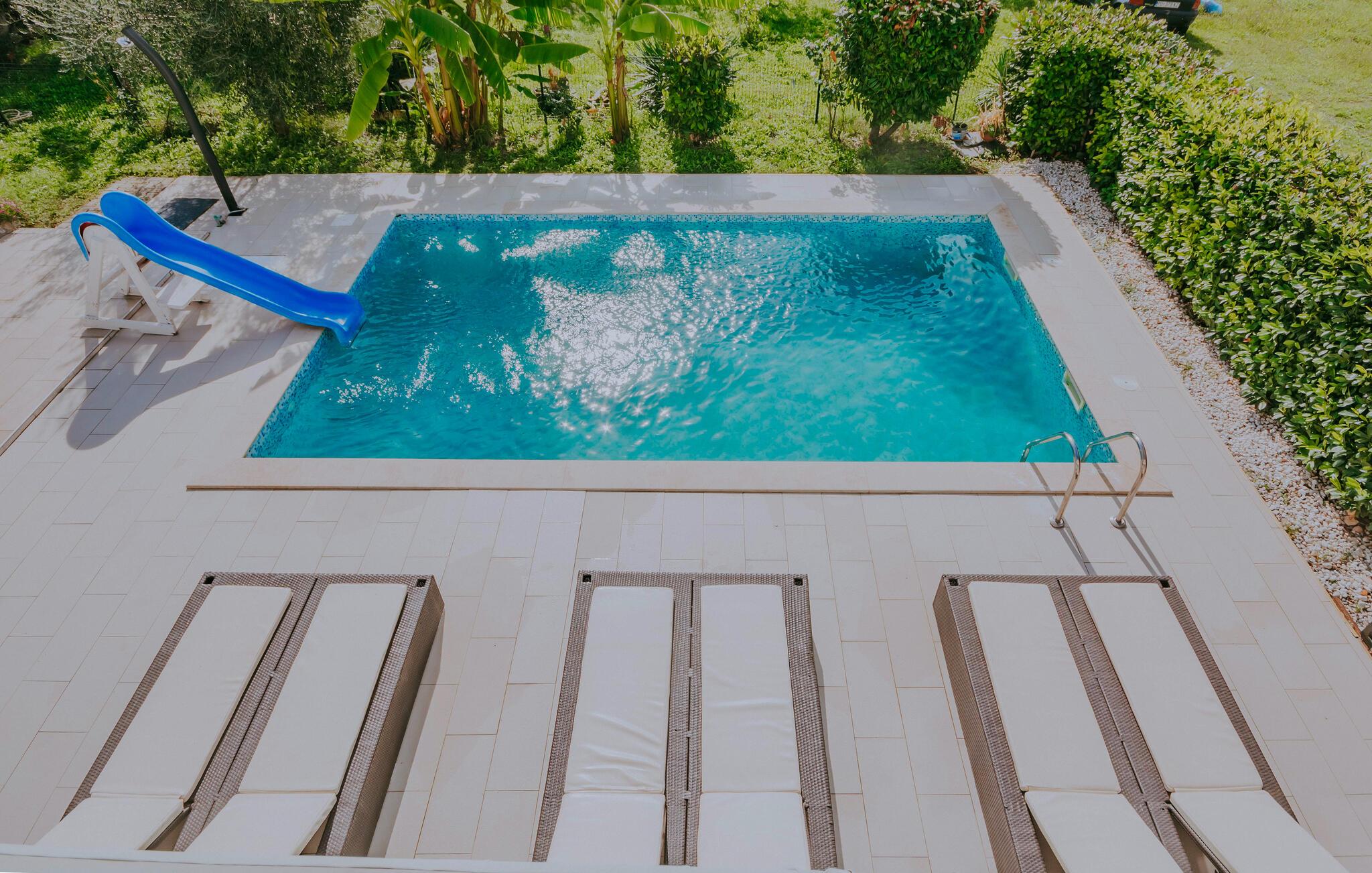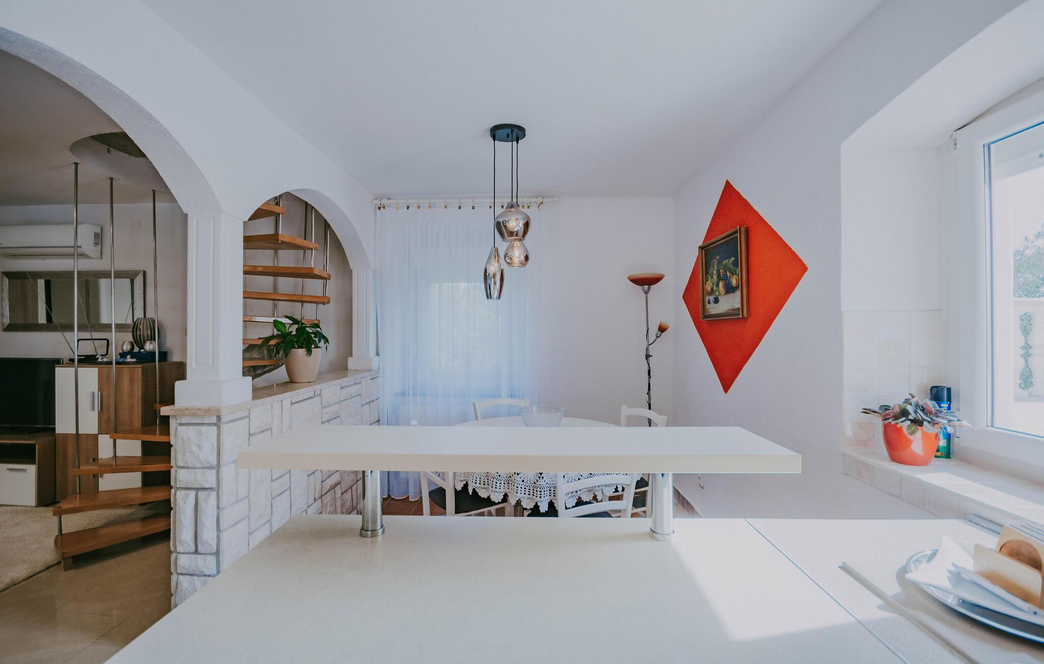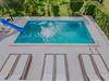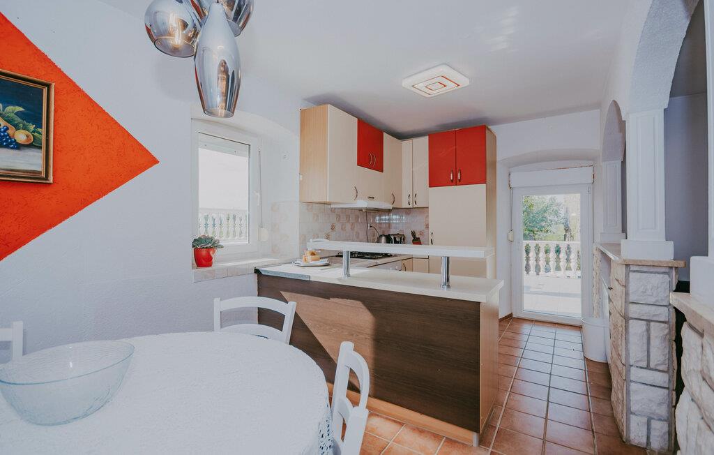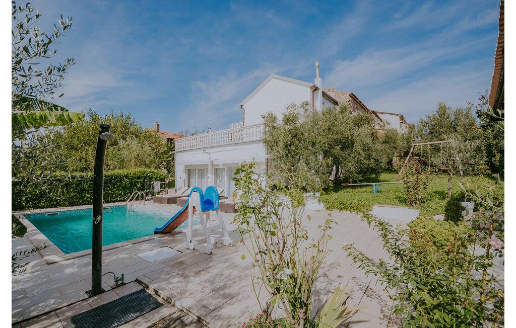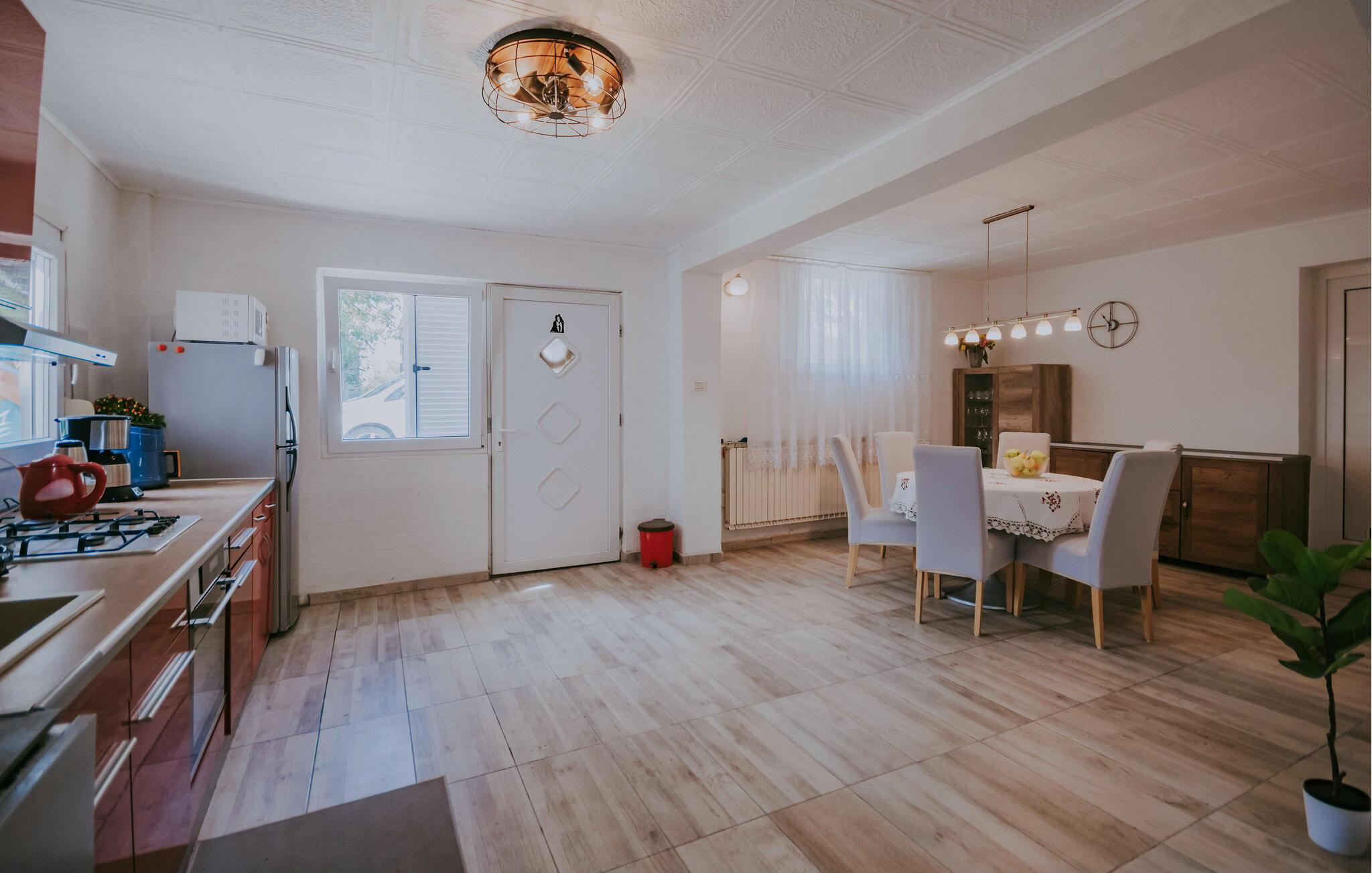 På en bakke højt oppe over den maleriske by Brtonigla, omgivet af vinbjerge og olivenlunde, ligger denne skønne halvdel af et dobbelthus med egen privat pool. Husets to dele har hver sin indgang. Den største del af ejendommen ligger på første og anden sal, der er forbundet med en vindeltrappe. I stueplan er der også et lille køkken med stue, hvorfra der er udgang til haven med poolen. I souterrain er der fritidsrum med dart og billard. Lær det indre Istrien at kende, spis områdets velsmagende gastronomi og drik landets gode vine på en af de mange restauranter eller konobaer, og have en sjov dag blandt andre vandhunde i Aquapark Istralandia.