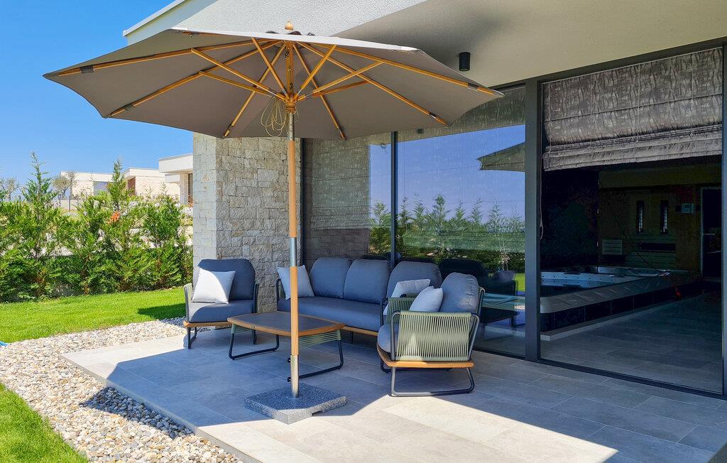 En pragtfuld pool venter jer på den solrige terrasse, hvor stemningsfuld belysning lægger op til uforglemmelige svømmeoplevelser, selv under åben himmel. Genoplad batterierne på liggestolene, mens børnene morer sig ved bordtennisbordet, og se solnedgangen med et glas vin på terrassen.