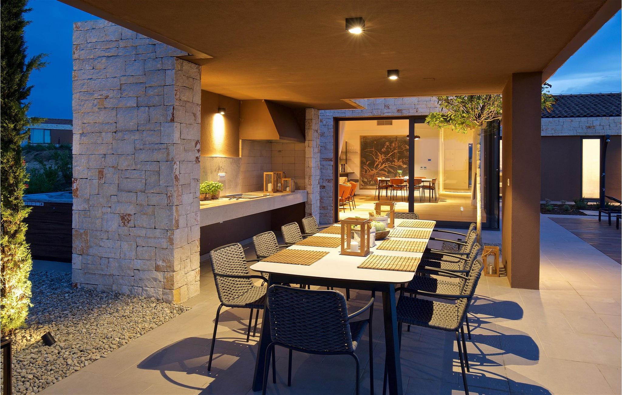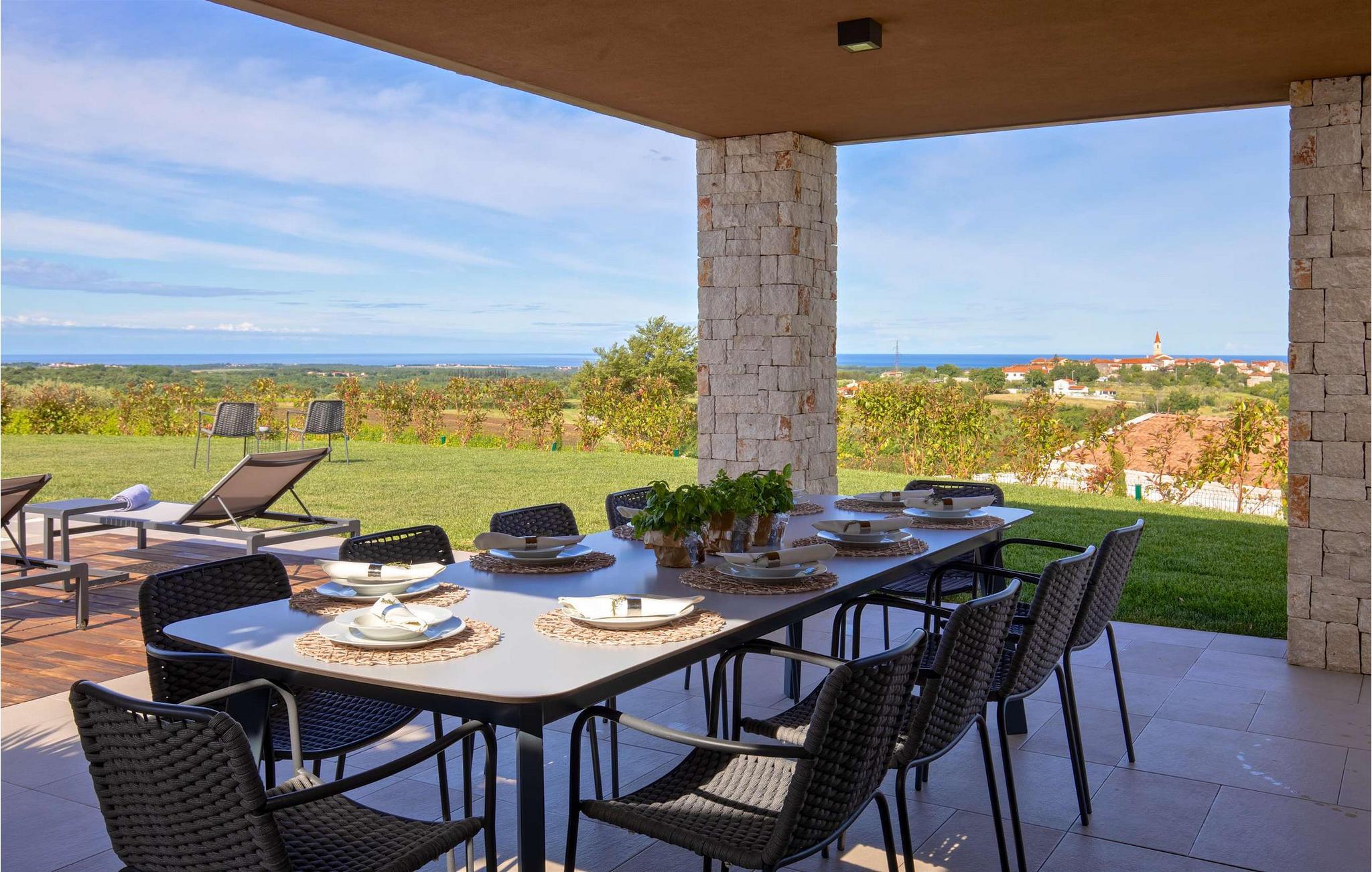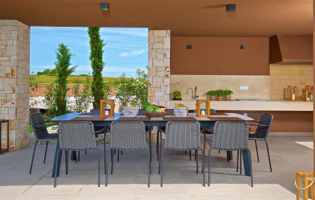 Den moderne villa Terra Bianca ligger i den maleriske landsby Verteneglio i den nordvestlige del af den magisk smukke halvø i Istrien. Her har du mulighed for at nyde skønheden i det landlige Istrien, endeløse olivenlunde og vinmarker, mens nærheden af Novigrad, Rovinj og Porec garanterer en uforglemmelig ferie. Villa Terra Bianca har 4 rummelige soveværelser, to med dobbeltsenge og to med to enkeltsenge, der kan sættes sammen til en dobbeltseng. Hvert soveværelse har aircondition, satellit-tv og eget badeværelse med brusekabine. Det åbne rum-koncept gør villaen yderst behagelig at tilbringe tid med venner og familie. Til din rådighed er et fuldt udstyret køkken med spiseplads og en smuk, luftig stue. Det indre af villaen er fuld af interessante detaljer, der tilføjer den afslappede stemning i hele rummet. Den 2000 m2 store have har en smuk swimmingpool (40 m2), hvor du kan køle af, mens du har 10 komfortable liggestole til din rådighed til solbadning. På varme sommeraftener kan du nyde at lave mad på den udendørs gasgrill eller slappe af i saunaen eller spabadet. Villaens underholdningstilbud omfatter 4 cykler, bordtennisudstyr og en legeplads for de yngste gæster. Der er i alt 5 private parkeringspladser til rådighed. Tilbring din ferie i den fantastiske Villa Terra Bianca og udforsk skønheden i Istrien. Betagende landskaber og monumenter, strande ideelle for familier med børn og et rigt udbud af restauranter og barer venter på at blive udforsket. Mod et ekstra gebyr kan vi tilbyde dig personlig kokkeservice, stuepige, gartner, personlig træner, massør og yogainstruktør, organiseret transport fra og til lufthavnen, bådture og dagsture, dagsture til olivenlunde og vingårde og meget mere Af selvfølgelig trøffeljagt. Poolopvarmning er tilgængelig efter anmodning mod et ekstra gebyr, der skal betales lokalt.