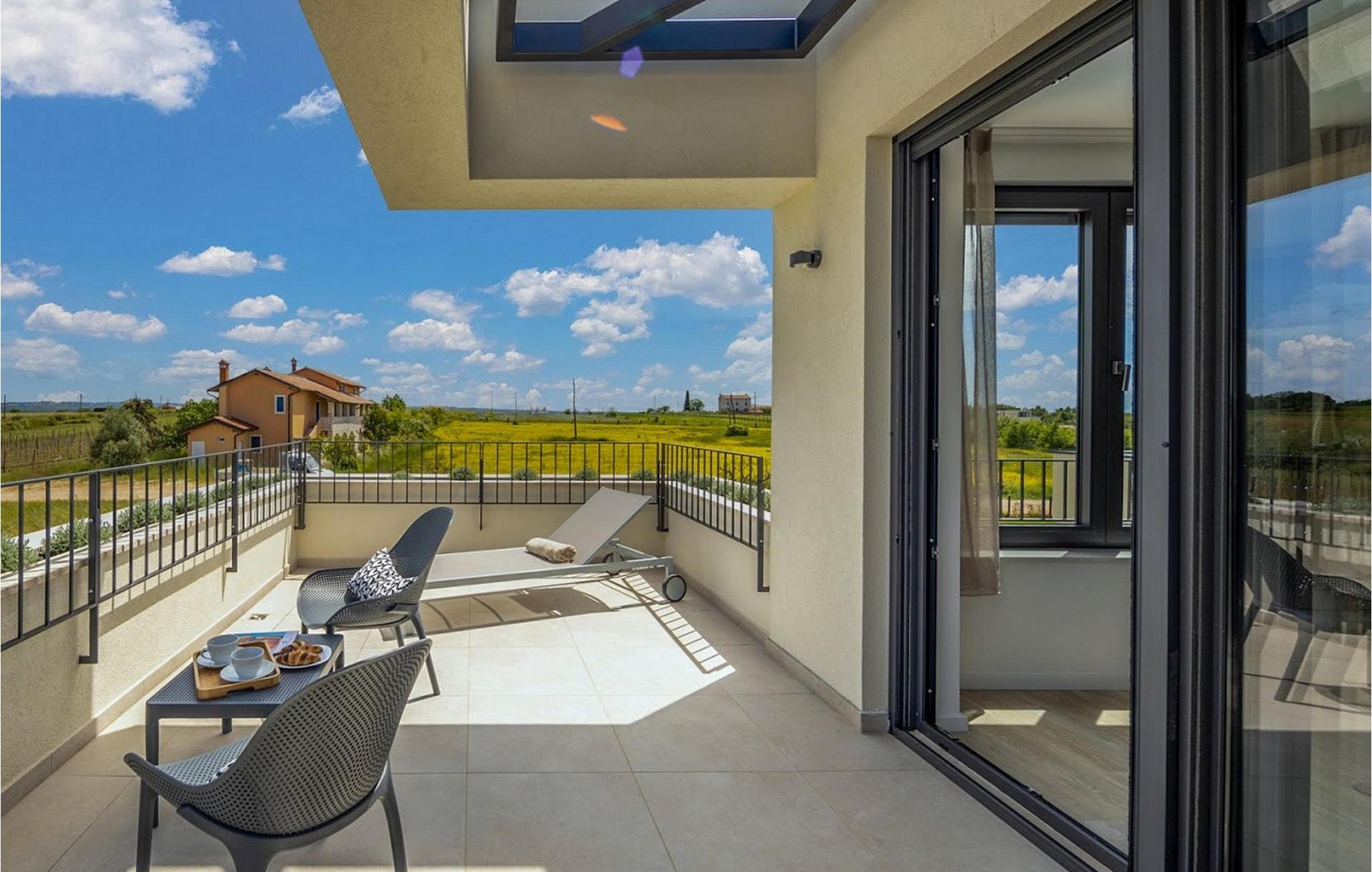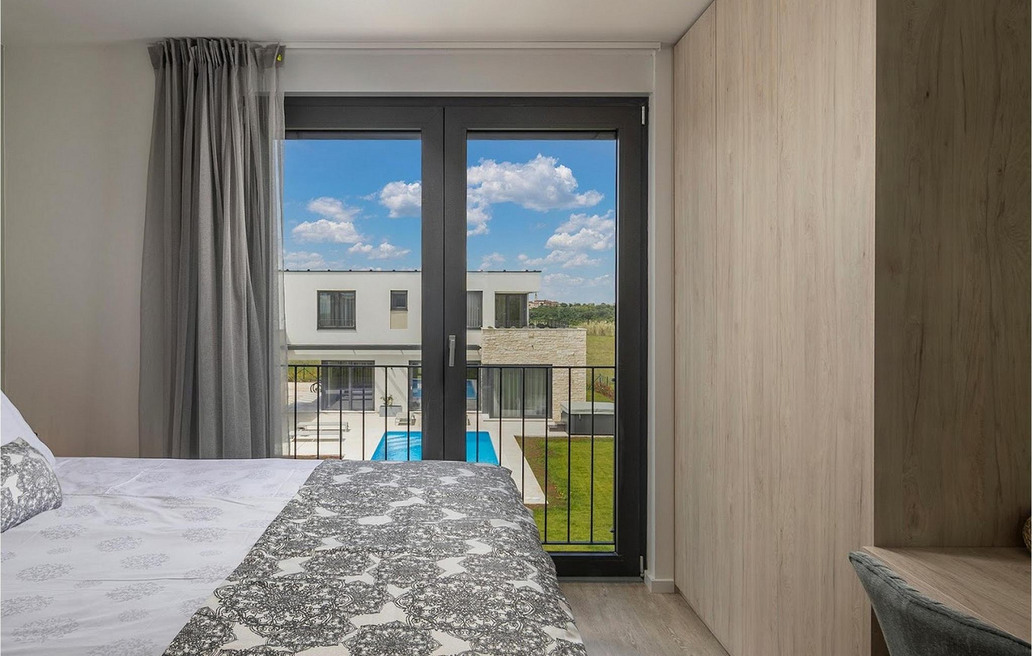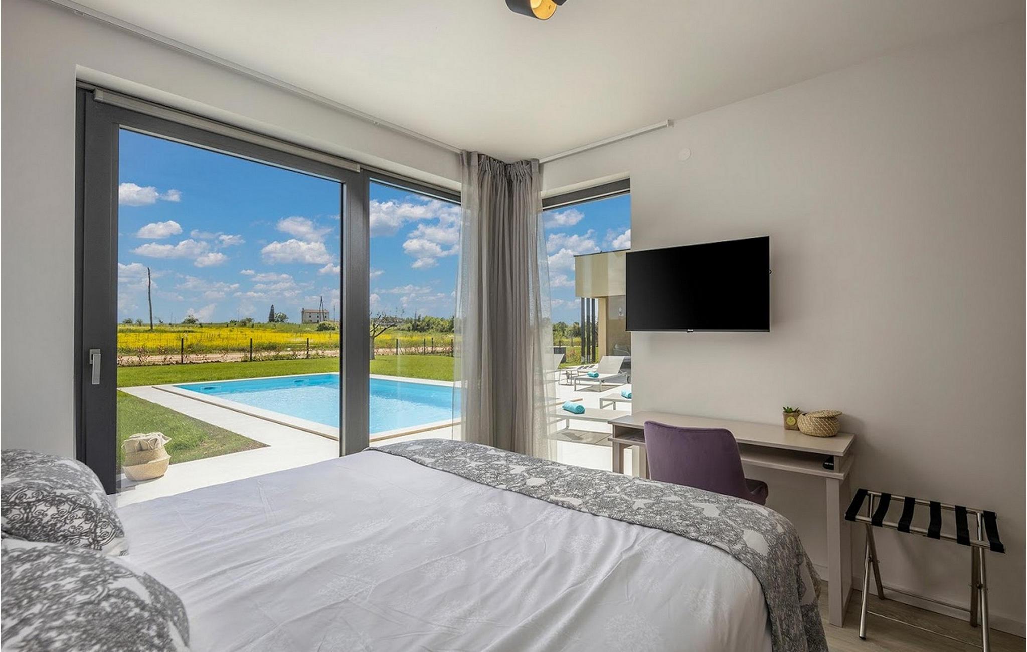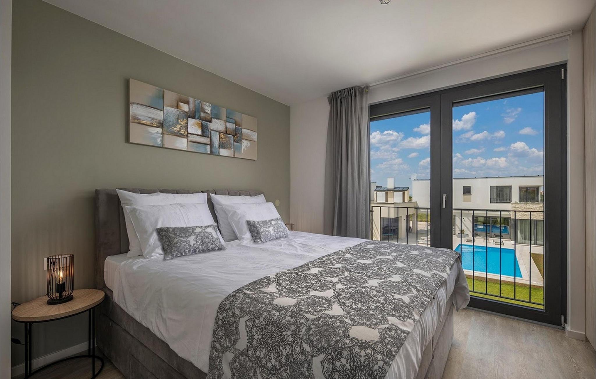 Den smukke, moderne Villa Estate ligger i en lille landsby Brtonigla i den nordvestlige del af Istrien-halvøen. Omgivet af uspoleret natur er denne villa en sand oase af ro, der vil gøre din ferie til en fornøjelse. Villaen har plads til i alt 10 personer og har 4 soveværelser med eget bad. Der er 3 soveværelser på øverste etage af villaen og endnu et soveværelse i stueetagen. Derudover er der på villaens første sal to terrasser, hvor du kan nyde smukke og afslappende stunder. I villaens stueetage er der et moderne køkken, en spisestue og en rummelig stue. På villaens rummelige terrasse er der en skøn opvarmet pool på 40m2 og en dybde på 1,35 m. Omkring poolen er der 6 liggestole, hvor man kan nyde sommersolen. I villaens gårdhave er der desuden sommerkøkken samt udendørs bord og grill. I villaens gårdhave finder du en legeplads med trampolin og cykler, og villaen har også yderligere faciliteter såsom jacuzzi, dart eller badminton. To parkeringspladser er tilgængelige i villaens gårdhave. Villa Estate er en del af et større kompleks af tre villaer. Den udlejes som en separat villa, men sammen med de nærliggende søstervillaer Primavera og La Reina Brtonigla udgør den et moderne kompleks, der tilbyder overnatning til i alt 33 gæster. Villaerne ved siden af hinanden er et ideelt valg for store grupper og familier, der ønsker at nyde den perfekte ferie omgivet af uberørt natur. Alle tre villaer er meget ens i deres layout, udstyret med en smuk terrasse med pool, yderligere faciliteter såsom cykler eller jacuzzier. Villa Estate og Villa Primavera ligger ved siden af hinanden, har hver 4 værelser og er velegnet til maksimalt 10 personer, mens den større og lidt fjernere Villa La Reina Brtonigla har 5 værelser og en maksimal kapacitet på 13 personer. I Brtonigla vil du helt sikkert nyde adskillige aktiviteter i naturen eller interessante kulturelle og gastronomiske tilbud i Istrien. Gå ikke glip af at prøve nogle af Istriens specialiteter, såsom den dyre trøffel, en underjordisk vild svamp, der vokser i Motovun-skoven i det centrale Istrien. Ud over trøfler er Istrien også kendt for sine usædvanligt højkvalitets vin- og olivenolietilbud, hvilket sætter det foran europæiske mestre som Spanien og Frankrig. I Istrien vil du støde på adskillige vinmarker og vinveje, hvis landskab, naturlige skønhed og århundreder gamle vinkultur vil ikke efterlade nogen ligeglade. Forskellige festivaler dedikeret til Istriens rige eno-gastronomiske tilbud finder sted i Brtonigla i sommermånederne. Gå ikke glip af at besøge festivalen for chokolade og vin, som vil fremkalde alle gourmetnydelser, eller festivalen i Istrien Malvasia, en indfødt sort af istrisk vin. Ikke langt fra Brtonigla ligger Aquapark Istralandia, hvis vandeventyr helt sikkert vil blive nydt af de små. Lidt fjernere strande kan findes i centrum af Umag, såsom den stenede Karigador-strand eller Kanova-stranden. Forkæl dig selv med alt det magiske Istriens charme og forkæl dig selv med afslappende øjeblikke i luksusen ved Villa Estate! Poolopvarmning er tilgængelig mod et ekstra gebyr, der skal betales lokalt. Kæledyr er tilladt på denne ejendom efter ejerens skøn og mod et gebyr. Bemærk venligst, at denne ejendom kun accepterer ungdomsgrupper eller polterabender mod betaling af et refunderbart depositum. En ungdomsgruppe i denne ejendom består af personer under 30 år. Er I en ungdomsgruppe eller polterabend, vil I blive bedt om at betale depositum ved ankomst. Ethvert beløb, der kræves for at reparere eventuelle skader på boligen forårsaget af dig under dit ophold, vil blive trukket fra depositumet og derefter returneret til dig.