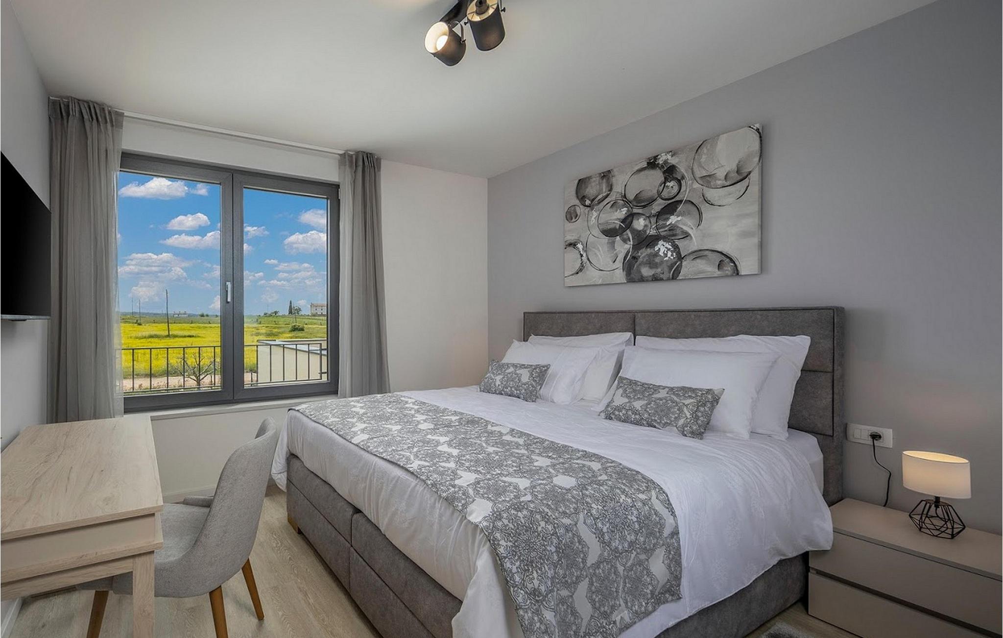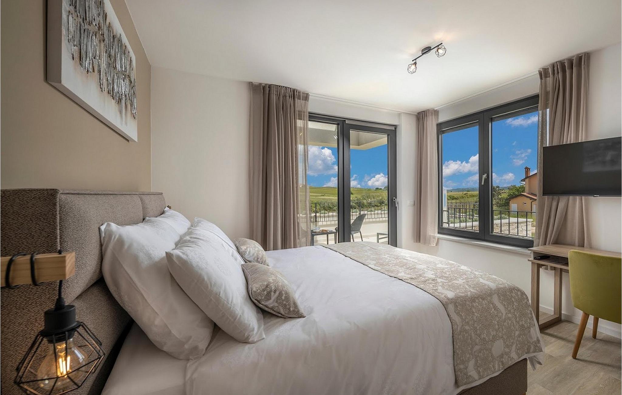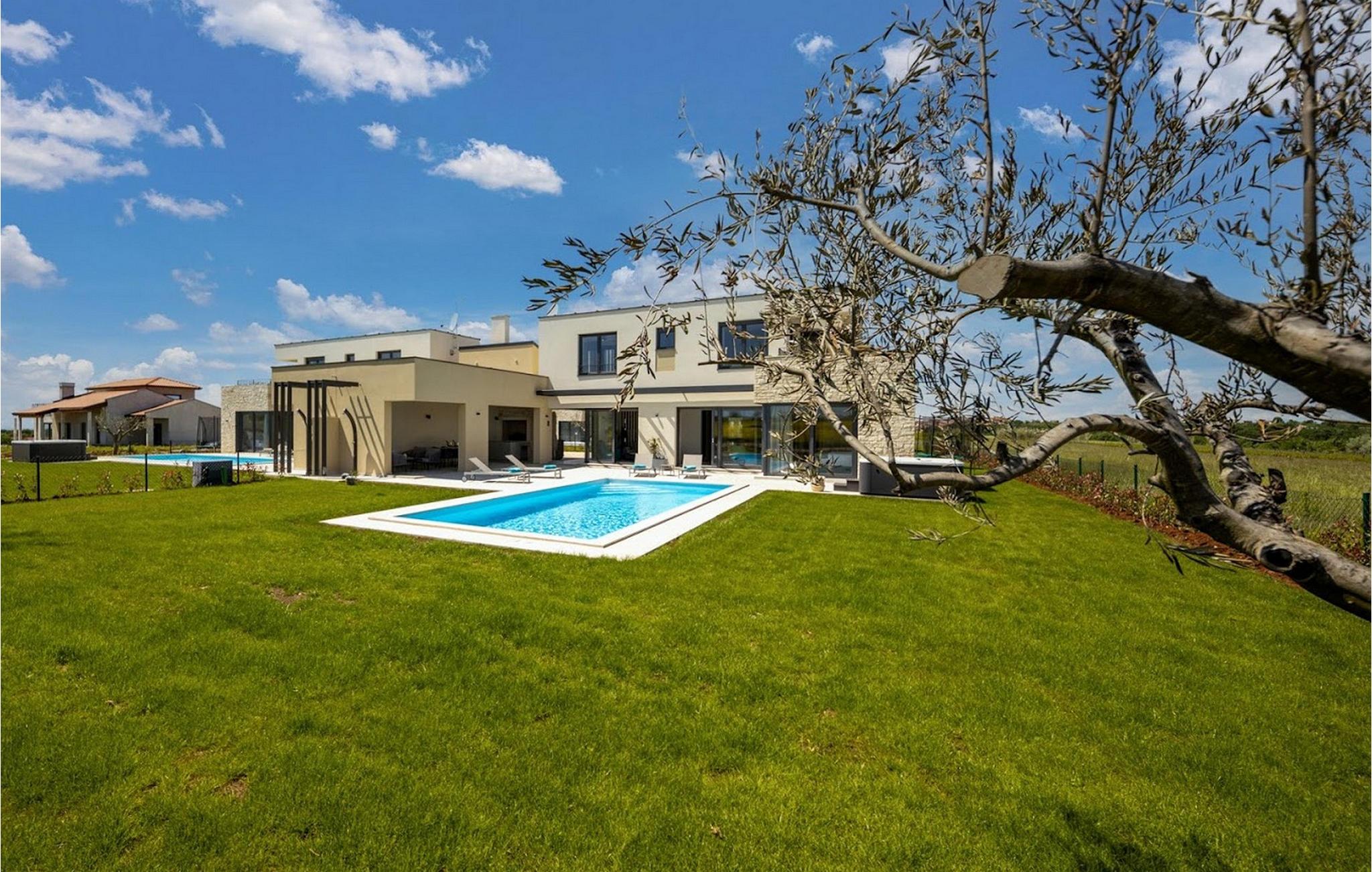 Den smukke, moderne Villa Estate ligger i en lille landsby Brtonigla i den nordvestlige del af Istrien-halvøen. Omgivet af uspoleret natur er denne villa en sand oase af ro, der vil gøre din ferie til en fornøjelse. Villaen har plads til i alt 10 personer og har 4 soveværelser med eget bad. Der er 3 soveværelser på øverste etage af villaen og endnu et soveværelse i stueetagen. Derudover er der på villaens første sal to terrasser, hvor du kan nyde smukke og afslappende stunder. I villaens stueetage er der et moderne køkken, en spisestue og en rummelig stue. På villaens rummelige terrasse er der en skøn opvarmet pool på 40m2 og en dybde på 1,35 m. Omkring poolen er der 6 liggestole, hvor man kan nyde sommersolen. I villaens gårdhave er der desuden sommerkøkken samt udendørs bord og grill. I villaens gårdhave finder du en legeplads med trampolin og cykler, og villaen har også yderligere faciliteter såsom jacuzzi, dart eller badminton. To parkeringspladser er tilgængelige i villaens gårdhave. Villa Estate er en del af et større kompleks af tre villaer. Den udlejes som en separat villa, men sammen med de nærliggende søstervillaer Primavera og La Reina Brtonigla udgør den et moderne kompleks, der tilbyder overnatning til i alt 33 gæster. Villaerne ved siden af hinanden er et ideelt valg for store grupper og familier, der ønsker at nyde den perfekte ferie omgivet af uberørt natur. Alle tre villaer er meget ens i deres layout, udstyret med en smuk terrasse med pool, yderligere faciliteter såsom cykler eller jacuzzier. Villa Estate og Villa Primavera ligger ved siden af hinanden, har hver 4 værelser og er velegnet til maksimalt 10 personer, mens den større og lidt fjernere Villa La Reina Brtonigla har 5 værelser og en maksimal kapacitet på 13 personer. I Brtonigla vil du helt sikkert nyde adskillige aktiviteter i naturen eller interessante kulturelle og gastronomiske tilbud i Istrien. Gå ikke glip af at prøve nogle af Istriens specialiteter, såsom den dyre trøffel, en underjordisk vild svamp, der vokser i Motovun-skoven i det centrale Istrien. Ud over trøfler er Istrien også kendt for sine usædvanligt højkvalitets vin- og olivenolietilbud, hvilket sætter det foran europæiske mestre som Spanien og Frankrig. I Istrien vil du støde på adskillige vinmarker og vinveje, hvis landskab, naturlige skønhed og århundreder gamle vinkultur vil ikke efterlade nogen ligeglade. Forskellige festivaler dedikeret til Istriens rige eno-gastronomiske tilbud finder sted i Brtonigla i sommermånederne. Gå ikke glip af at besøge festivalen for chokolade og vin, som vil fremkalde alle gourmetnydelser, eller festivalen i Istrien Malvasia, en indfødt sort af istrisk vin. Ikke langt fra Brtonigla ligger Aquapark Istralandia, hvis vandeventyr helt sikkert vil blive nydt af de små. Lidt fjernere strande kan findes i centrum af Umag, såsom den stenede Karigador-strand eller Kanova-stranden. Forkæl dig selv med alt det magiske Istriens charme og forkæl dig selv med afslappende øjeblikke i luksusen ved Villa Estate! Poolopvarmning er tilgængelig mod et ekstra gebyr, der skal betales lokalt. Kæledyr er tilladt på denne ejendom efter ejerens skøn og mod et gebyr. Bemærk venligst, at denne ejendom kun accepterer ungdomsgrupper eller polterabender mod betaling af et refunderbart depositum. En ungdomsgruppe i denne ejendom består af personer under 30 år. Er I en ungdomsgruppe eller polterabend, vil I blive bedt om at betale depositum ved ankomst. Ethvert beløb, der kræves for at reparere eventuelle skader på boligen forårsaget af dig under dit ophold, vil blive trukket fra depositumet og derefter returneret til dig.