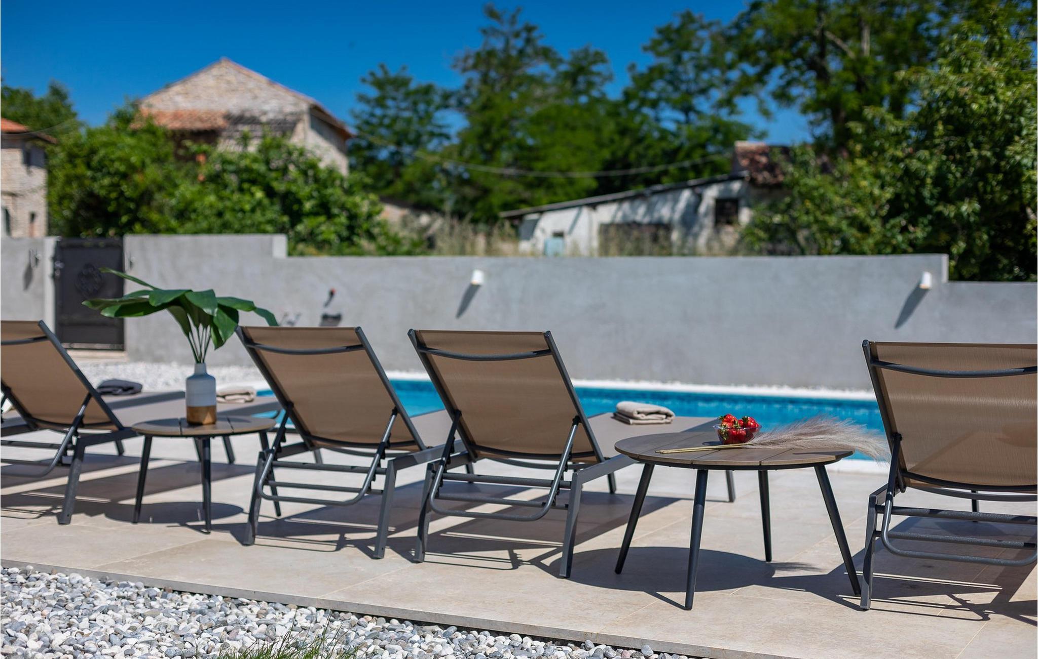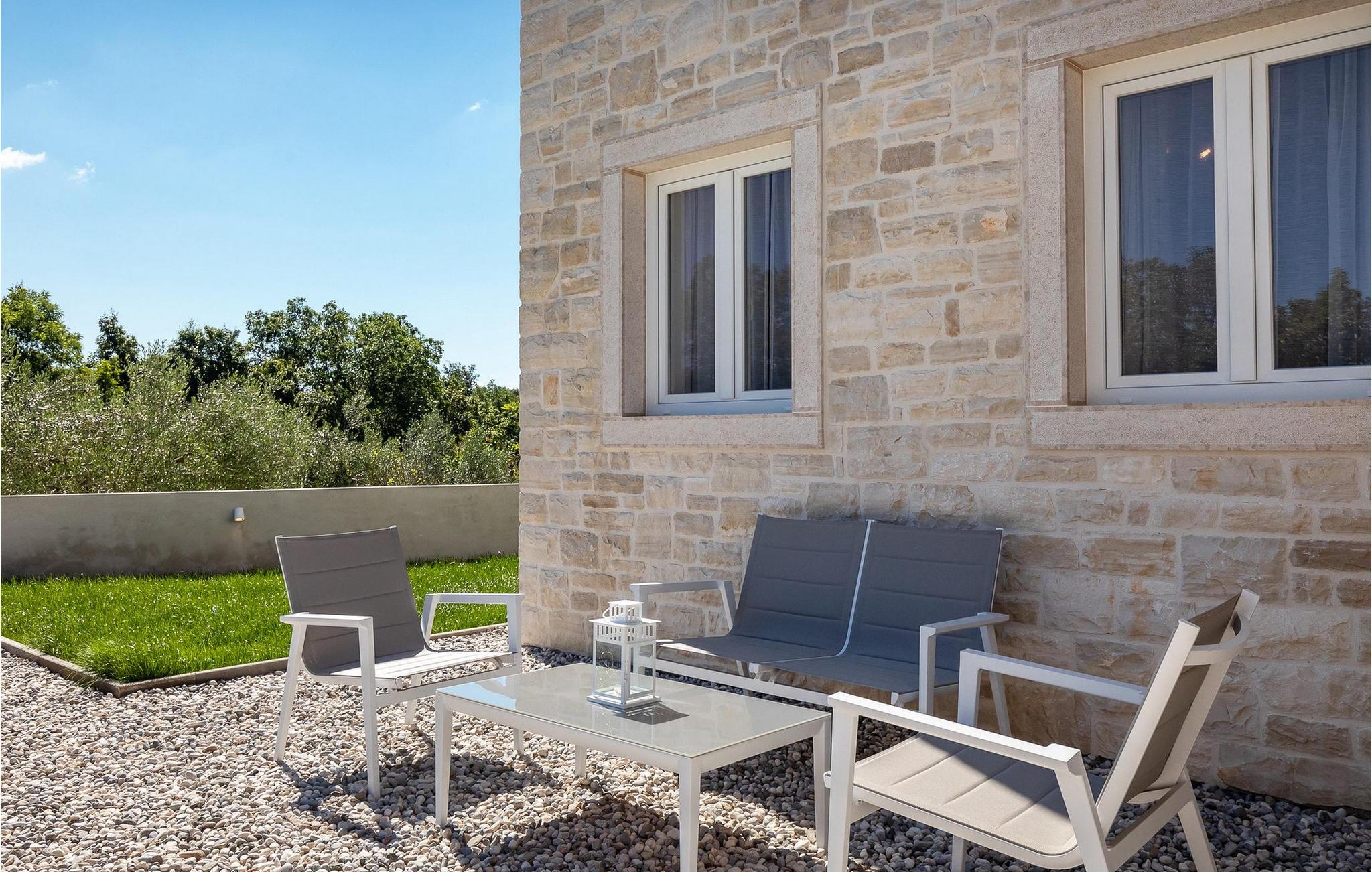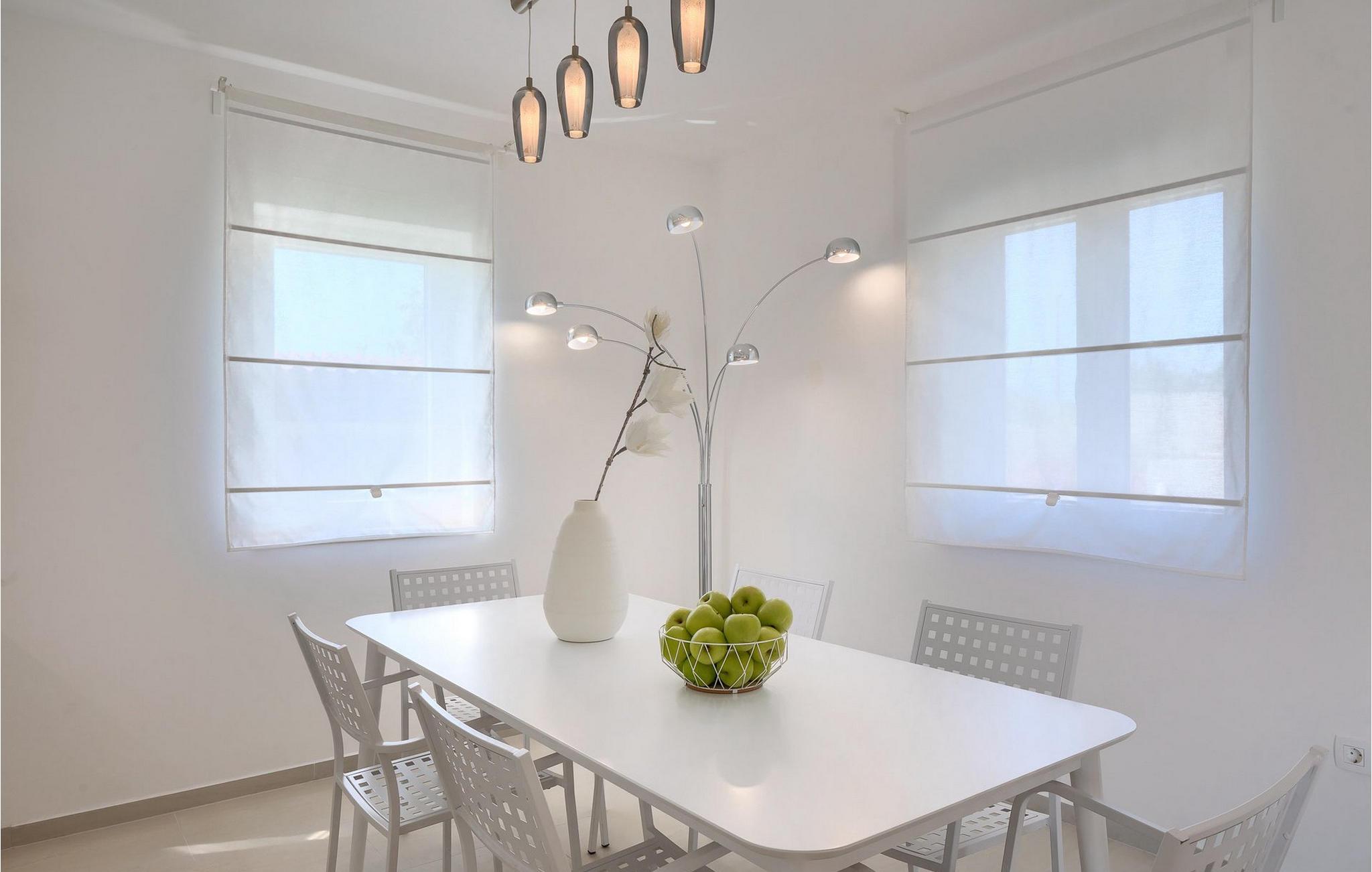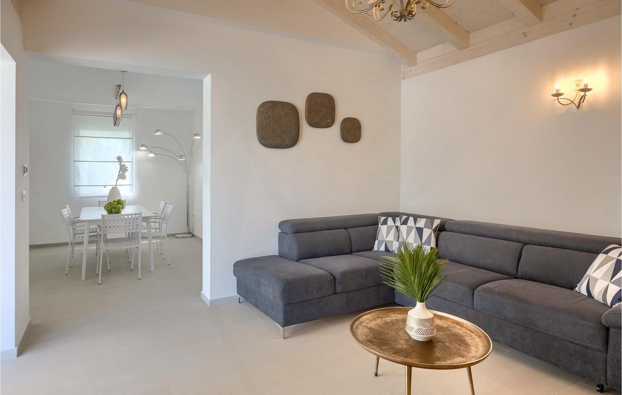 Ved siden af poolen på terrassen er der et stort spisebord og en kulgrill til din rådighed, hvor du kan forberede dine yndlingsretter, mens du nyder sommerstemningen med familie og venner. Villaens interiør er elegant og meget hyggeligt.