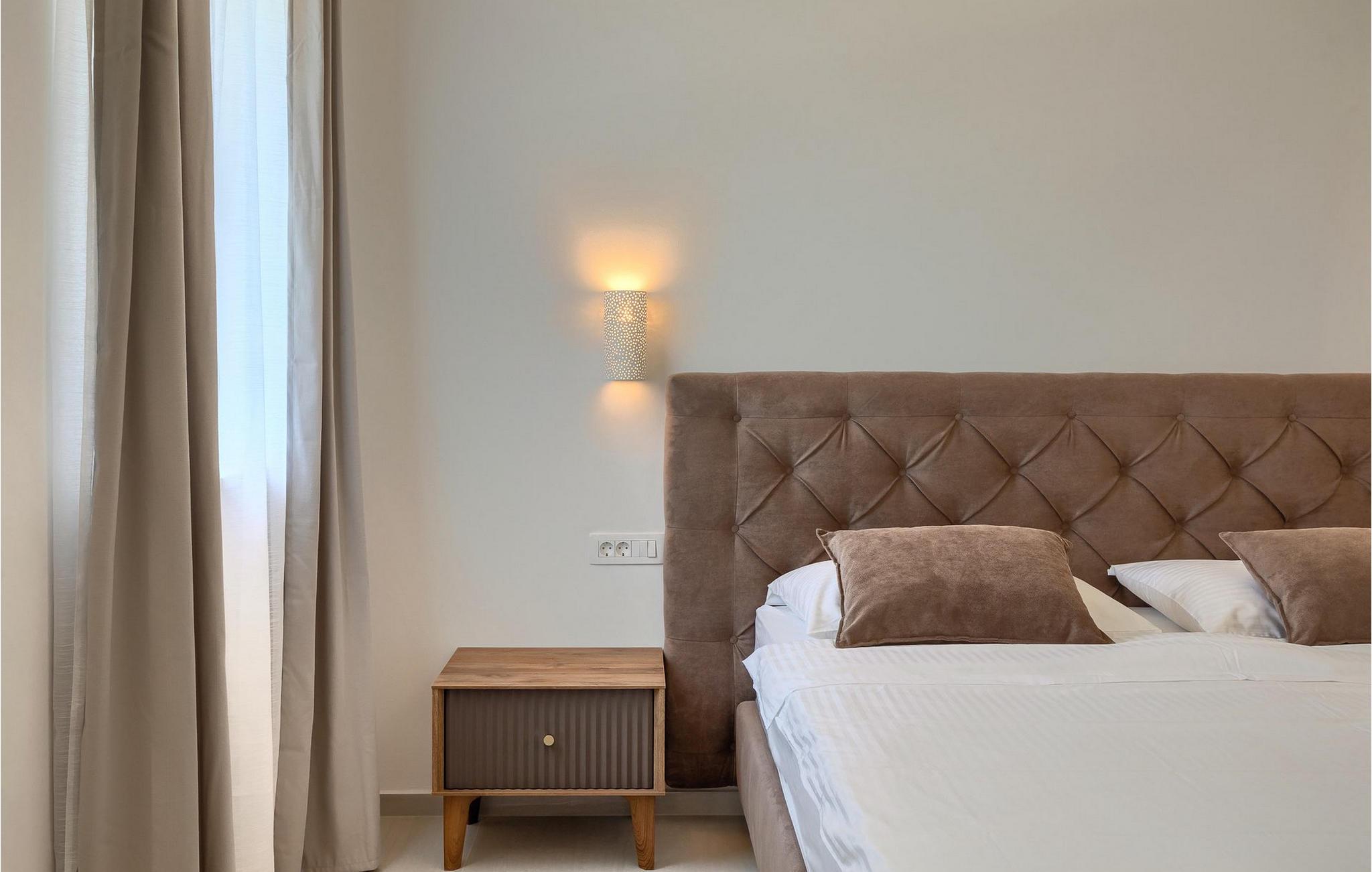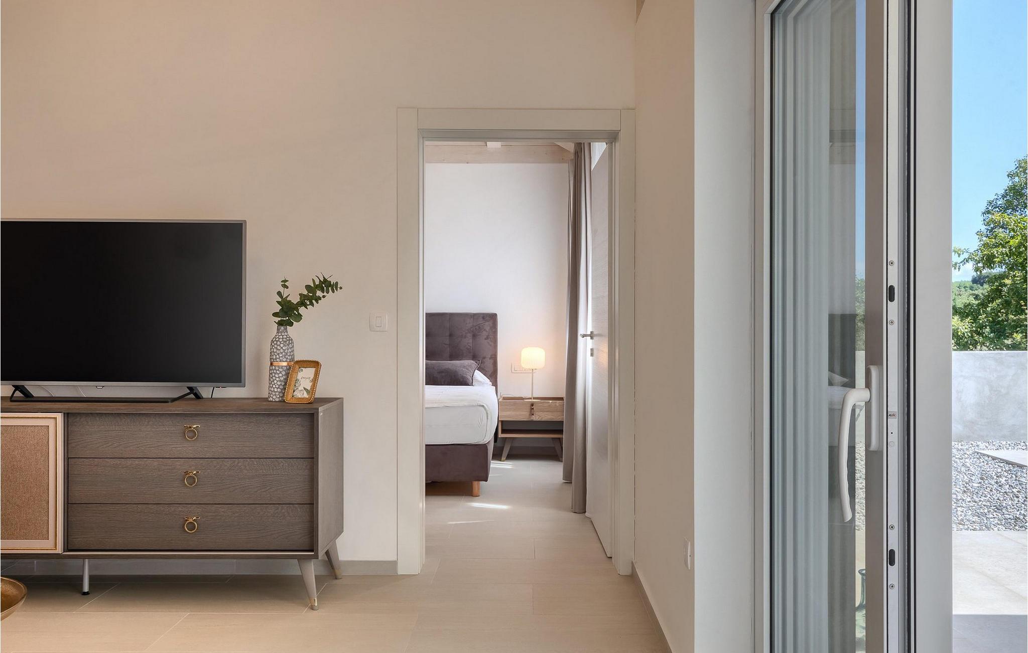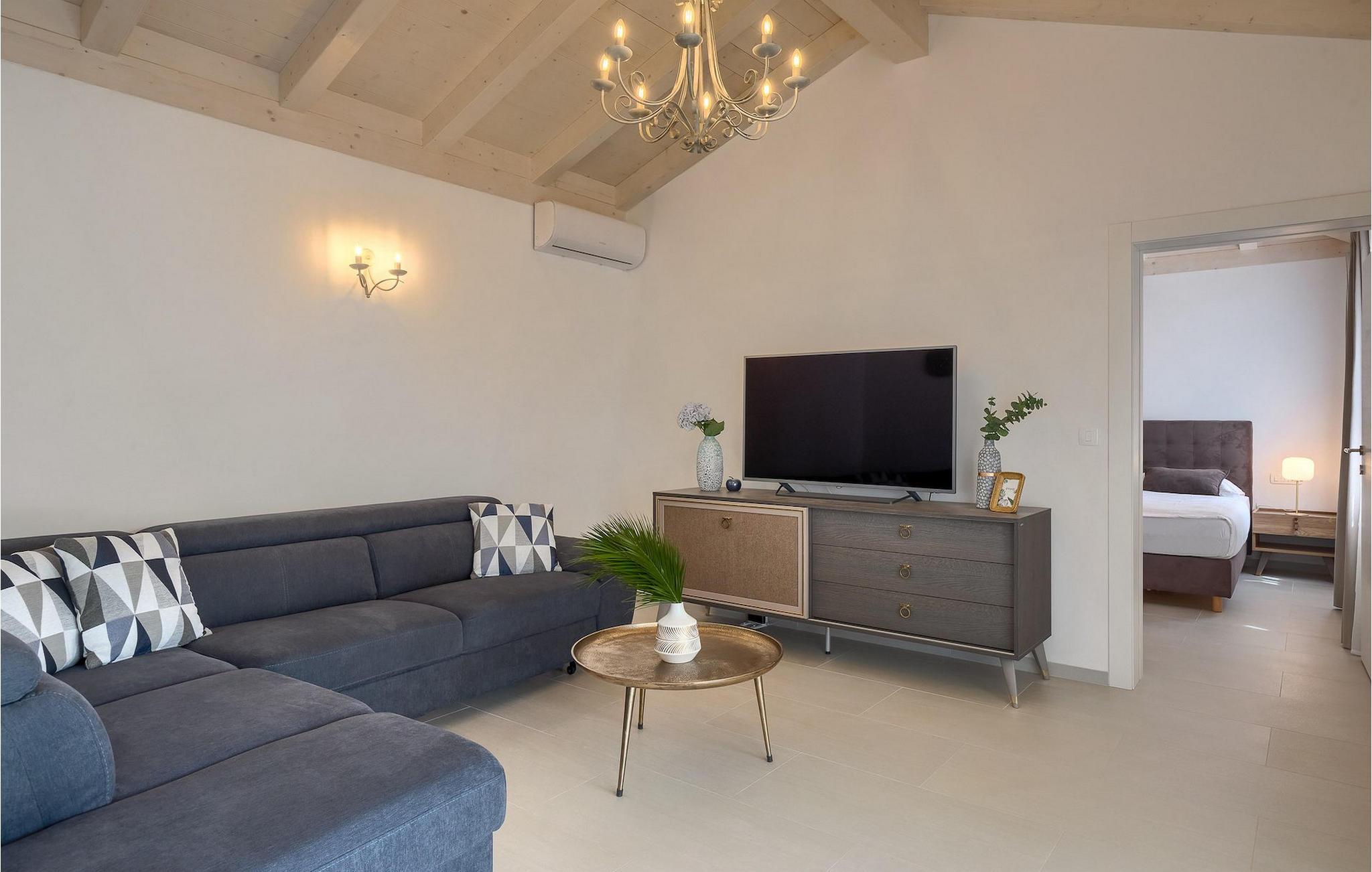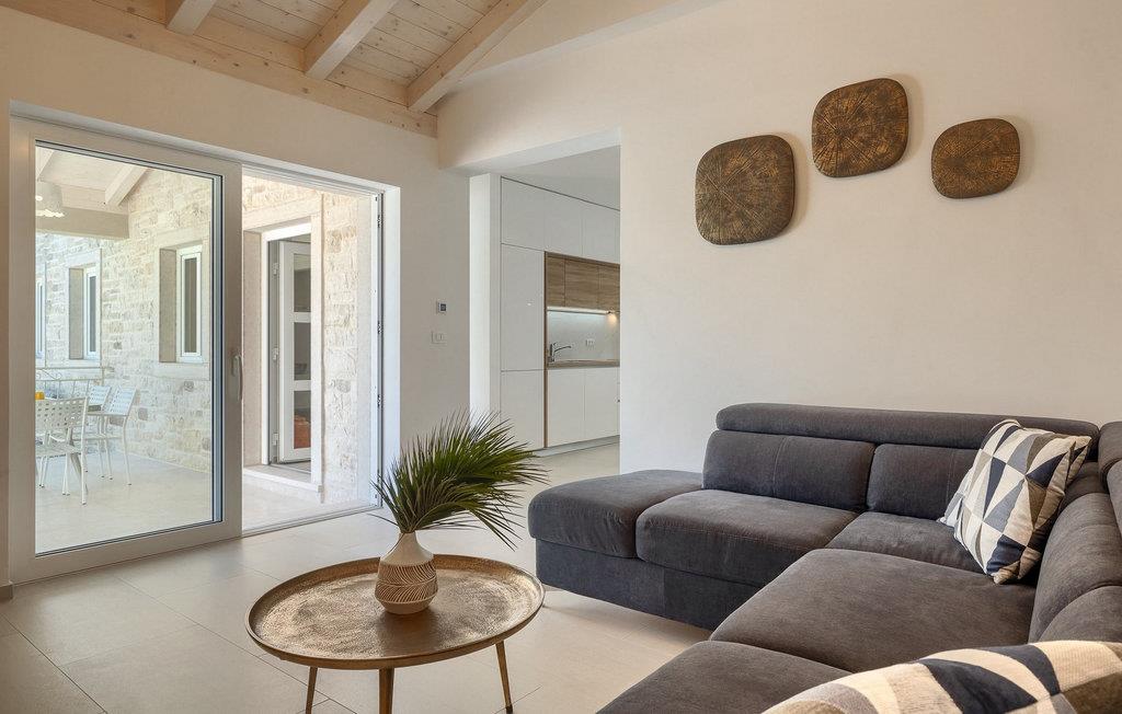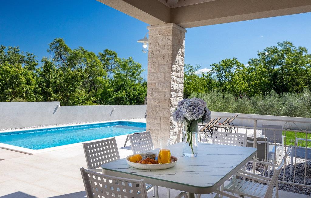Ved siden af poolen på terrassen er der et stort spisebord og en kulgrill til din rådighed, hvor du kan forberede dine yndlingsretter, mens du nyder sommerstemningen med familie og venner. Villaens interiør er elegant og meget hyggeligt.