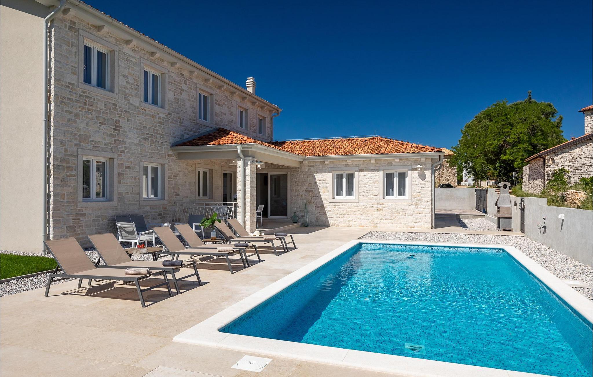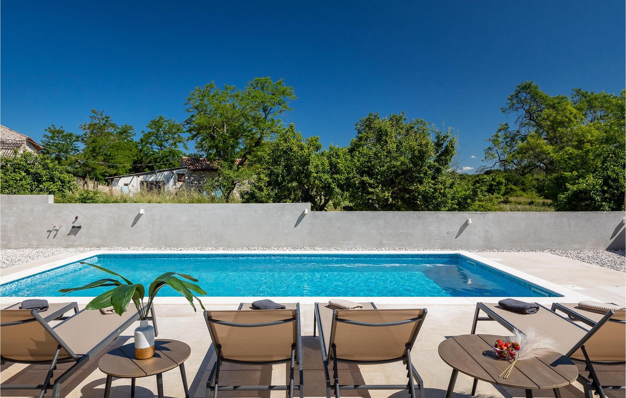 Smukke Villa Leon beliggende i den lille istriske landsby Brtonigla er det perfekte valg til en rolig familieferie, hvis du vil undslippe hverdagens stress. Foran villaen er der en rummelig privat pool, hvor du kan nyde en eventyrlig udsigt over det fortryllende istriske landskab.