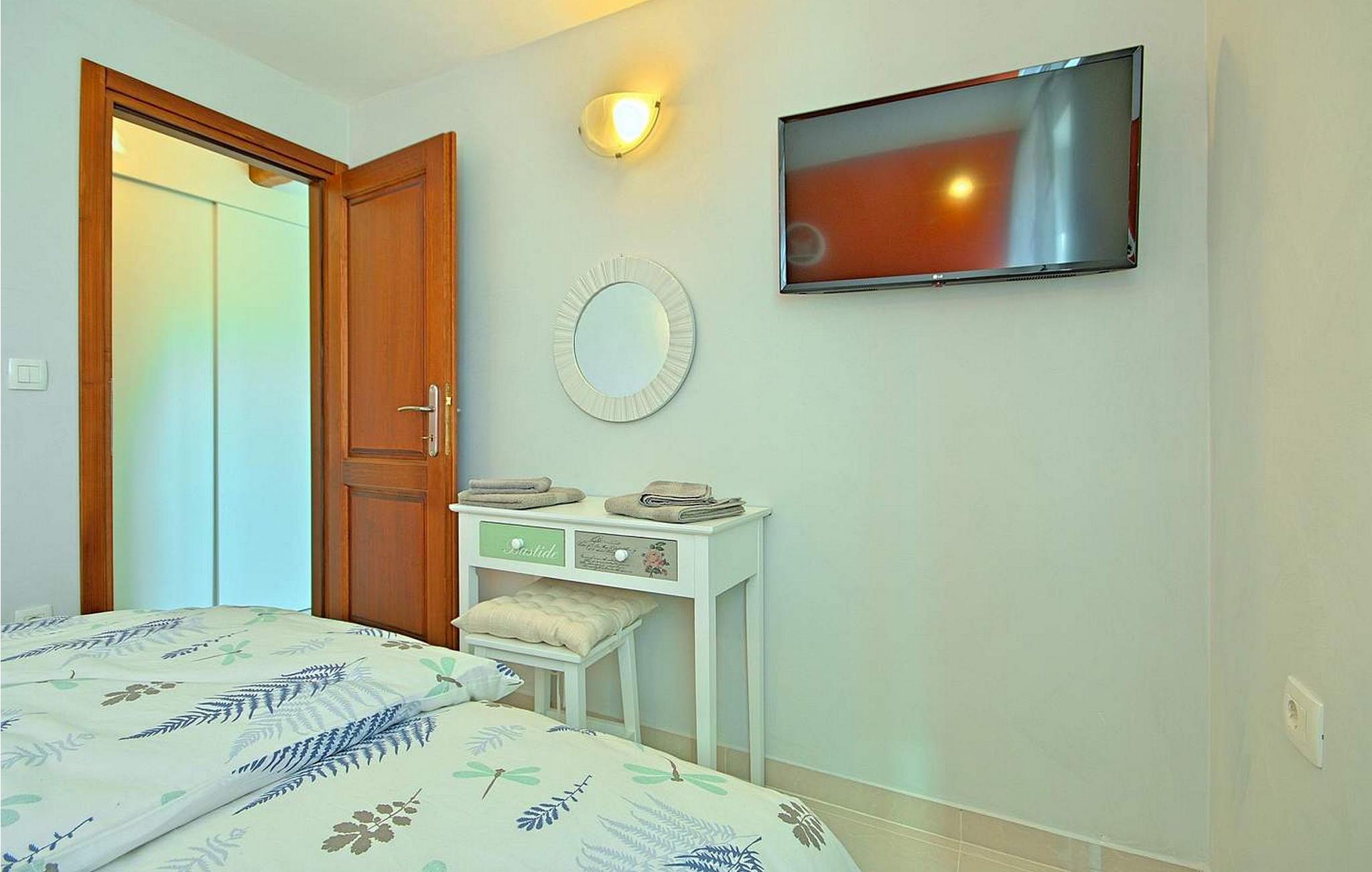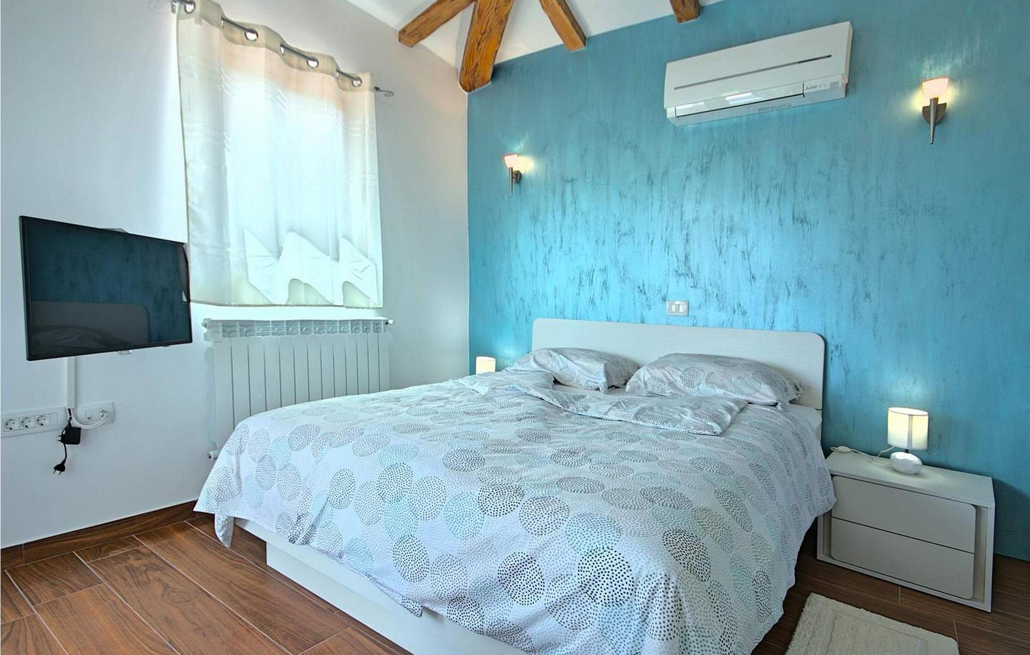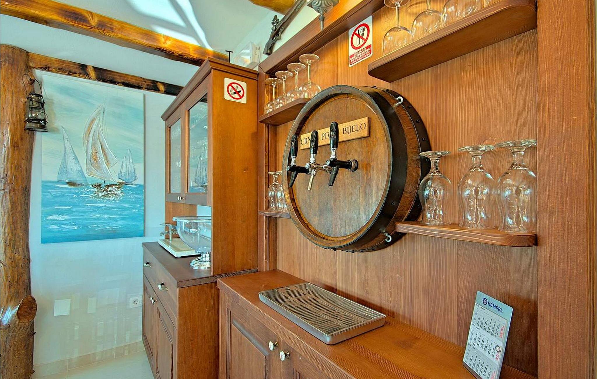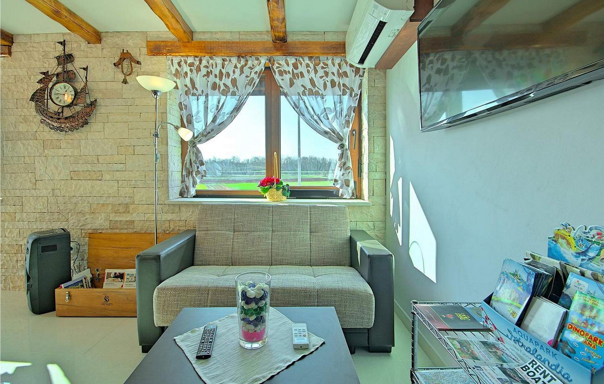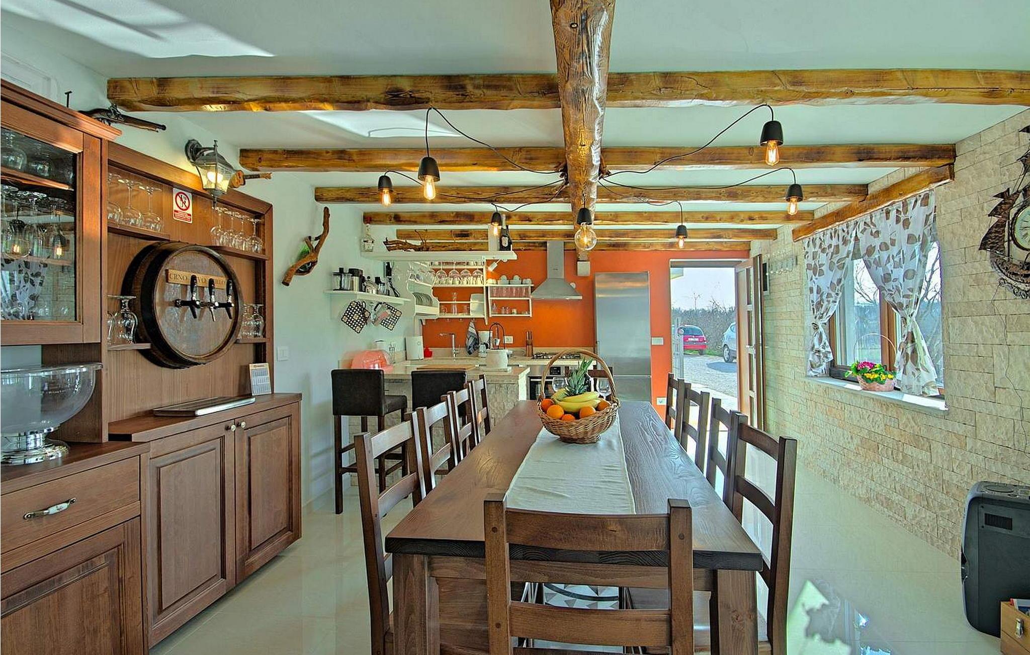 Villa Gloria Vita er et smukt, moderne feriehus i de rolige landlige omgivelser i Nova Vas, kun 8 km fra Novigrad og den nærmeste strand. Dette fredelige oase tilbyder nem adgang til lokale taverner, vinkældre og det nærliggende vandland Istralandia. Villaen er beliggende på indhegnet grund med en indbydende udendørs pool, et sommerkøkken med gasgrill og en udendørs bar. De overdækkede terrasser er perfekte til at nyde udendørs spisning, mens der inde i villaen er et spabad til ultimativ afslapning. Stueetagen af villaen er fordelt på tre niveauer og indeholder en hyggelig stue med et fuldt udstyret køkken, en spiseplads og en sovesofa, samt to komfortable soveværelser, begge med private badeværelser. Første sal rummer et privat soveværelse med balkon og eget badeværelse, hvilket giver et fredeligt tilflugtssted. Under soldækket byder kælderen på en airconditioneret opholdsstue med et stort spisebord, et køkken med vin- og ølhaner, en sofa, et fjernsyn og et ekstra soveværelse med bad/toilet. Bemærk venligst, at denne ejendom ikke accepterer ungdomsgrupper eller polterabender. En ungdomsgruppe på denne ejendom består af personer på 26 år eller derunder.