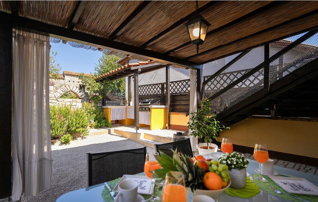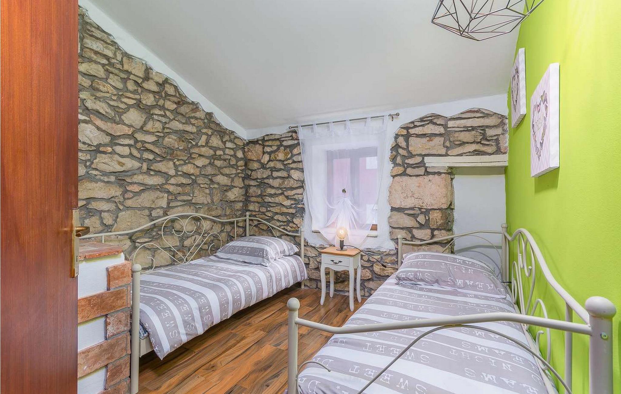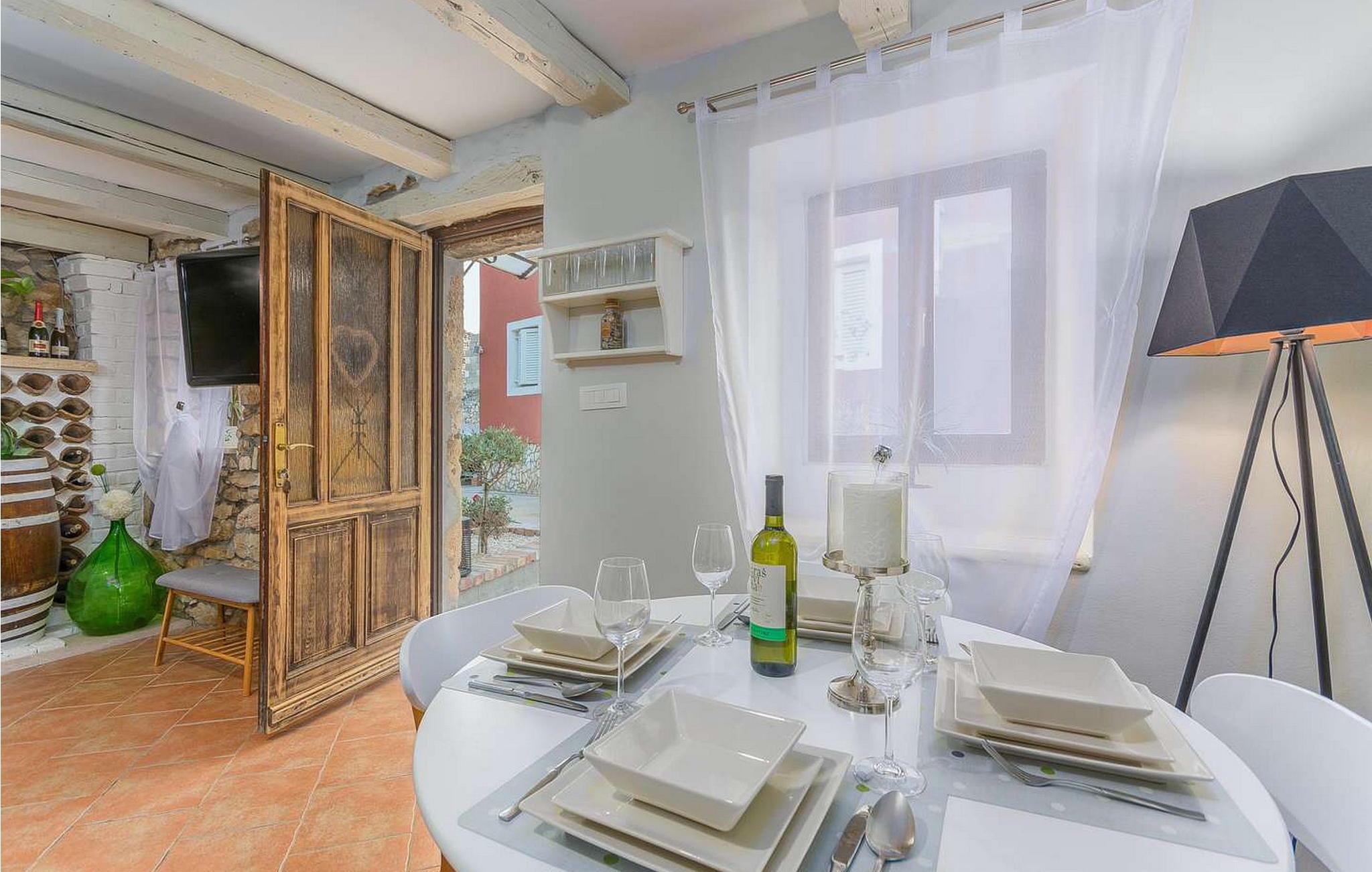 Casa Dvi Mendule er et dejligt lille rustikt feriehus beliggende i Nova Vas, en landsby tæt på Novigrad i et område med fremragende vinproducenter, restauranter og typiske taverner. Vandlandet Istralandia ligger kun 2 minutters kørsel fra huset. I selve landsbyen er der en restaurant og en butik inden for 200 meter fra huset. En cykelrute går også gennem Nova Vas. Casa Dvi Mendule tilbyder sine gæster følgende udendørs faciliteter: præfabrikeret swimmingpool på 10 kvm, overdækket terrasse med spisebord, grill, terrasse med liggestole og en parkeringsplads. Sommerhus i to etager med en samlet overflade på 100 kvm. I stueplan er der opholdsstue med spisestue, udstyret køkken og bad/toilet. På første sal er der to soveværelser, det ene med dobbeltseng og det andet med to enkeltsenge. En air-condition er i hallen på denne etage, der køler begge soveværelser. Bemærk venligst, at denne ejendom ikke accepterer ungdomsgrupper eller polterabends. En ungdomsgruppe på denne ejendom er en gruppe bestående af personer på 26 år eller derunder. Book ikke denne ejendom, hvis du er en ungdomsgruppe eller et polterabend, da din reservation vil blive afvist efter booking, hvilket kan omfatte ved ankomst til ejendommen eller under dit ophold, og du vil ikke blive refunderet.