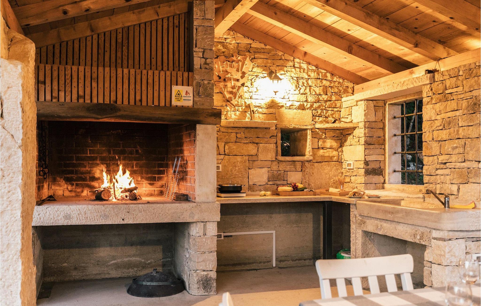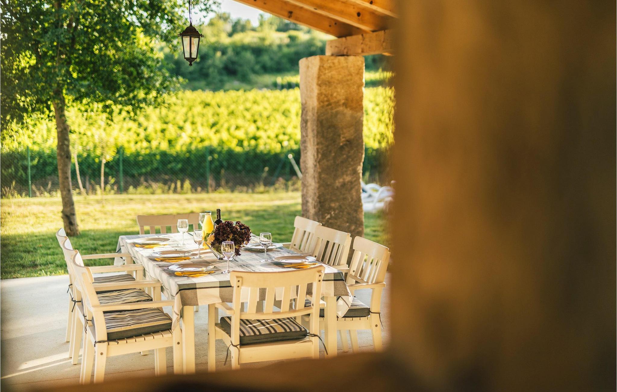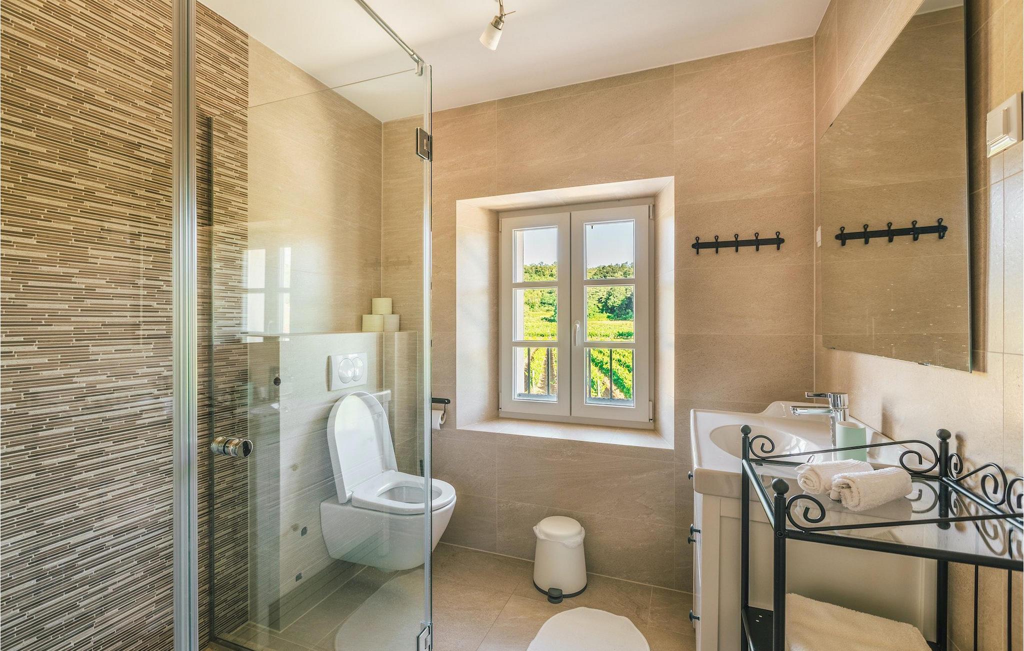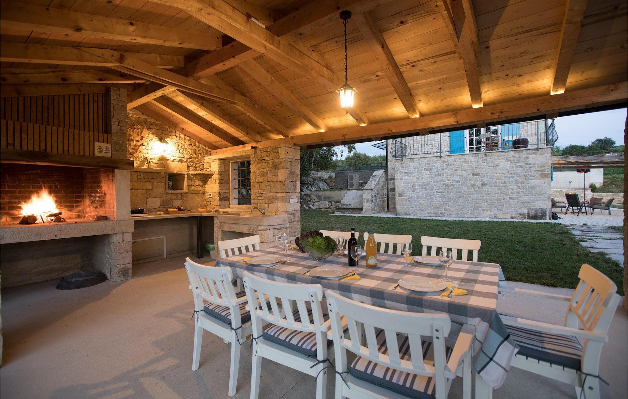 Villa Kanedolo har en idyllisk beliggenhed ikke langt fra den romantiske by Momjan. Villaen er omgivet af romantiske vinmarker, der minder om Toscana og inviterer dig til at blive forelsket i Istrien. Selve huset blev designet og indrettet i en blanding af traditionel landlig og moderne stil. Villaen kan rumme op til 9 gæster og består af 3 etager. Den lyse åbent koncept stue/alrum med køkken er placeret i stueetagen, hvor du også finder et gæstetoilet. De 4 soveværelser og 3 badeværelser er fordelt på de 2 øverste etager. 2 soveværelser, hvoraf det ene har eget badeværelse, er placeret på første sal sammen med et separat badeværelse. De to andre soveværelser, som deler badeværelse, er placeret på anden sal. Fra terrassen på øverste etage er der en vidunderlig udsigt over vinmarkerne og de romantiske omgivelser. Den dejlige overdækkede terrasse i stueetagen med komfortabelt loungeområde er det ideelle sted for en morgenkaffe eller til at se solnedgange om aftenen med et glas istrisk Malvazija. Et udendørs køkken med grill og overdækket spiseplads er placeret mellem poolen og villaen. Den smukke private pool er også omgivet af natur og byder på fremragende forfriskning på varme sommerdage. Nyd din ferie i dette magiske stykke istriske paradis! :)