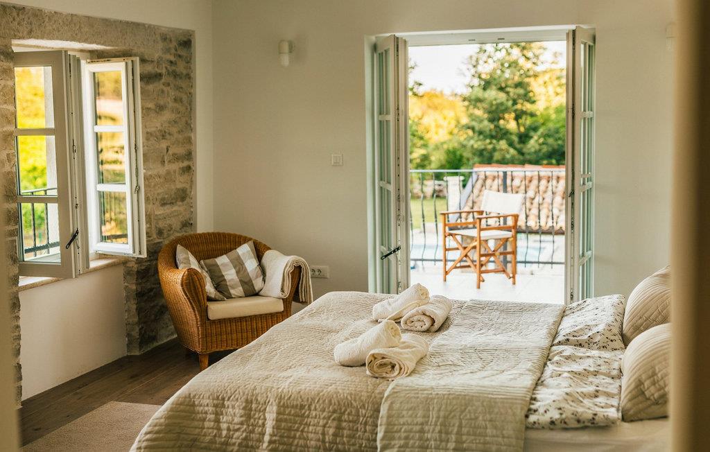 Yngre grupper er ikke tilladt!Den smukke romantiske Villa Kanedolo ligger i den lille landsby Momjan, mindre end 20 km fra kystbyen Umag med dens smukke sten- og klippestrande. Momjan og regionen omkring Buje, den nærmeste by, er kendt for maleriske bakker, vinmarker, olivenlunde og agroturisme. Gå ikke glip af de lokale specialiteter fra Istrien og Middelhavet: trøfler, olivenolie, istrisk okseboškarin, prosciutto og god istrisk vin. Den første istriske jernbane, som passerer Buje, blev for nylig omdannet til en cykelsti og byder på gode ture på tværs af det smukke landskab. Kystbyen Umag byder på en bred vifte af fritidsaktiviteter og turistfaciliteter samt en lille havn. Fremragende restauranter, barer og caféer kan findes i byens charmerende brostensbelagte gader. I dag er Umag især kendt for sport: hver juli finder ATP Croatia Open sted her, med mange store navne fra mændenes tennisverden. I nærheden af byen kan du finde det prisvindende vandland Istralandia - ideelt til en dag med sjov for hele familien.