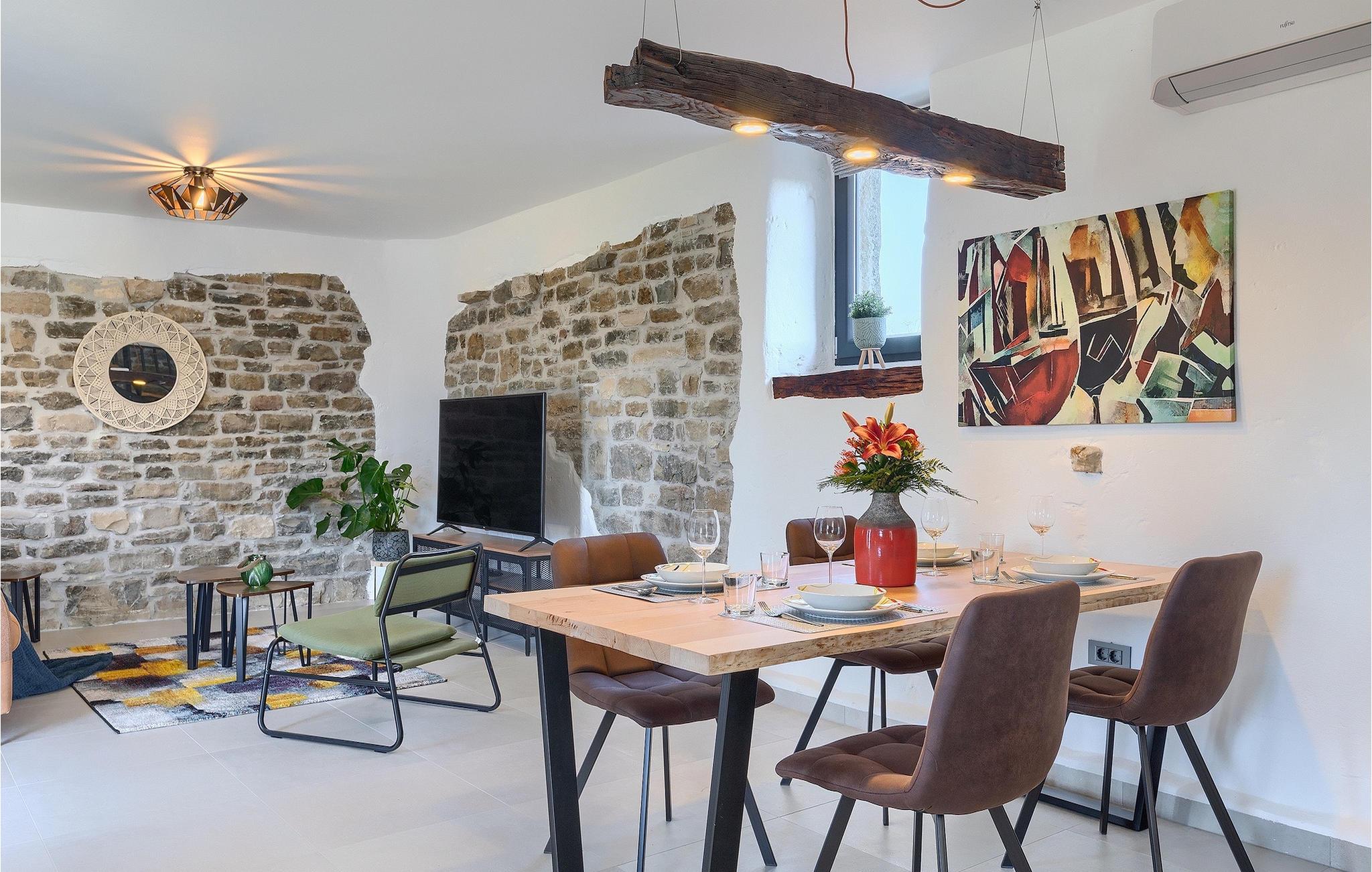 Hvis du leder efter en ferievilla væk fra byens stress og jag, vil Villa Fiore Marušici gøre det muligt for dig. Stenvægge og trædetaljer giver en særlig form for charme til denne villa. Denne smukke gamle restaurerede villa byder på to soveværelser til fire gæster, med mulighed for at rumme op til to ekstra gæster. Begge soveværelser er placeret på første sal og vil sikre et behageligt ophold og god hvile. Et soveværelse har en dobbeltseng og eget badeværelse. Det andet soveværelse har to enkeltsenge og et separat badeværelse, som også er placeret på første sal. Begge soveværelser har aircondition og tv. I villaens stueetage finder du opholdsstue med tv og sofa samt spiseplads og fuldt udstyret køkken. Hele rummet er forbundet og har aircondition. I stueetagen er der også en sauna, hvor du kan slappe af efter en lang dag, samt endnu et badeværelse.