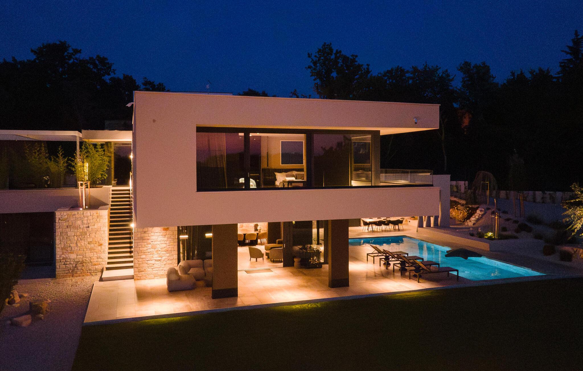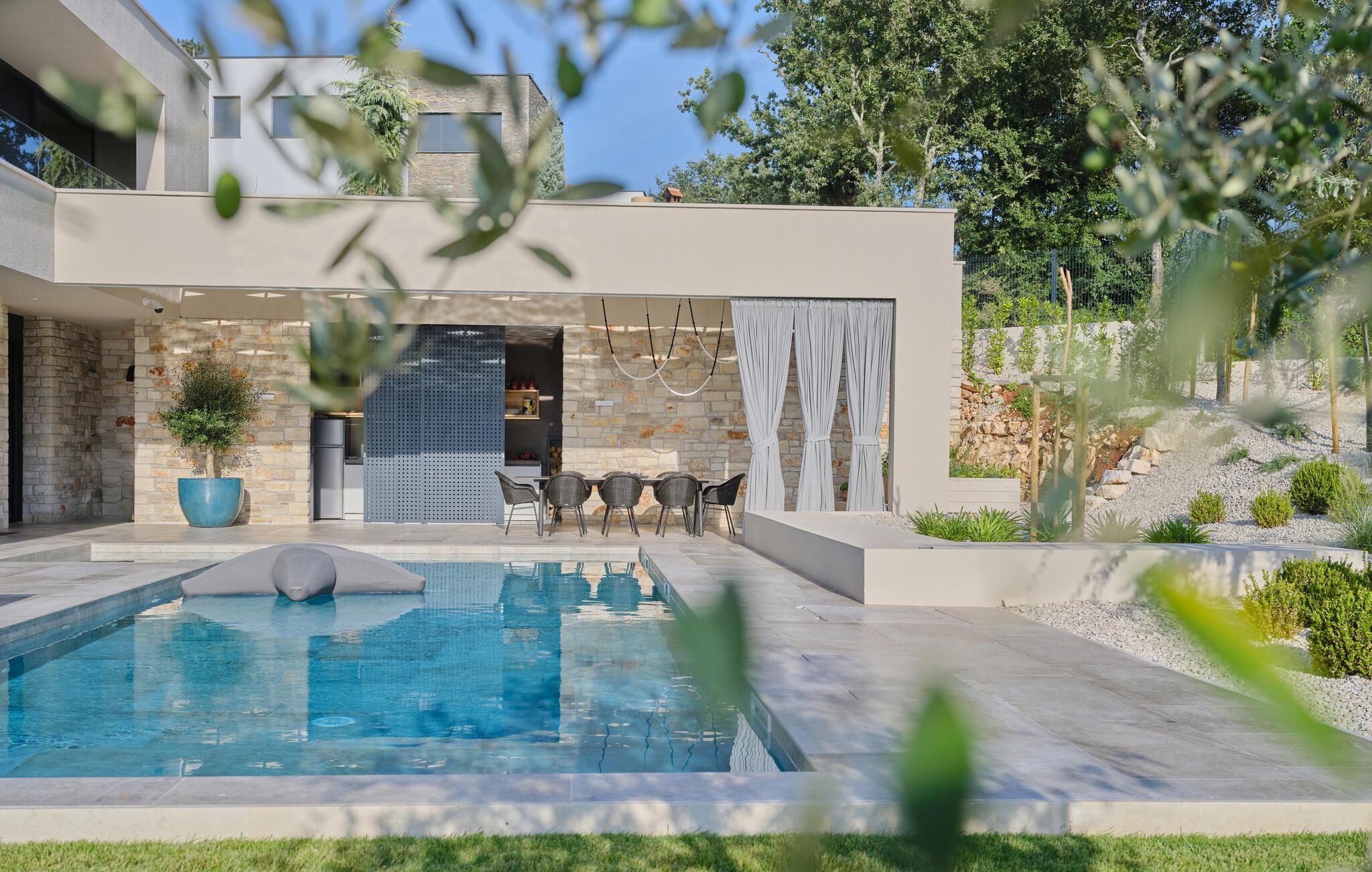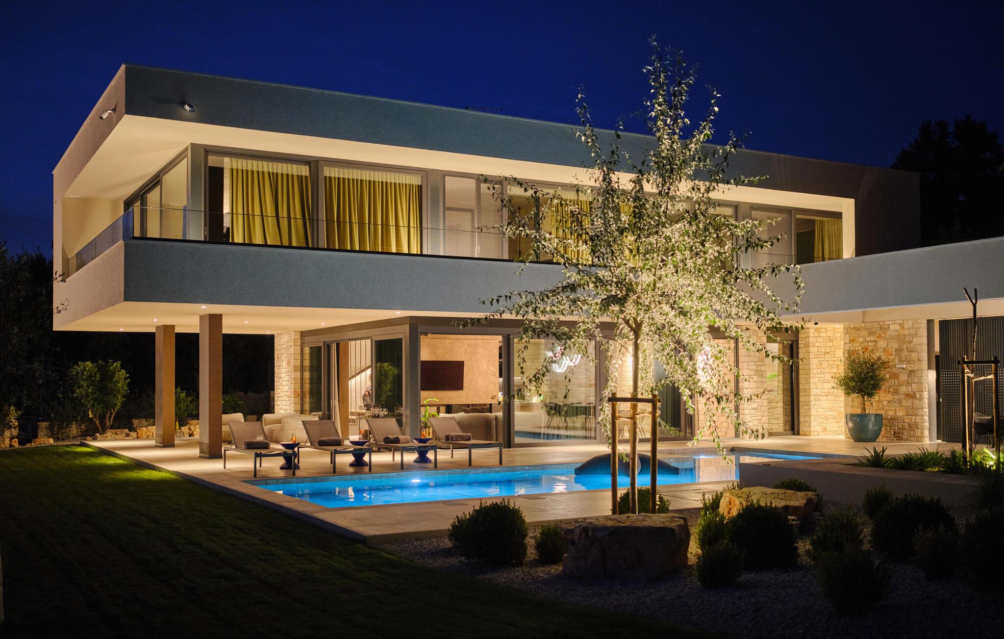 Denne magiske villa i Volpija, der er i to etager, giver jer en luksuriøs ferieoplevelse og en stilfuld atmosfære. Kvalitetsmaterialer og elegant design løber gennem hele indretningen, fra den rummelige opholdsstue med pejs til soveværelserne, som alle har eget badeværelse en suite. Wellness mangler heller ikke, for i villaen finder I et skønt område med sauna og spabad.