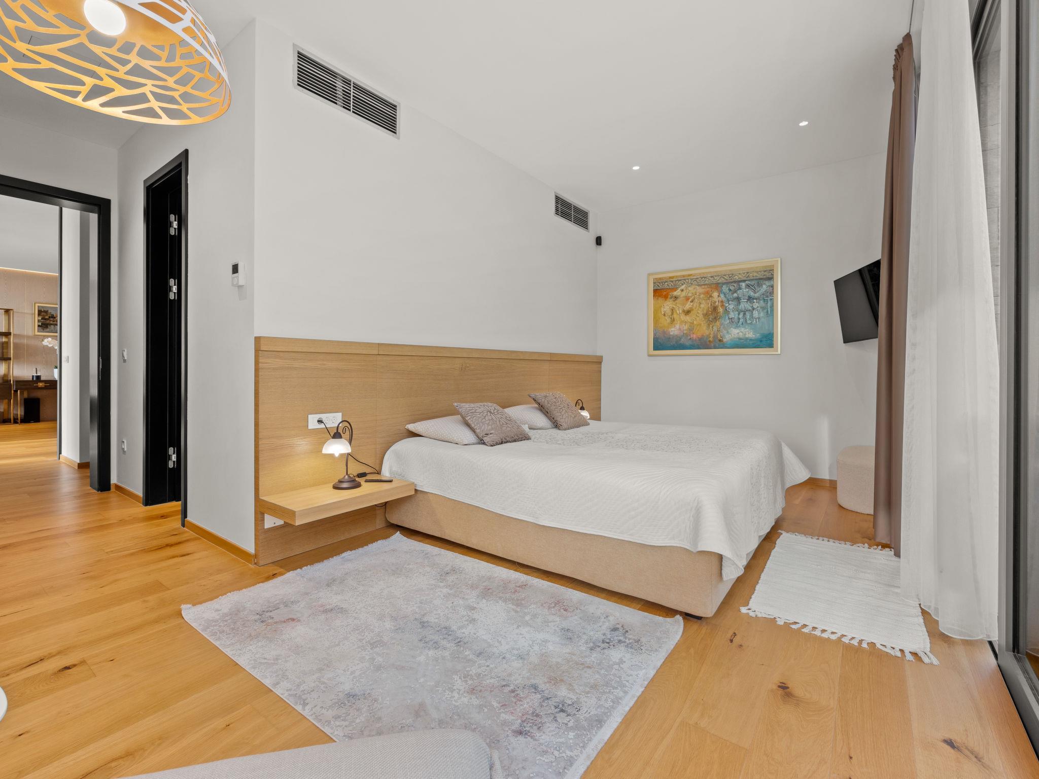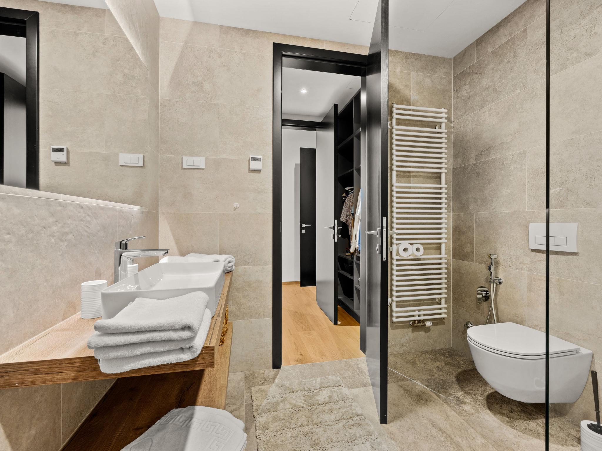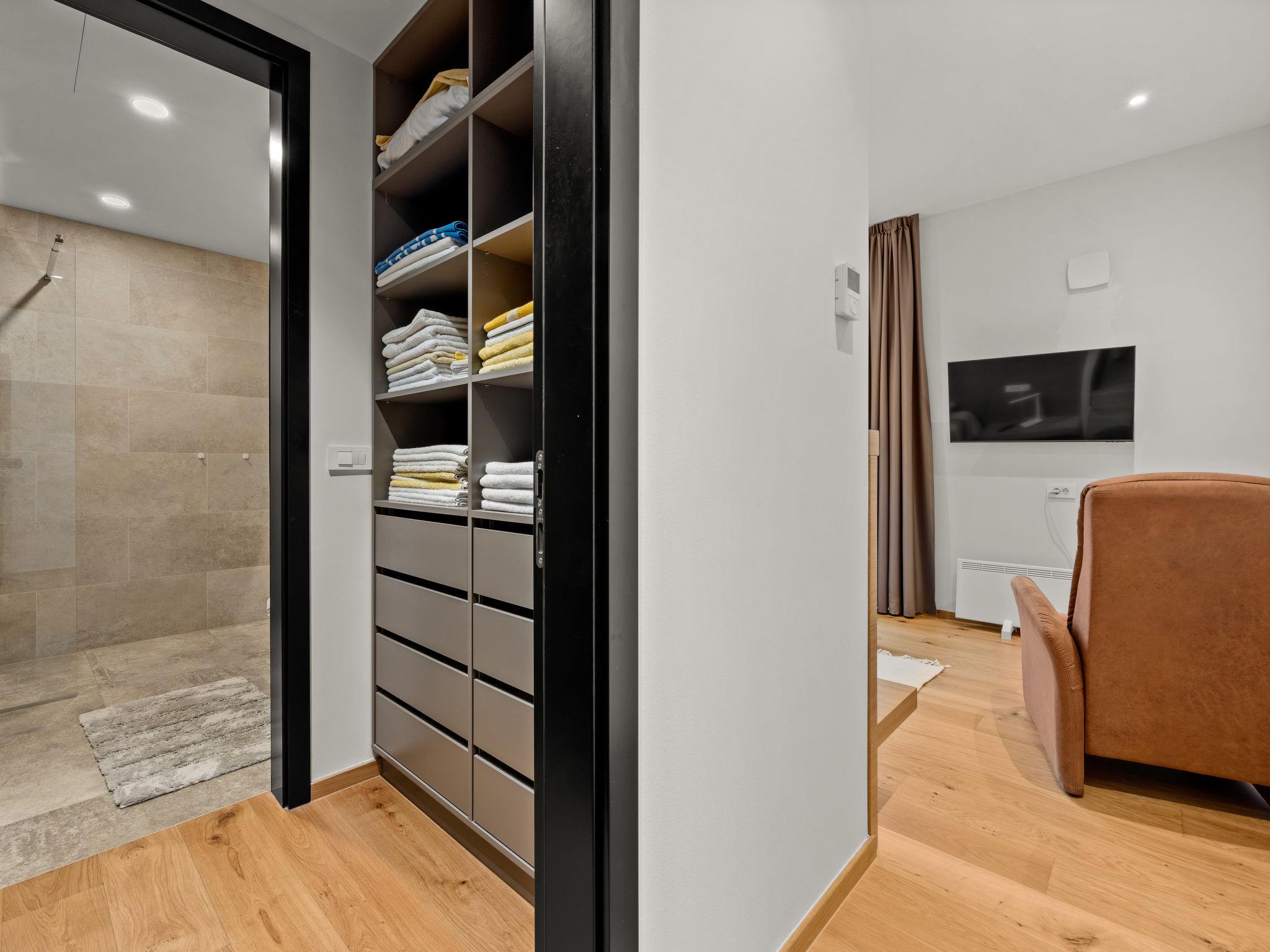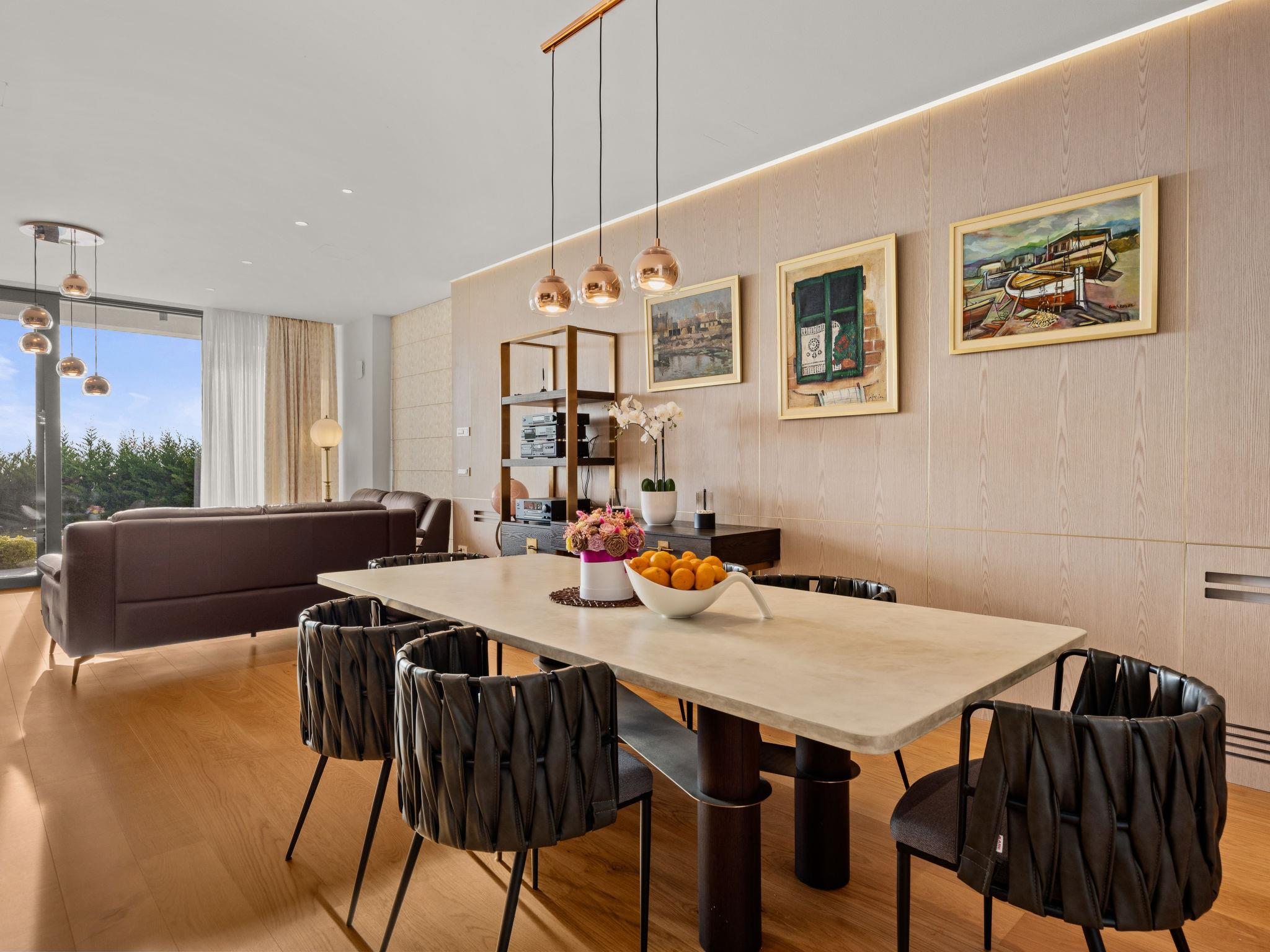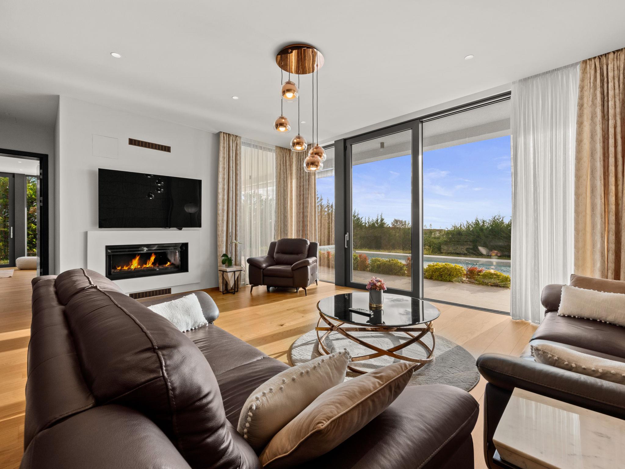 Brtonigla 6 km from Buje: Modern, beautiful villa "Miracle", built in 2025. In the hamlet Monte Marzari 1.2 km from the centre of Brtonigla, 10 km from the centre of Novigrad, 13 km from the centre of Umag, in a sunny position, 8 km from the sea. Private: property 1'150 m2 (fenced), garden with lawn, swimming pool angular, heated (10 x 5 m, 50 m2, depth 150 cm, seasonal availability: 01.Jan. - 31.Dec.) with internal staircase. Outdoor shower. In the house: internet access, fitness room, massage (extra). Hot tub (all included), infrared sauna, air conditioning, burglar alarm system, washing machine, tumble dryer. Parking (for 2 cars) at the house on the premises. Shop 1.2 km, supermarket 6.4 km, restaurant 1 km, bus stop 1.4 km, pebble beach 8 km, diving center 8 km. Golf course (18 hole) 20 km, minigolf 11 km. Nearby attractions: Aquapark 5.2 km. The owner does not accept any youth groups. Swimming pool heated (extra). It is necessary to announce 7 days in advance if the pool heating is required.