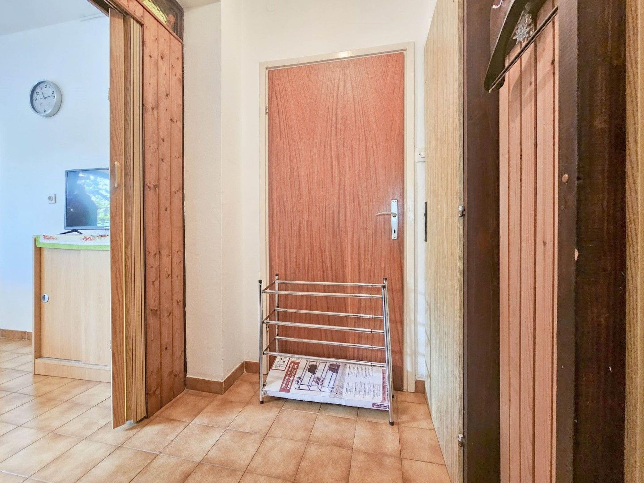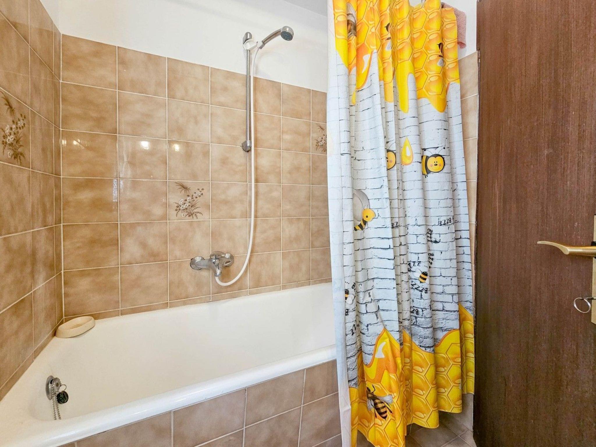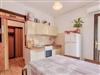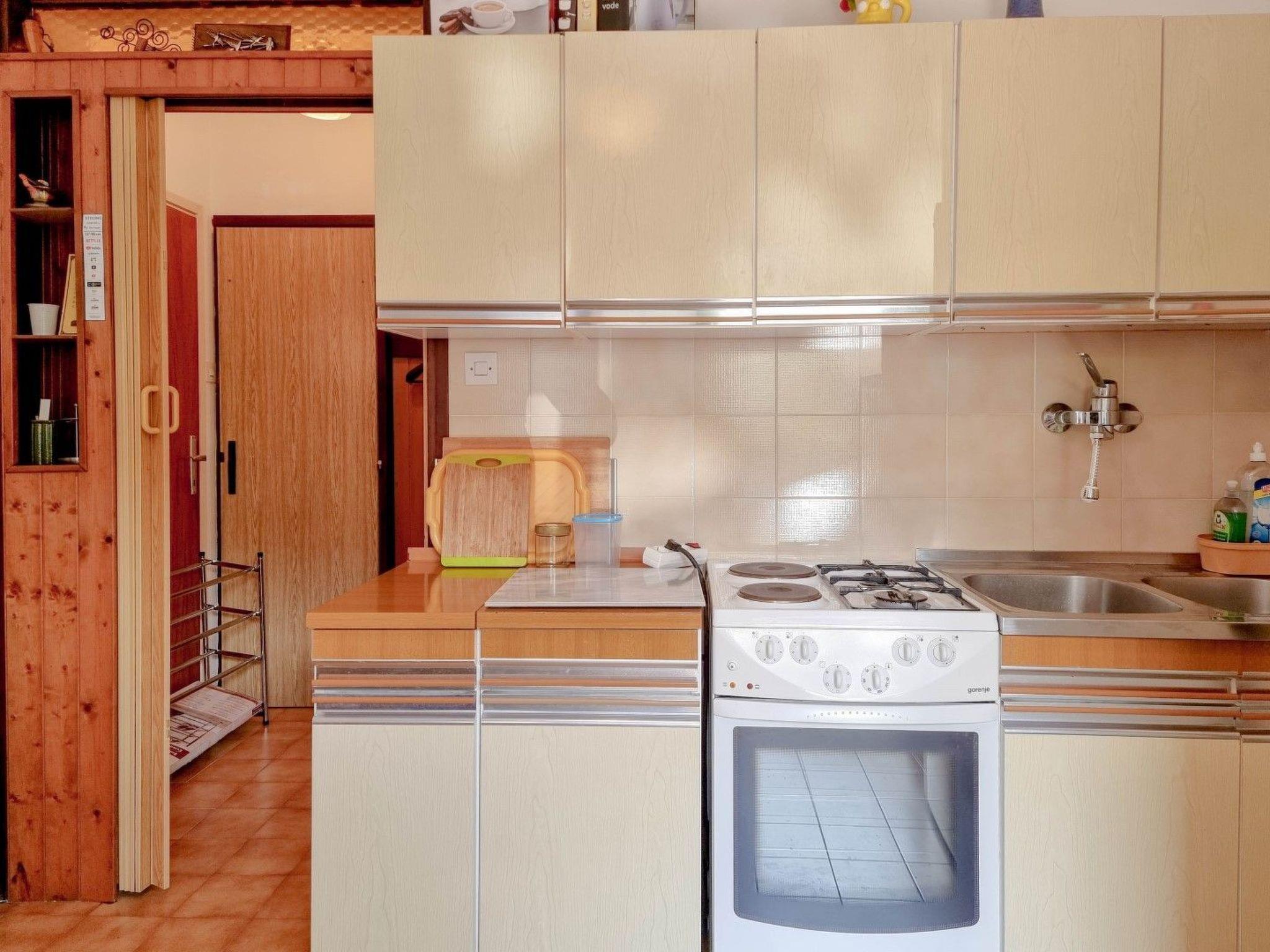 Inside, the apartment is thoughtfully equipped to ensure a comfortable stay. The space is designed for two, featuring a cozy bedroom with a welcoming double bed where you can unwind after a day of exploration. The kitchen area, though compact, comes fully prepared with an electric stove, oven, refrigerator, and coffee maker, catering to your culinary needs. The inclusion of a bathroom equipped with a bathtub adds a touch of convenience, ensuring you have everything you need for a hassle-free stay.