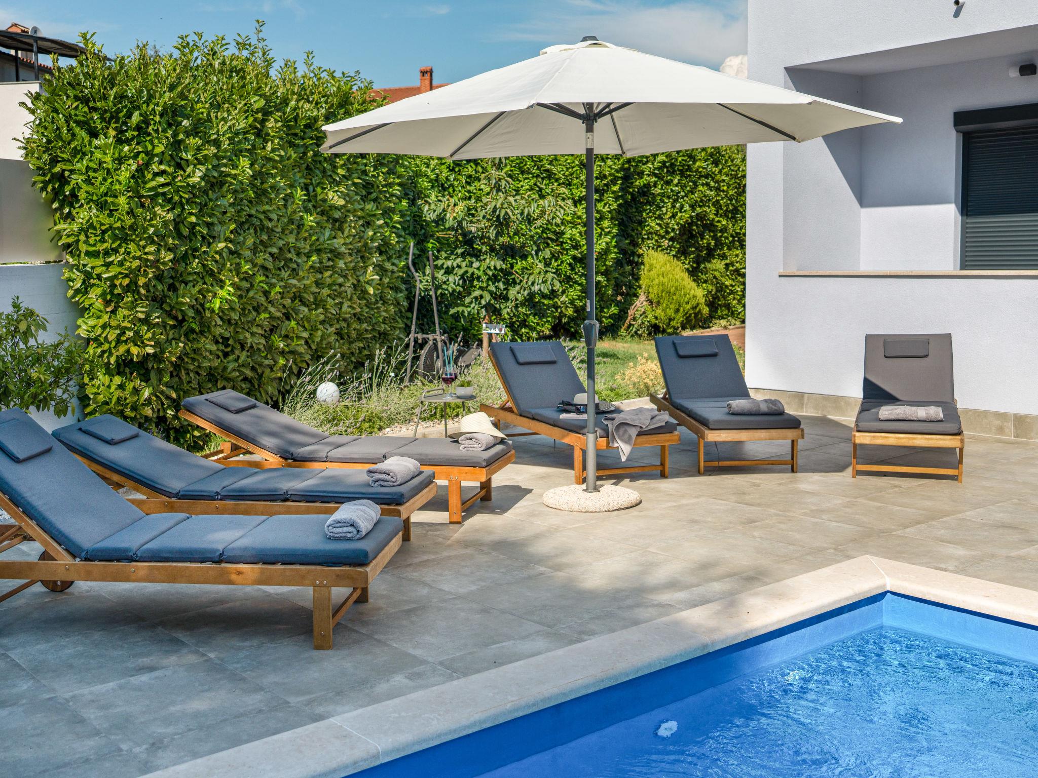 Brtonigla: Beautiful house "Gabi", 2 storeys. In the hamlet Radini 4 km from the centre of Brtonigla, 11 km from the centre of Novigrad, 12 km from the centre of Umag, in a quiet, sunny position, 3 km from the sea, 4 km from the beach. Private: property 800 m2 (fenced), well-kept garden, swimming pool angular (8 x 4 m, depth 150 cm, seasonal availability: 01.May. - 01.Oct.) with internal staircase. Barbecue, pool maintenance by the owner/gardener. In the house: internet access, washing machine, tumble dryer. Parking (for 2 cars) at the house on the premises. Shop 5 km, supermarket 10 km, restaurant 4 km, bus stop 5 km, railway station 35 km, pebble beach 4 km, rocky beach 4 km. Golf course (18 hole) 23 km, walking paths from the house 400 m, cycle lane 450 m. Nearby attractions: Aquapark 6 km, Mramornica Cave 5 km. The owner does not accept any youth groups.