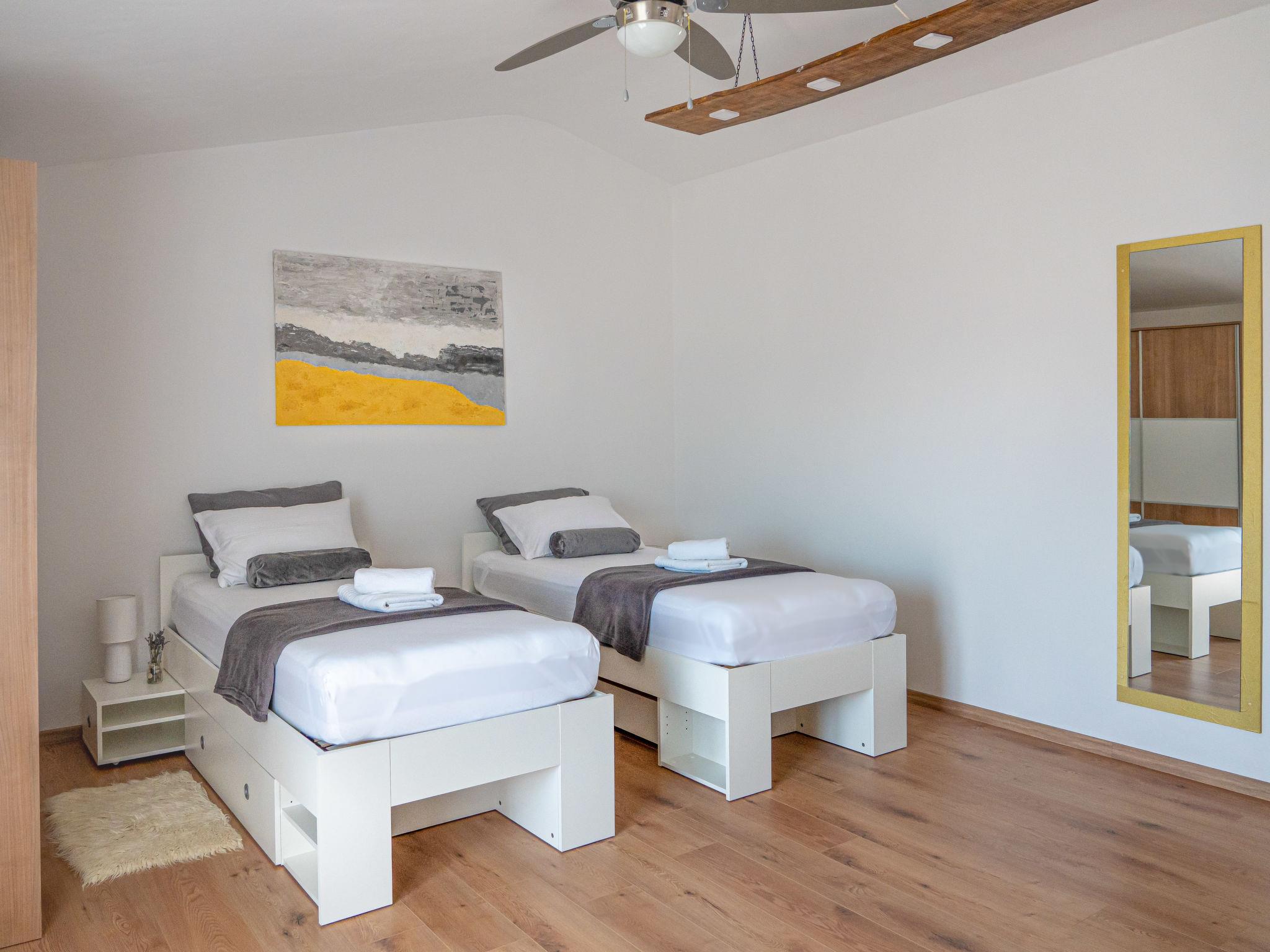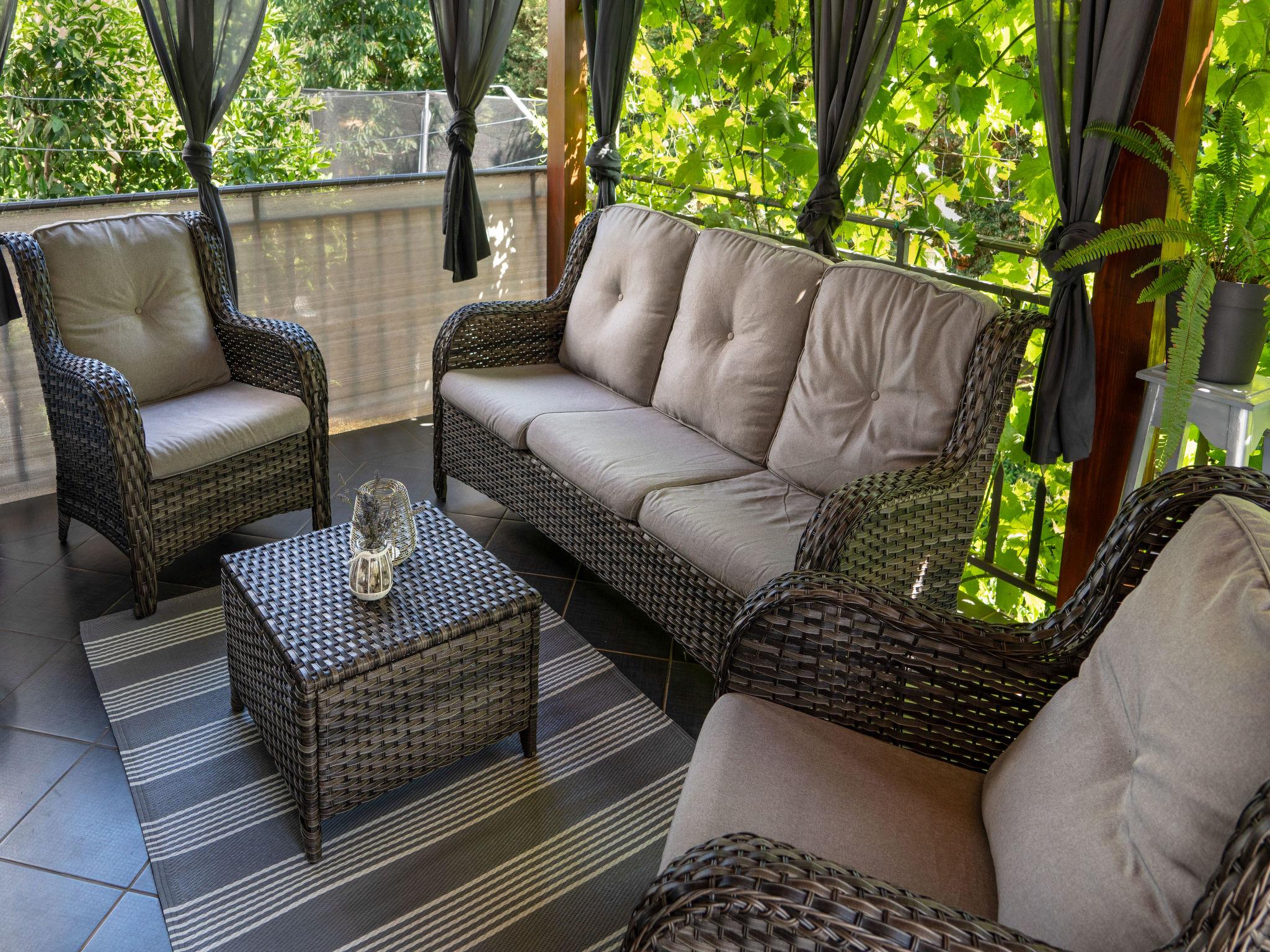 5-room house 200 m2 on 2 levels. Very tasteful furnishings: living/dining room with satellite TV and air conditioning. Exit to the terrace, to the swimming pool. 1 room with 1 french bed (140 cm, length 200 cm), air conditioning. Exit to the balcony. Open kitchen (oven, dishwasher, 4 ceramic glass hob hotplates, toaster, kettle, freezer, electric coffee machine). Bath/bidet/WC, hydro massage bath. Upper floor: entrance hall with air conditioning. 1 room with 1 french bed (160 cm, length 200 cm), air conditioning. Exit to the balcony. 1 room with 2 beds (90 cm, length 200 cm), satellite TV and fan. Exit to the balcony. 1 room with 1 french bed (180 cm, length 200 cm), air conditioning. Shower/WC. Forced-air heating. 2 balconies 5 m2, terrace 30 m2, roofed. Terrace furniture, deck chairs. Facilities: iron, mosquito net, children's high chair, baby cot, hair dryer. Internet (WiFi, free).