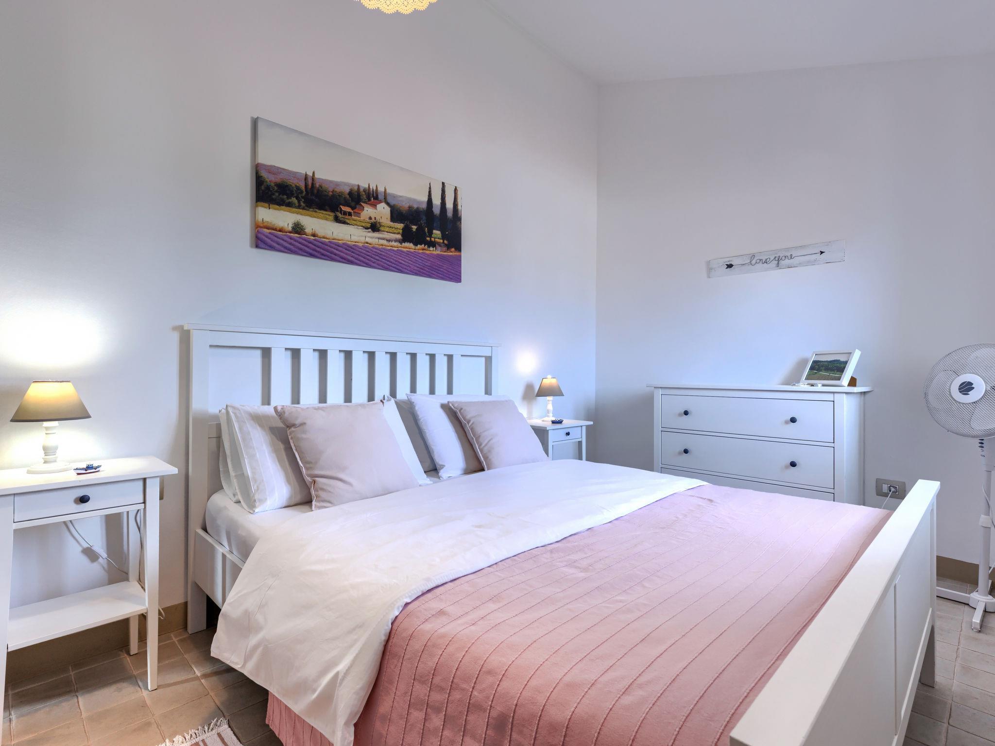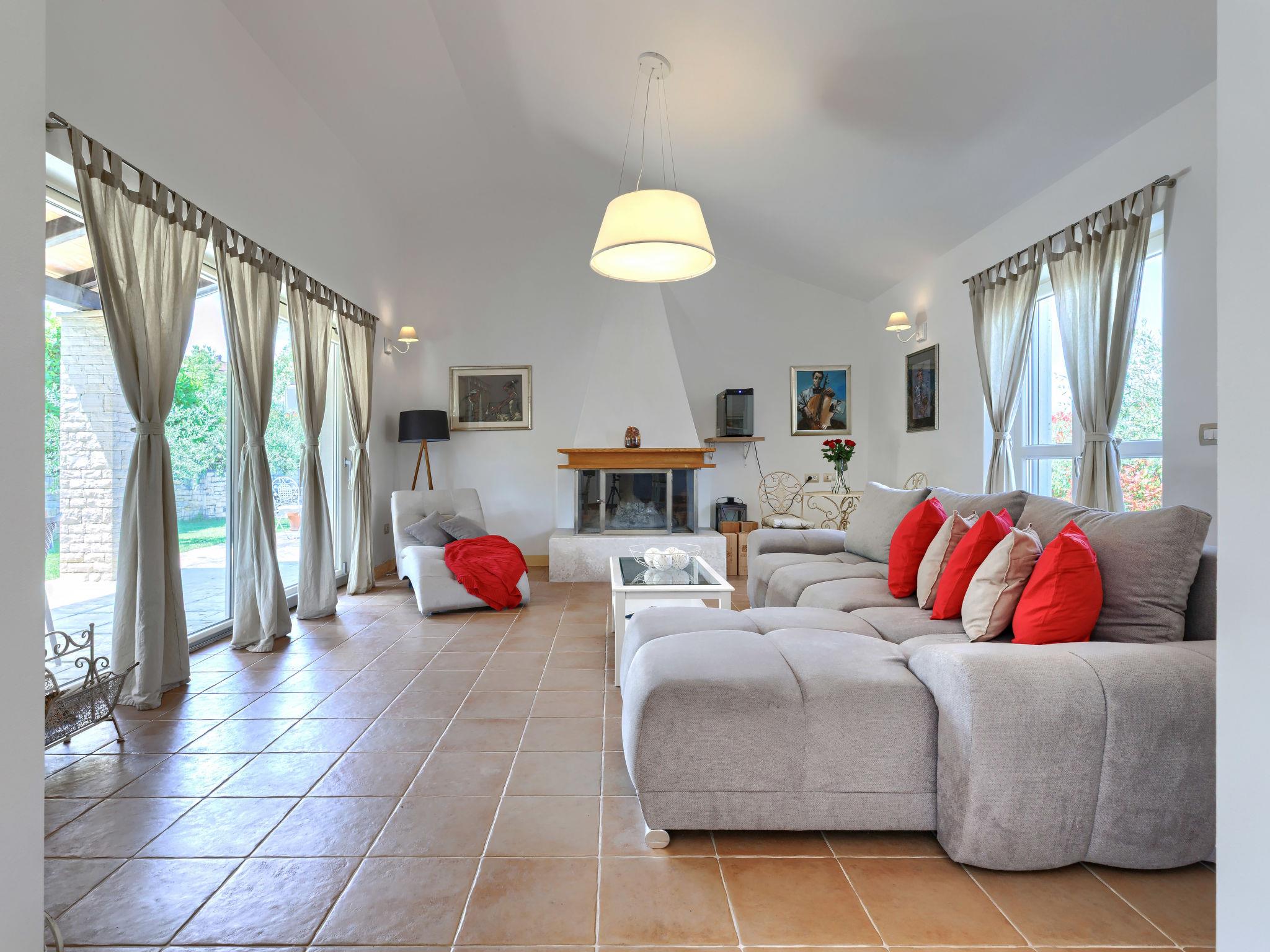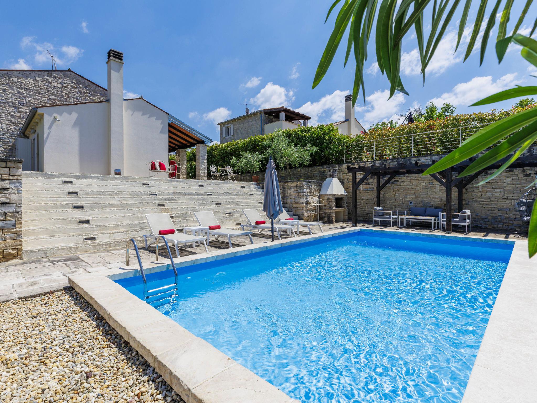 Momjan 5 km from Buje: Single-family house "Villa Samanta", 2 storeys. In a sunny position, 17 km from the sea. Private: property 500 m2 with lawn, swimming pool (8 x 4 m, depth 130 cm, seasonal availability: 01.May. - 30.Sep.) with salt-electrolysis pool-cleaning system. Outdoor shower, pergola (30 m2), garden furniture, barbecue. In the house: internet access, washing machine. Parking (for 2 cars) at the house on the premises. Shop 200 m, restaurant 150 m, bus stop 13.1 km, pebble beach 20 km, concrete beach 20 km. Walking paths from the house 200 m, cycle lane 250 m. Nearby attractions: aquapark 16 km. The owner does not accept any youth groups.