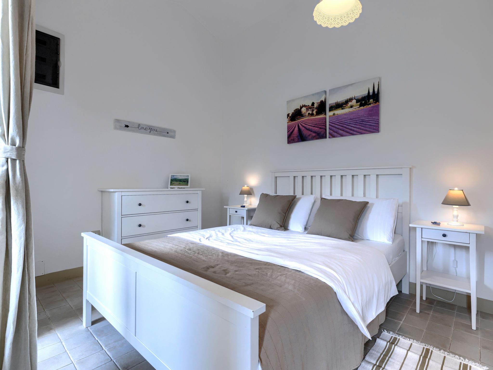 3-room house 120 m2 on 2 levels. Beautiful furnishings: living/dining room with 1 sofabed (120 cm, length 200 cm), satellite TV (flat screen), air conditioning. Exit to the terrace. Open kitchen (oven, dishwasher, 4 ceramic glass hob hotplates, toaster, kettle, microwave, freezer, electric coffee machine). Shower/bidet/WC. Upper floor: 1 room with 1 french bed (160 cm, length 200 cm), air conditioning. 1 room with 1 french bed (160 cm, length 200 cm), air conditioning. Exit to the balcony. Bath/bidet/WC. Forced-air heating. Small balcony 5 m2, terrace 30 m2. Terrace furniture, deck chairs. Facilities: iron, hair dryer. Internet (WiFi, free).