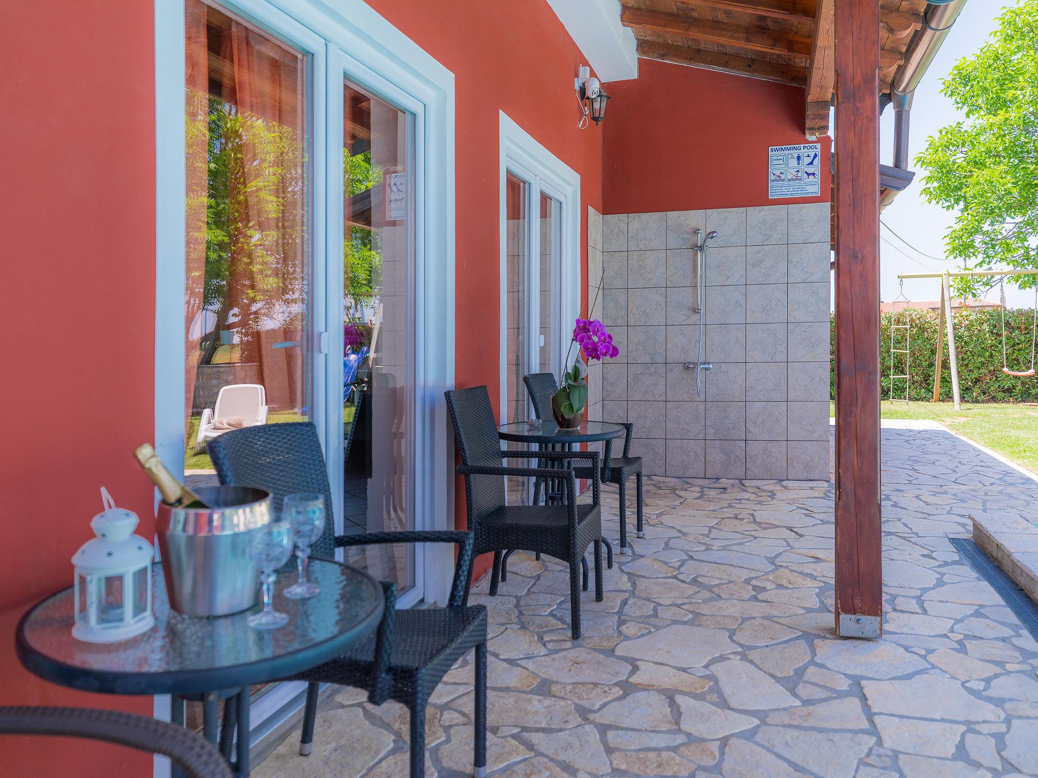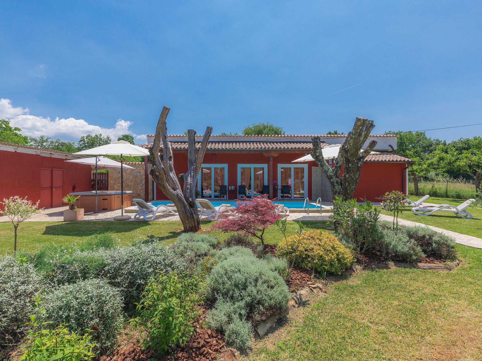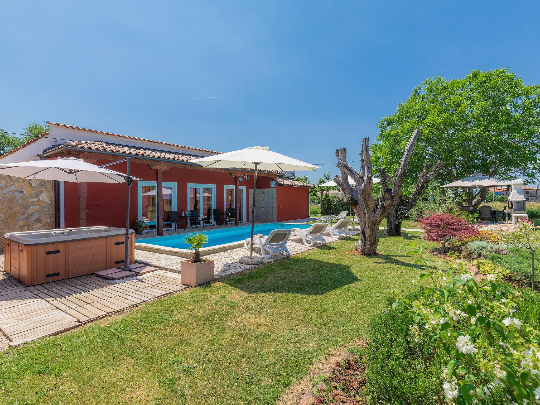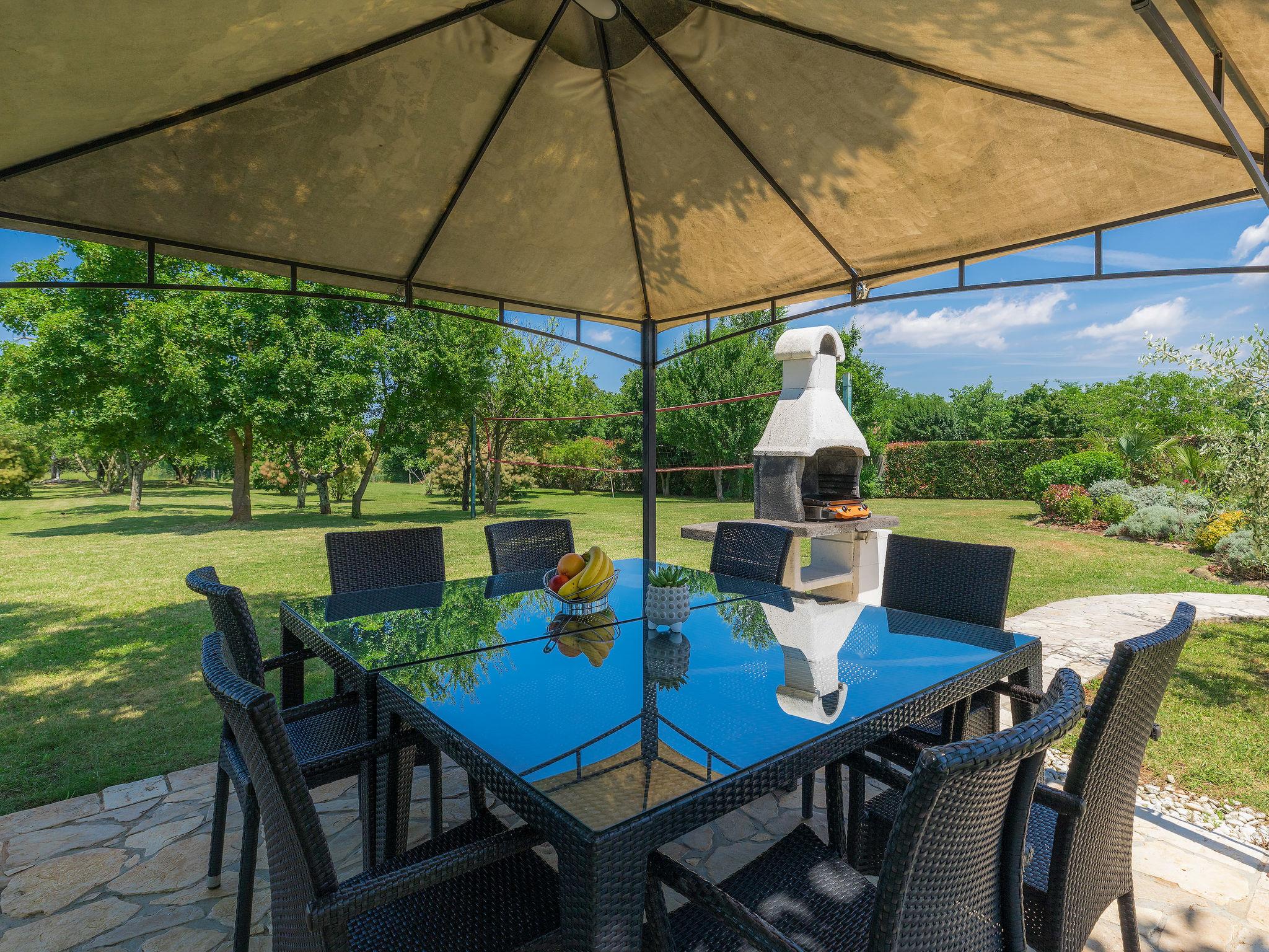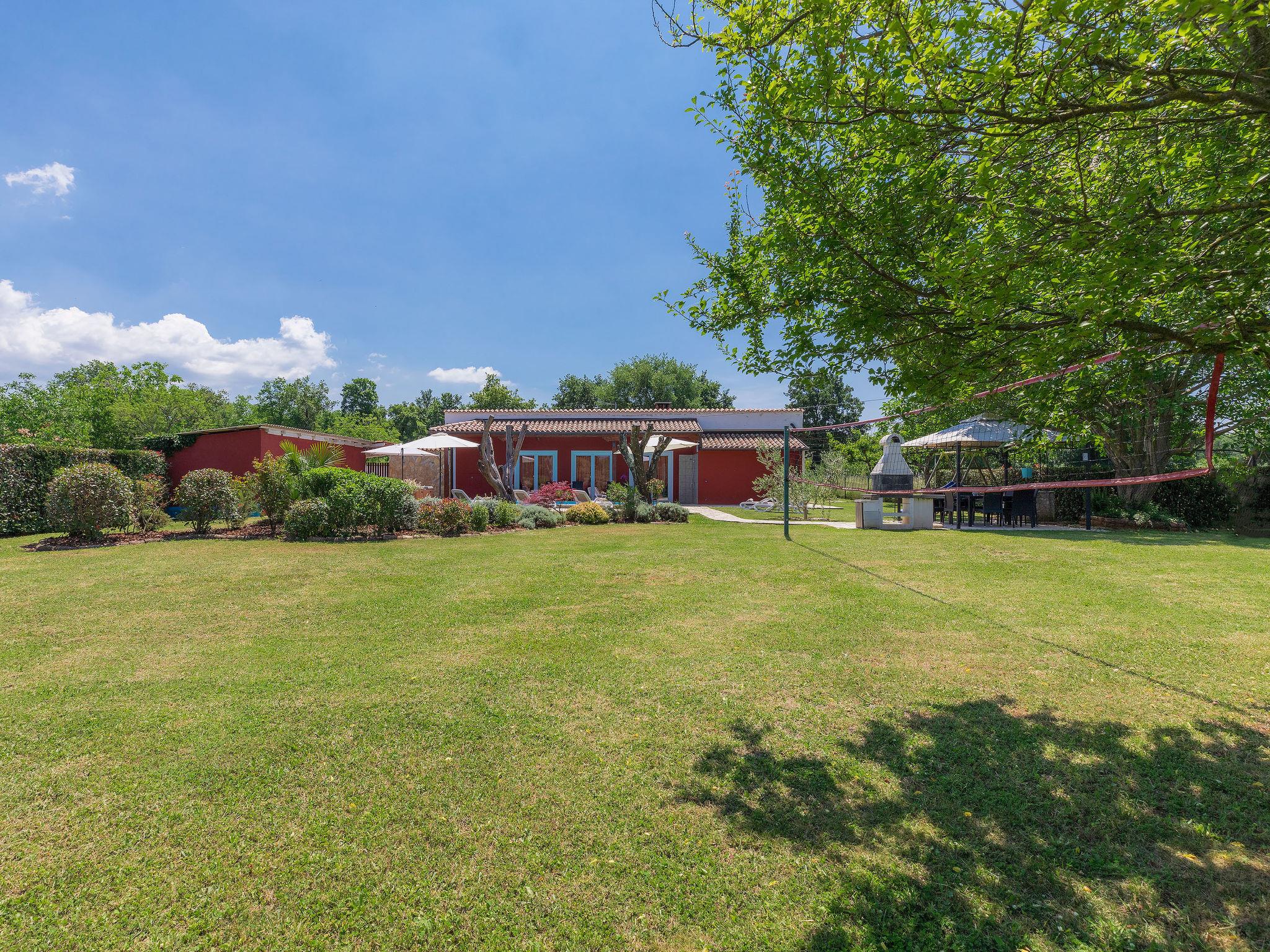 Plovanija 4 km from Buje: Single-family house "Villa Renzo". In the hamlet Simonetija 1 km from the centre of Plovanija, 10 km from the centre of Umag, in a quiet position, 5 km from the sea, in the countryside. Private: property 3'000 m2 (fenced), garden with lawn 1'000 m2 trees, swimming pool angular (3 x 8 m, depth 140 cm, seasonal availability: 11.May. - 21.Sep.). Outdoor shower, hot tub, barbecue, children's playground (swing). In the house: internet access, sauna, billiard table, washing machine. Roofed, parking at the house on the premises. Shop, restaurant 500 m, bus stop 3.9 km, pebble beach 5 km. Golf course (18 hole) 15 km, tennis 7 km, walking paths from the house, cycle lane 10 m. The owner does not accept any youth groups.
