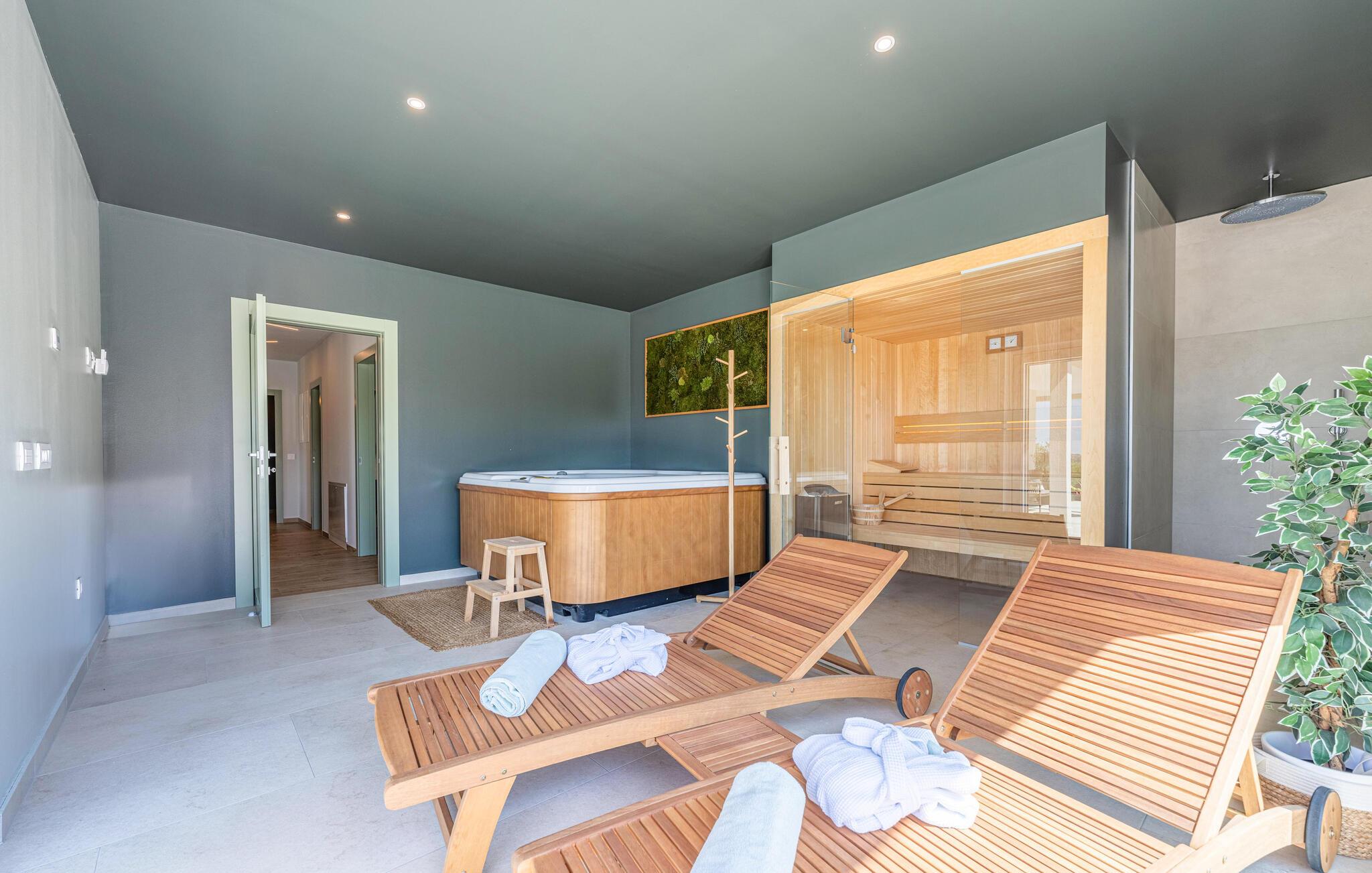 Nyd godt af husets dejlige faciliteter og forkæl jer selv med lidt lækker wellness i saunaen eller spabadet, inden I runder aftenen af i stuen med snacks og en god film på tv'et.