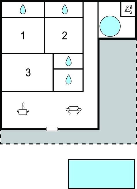 Badeværelse 6m2 (nr. 3) - WC. Varmt og koldt vand. Bruser