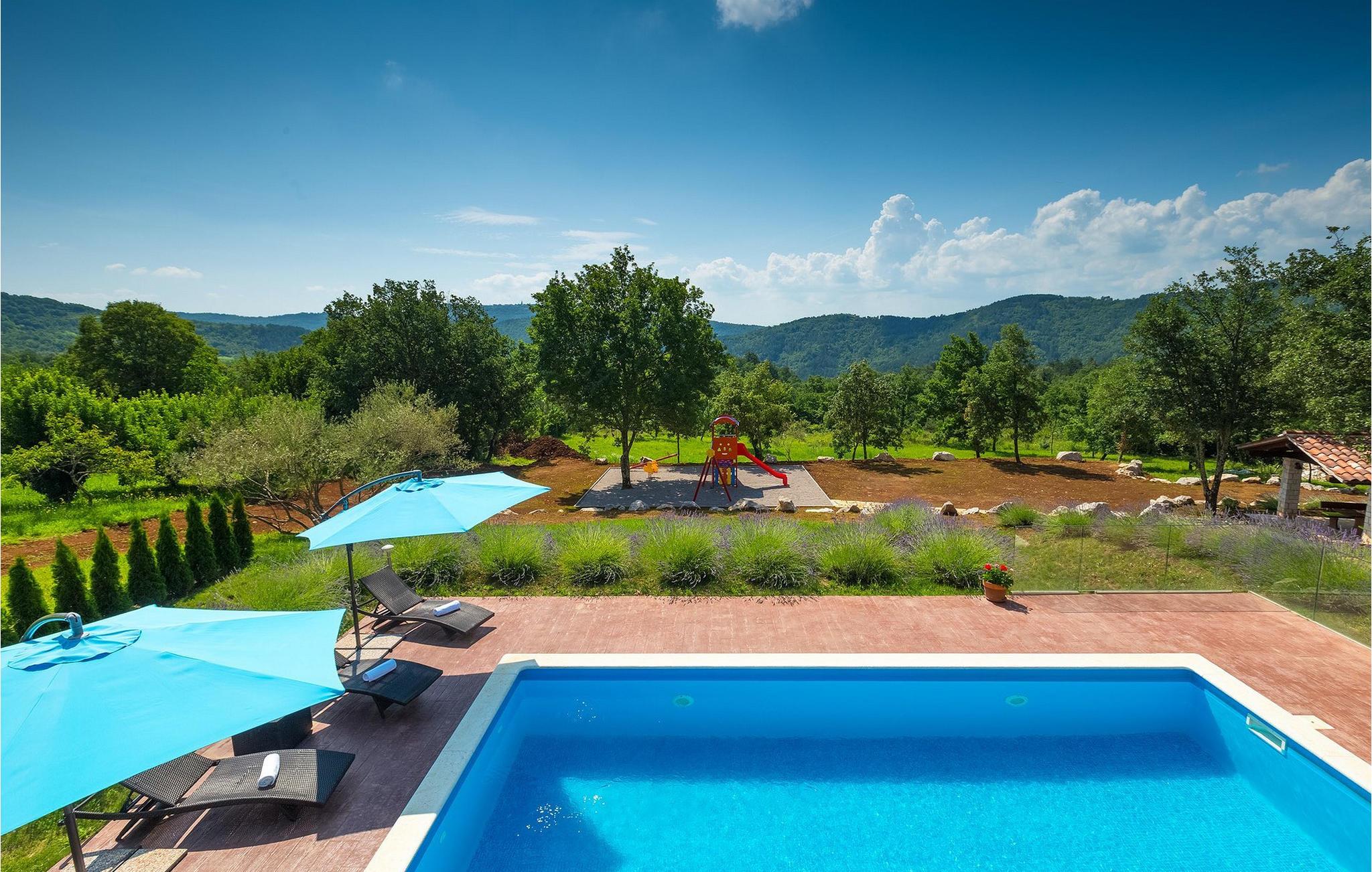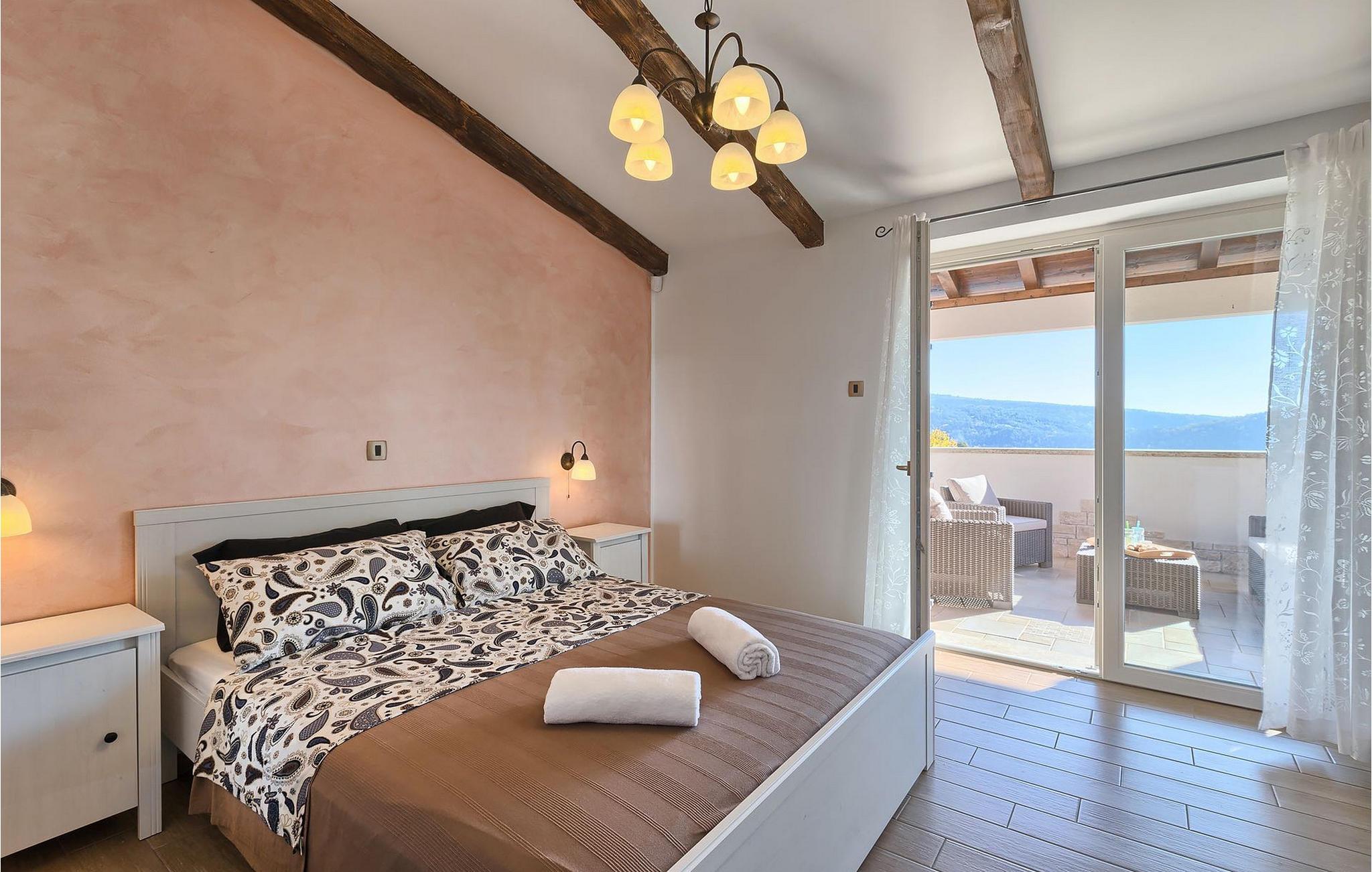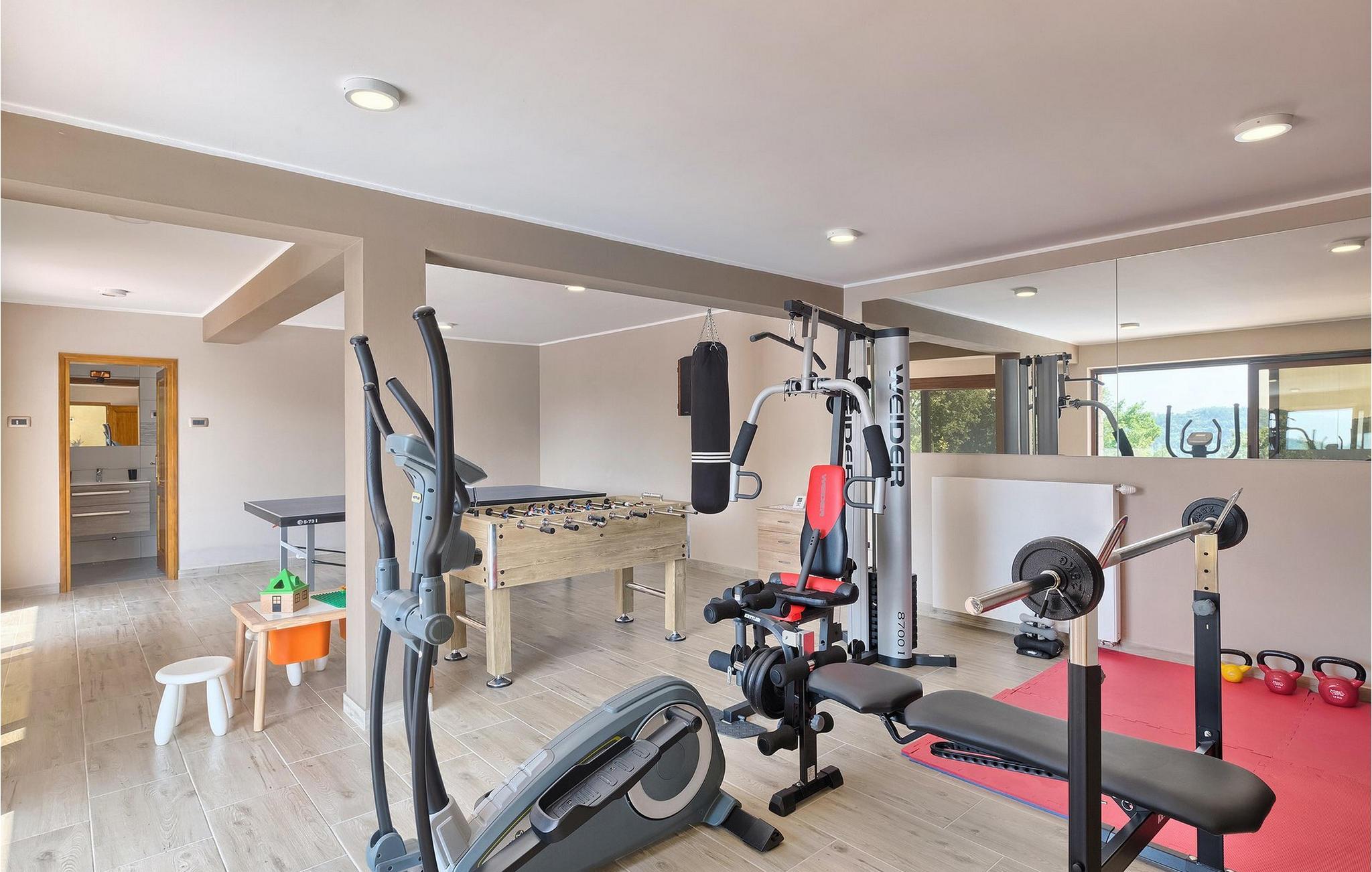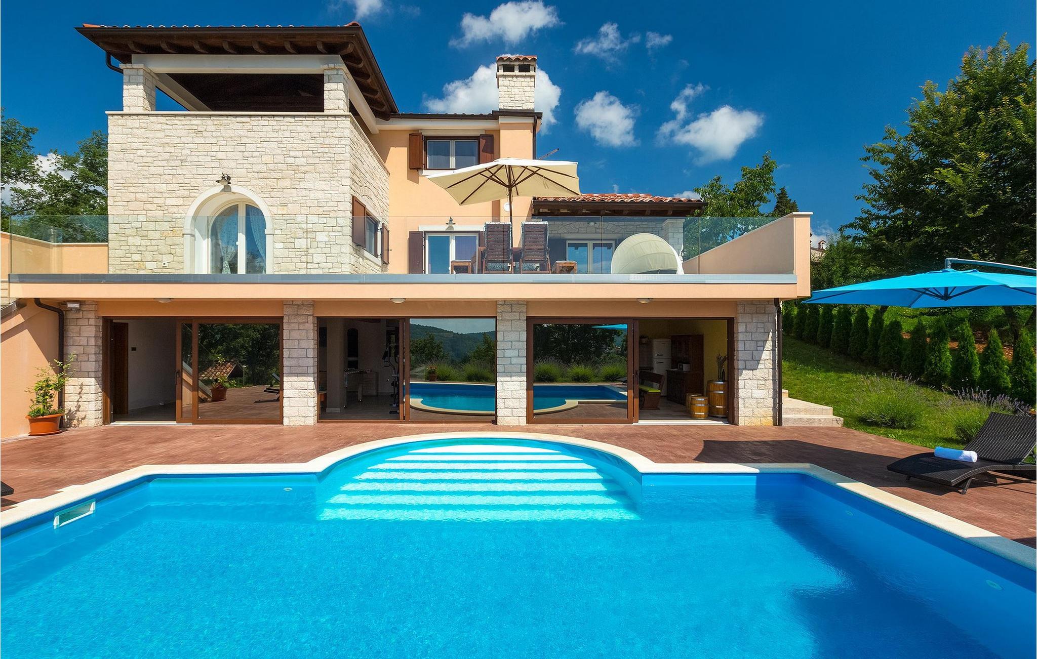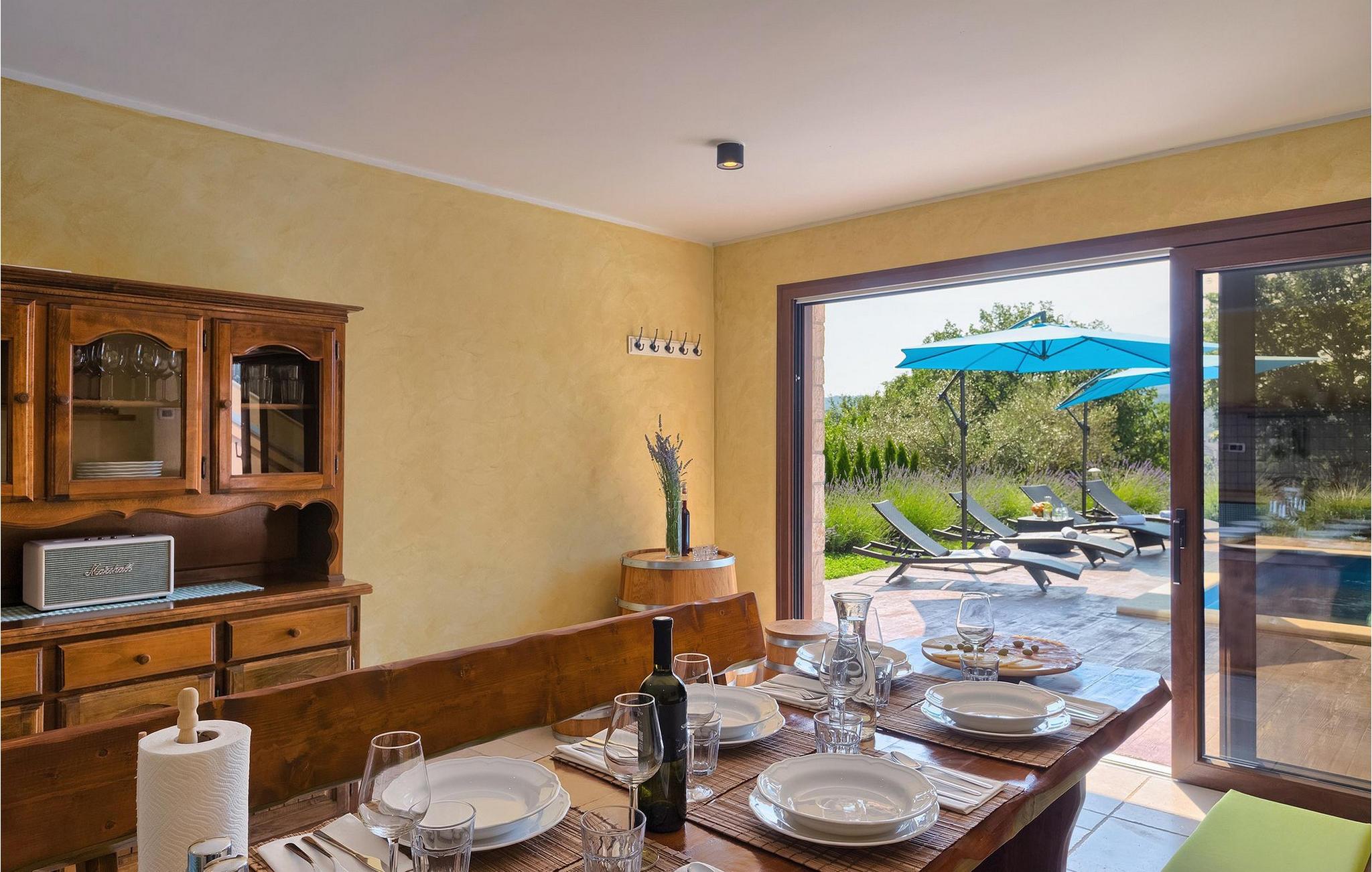 Beliggende i hjertet af det centrale Istria midt i de skovklædte bakker over den magiske Mirna-dal giver den smukke Villa Brazzana et perfekt sted at nyde at nyde den autentiske lokale atmosfære og nyde det traditionelle køkken. Dets moderne design smelter harmonisk ind i de naturlige omgivelser og fanger fantastiske udsigter fra alle vinkler. Villaen er fordelt på tre plan. Stueetagen har en åben stue og spisestue med hyggelige sofaer og lænestole omkring en smuk pejs. Her er også et elegant køkken med en kogeø samt et ensuite soveværelse med dobbeltseng, der begge fører direkte ud til den indbydende terrasse med en smart lounge og al fresco spiseplads. Der er yderligere to soveværelser med dobbeltsenge med deres egne badeværelser på øverste niveau, hvoraf det ene åbner ud til en privat balkon med en spektakulær udsigt at vågne op til hver morgen. Den nederste etage byder på en taverna med åben pejs og spisebord samt et spillelokale, mini-motionscenter og et ekstra badeværelse. De store glasvægge fører herfra ud til den smukke poolterrasse igen med en fantastisk udsigt over det omkringliggende landskab. Her finder du en muret grill, hvor du kan tilberede dine egne versioner af regionens specialiteter i den smukke, rummelige have. Uanset om du er her for at sightsee, nyde det lokale køkken og kultur eller bare slappe af med familie og venner, lader Villa Brazzana intet tilbage at ønske. Den luksuriøse Villa Brazzana ligger i den søvnige landsby Pracana lige uden for Buzet i det centrale Istrien. Det centrale Istrien er kendt for et landskab af små, maleriske middelalderbyer og smukt bølgende landskab. Den gamle historiske kerne af Buzet ligger på en bakketop over den frugtbare dal af den længste flod i Istrien - Mirna. I dag er Buzet almindeligt kendt som 'Trøflernes by', da skovene langs Mirna-floden er særligt rige på denne guddommelige svamp. Tilbyder en blanding af lækker mad, udsøgte Malvasia- og Teran-sorter, rig kulturel og historisk arv og naturlig skønhed er denne fængslende region en perfekt destination for en autentisk oplevelse af det traditionelle Istrien.