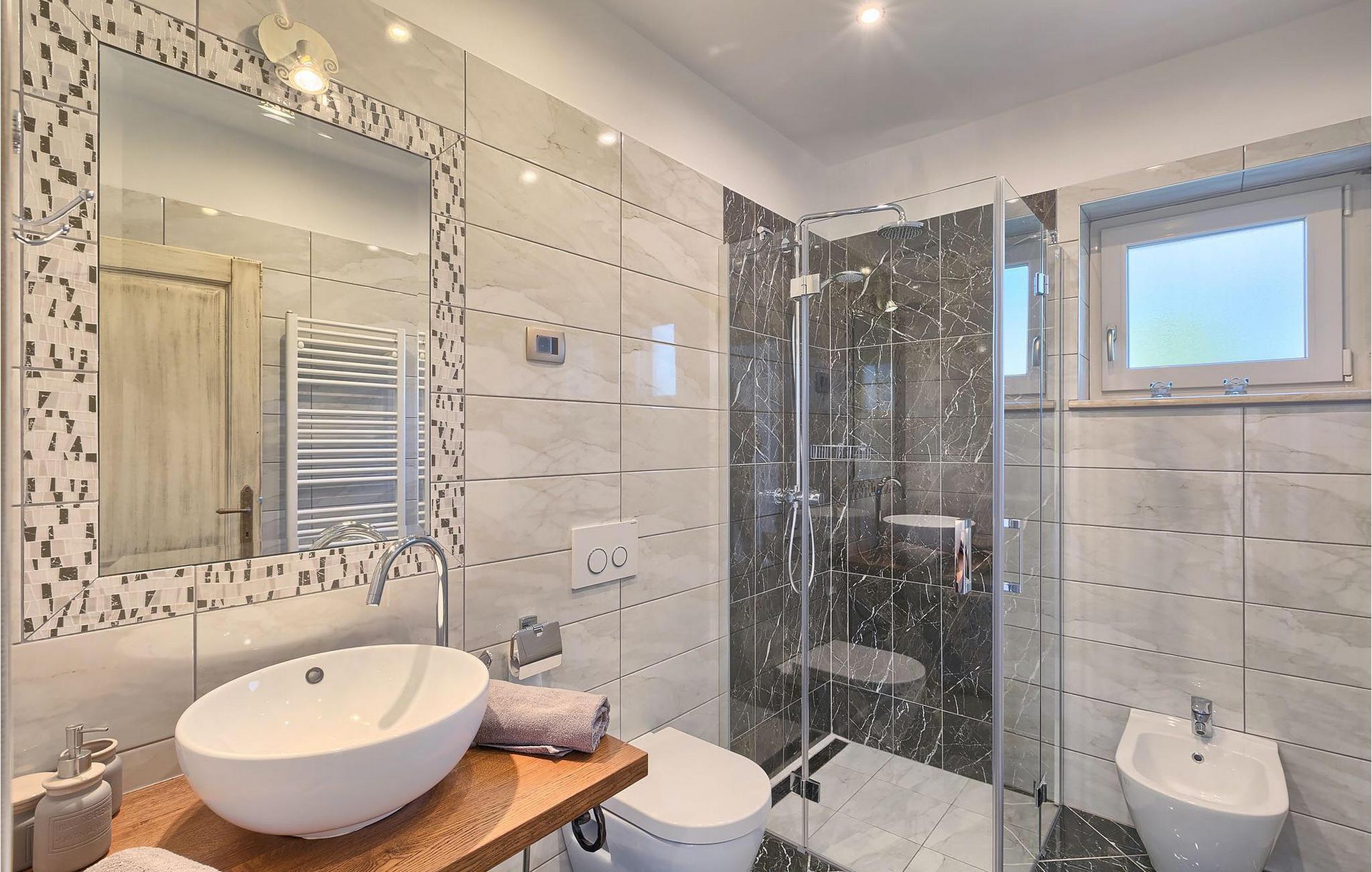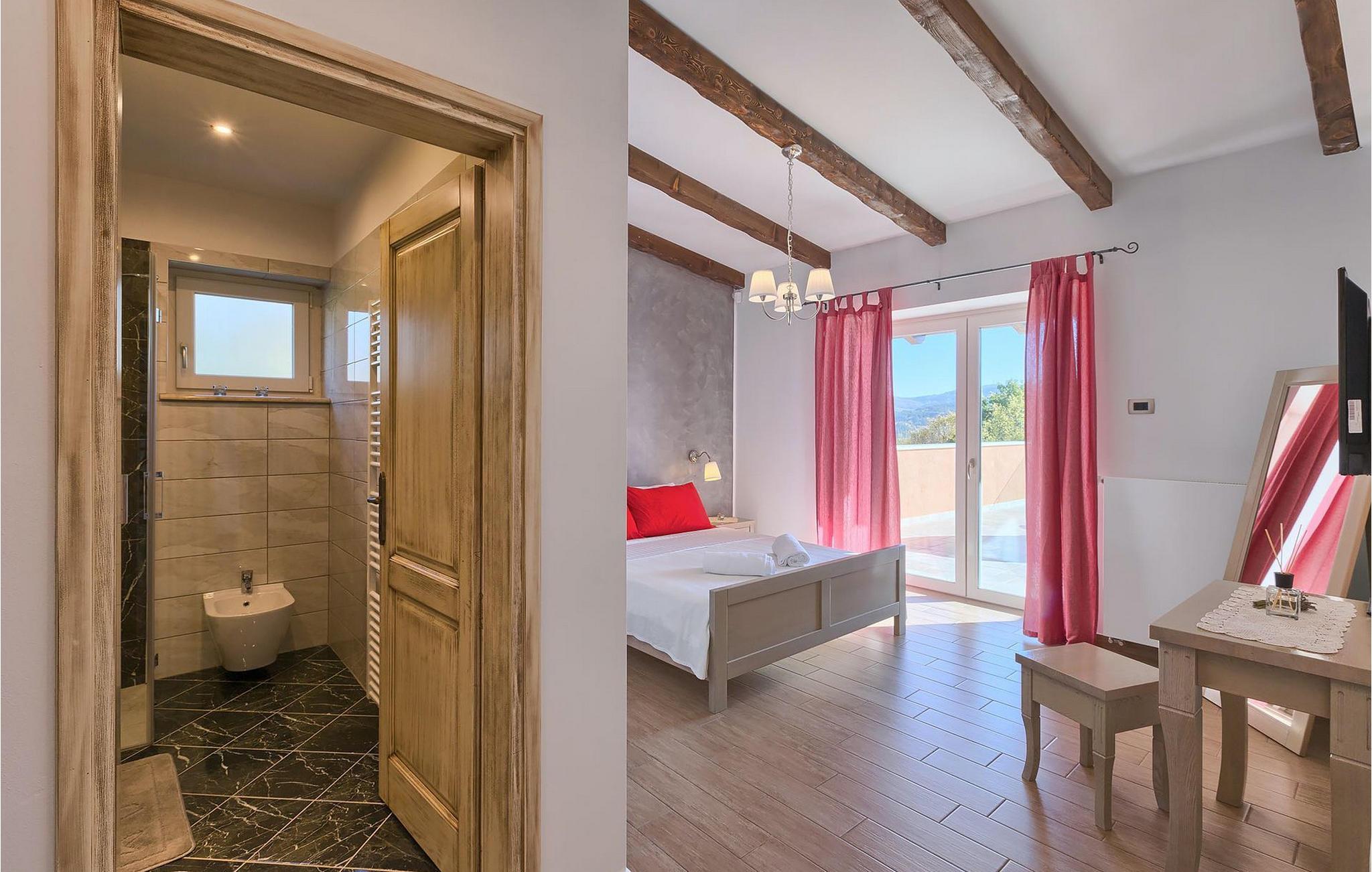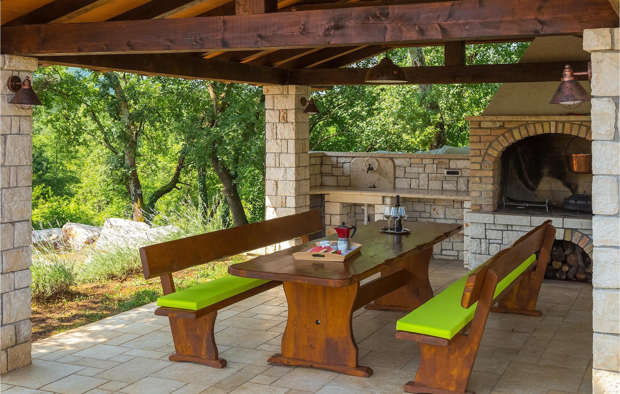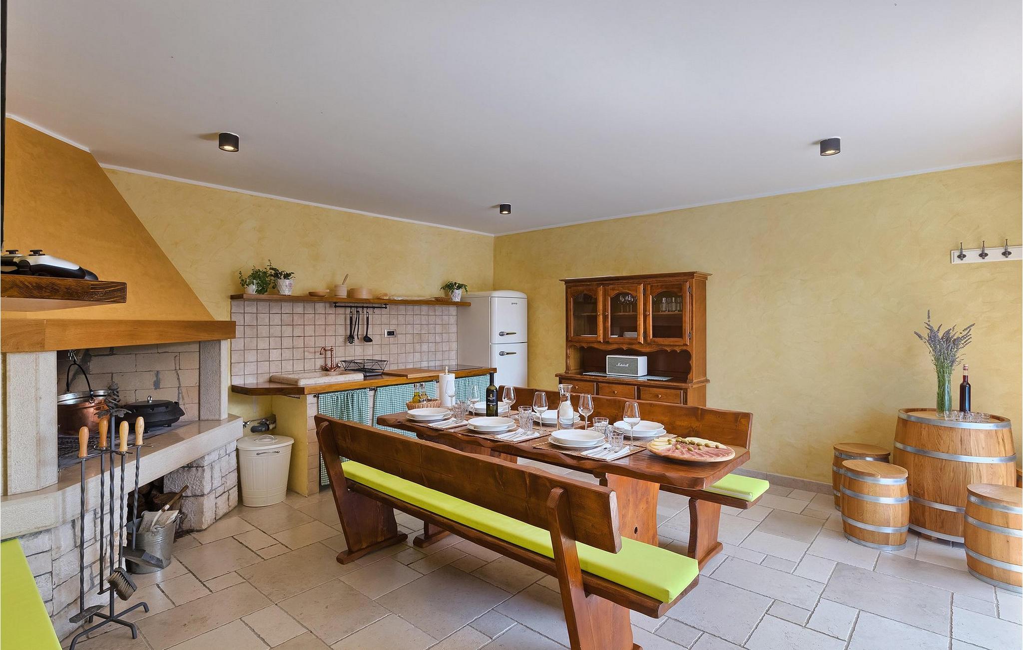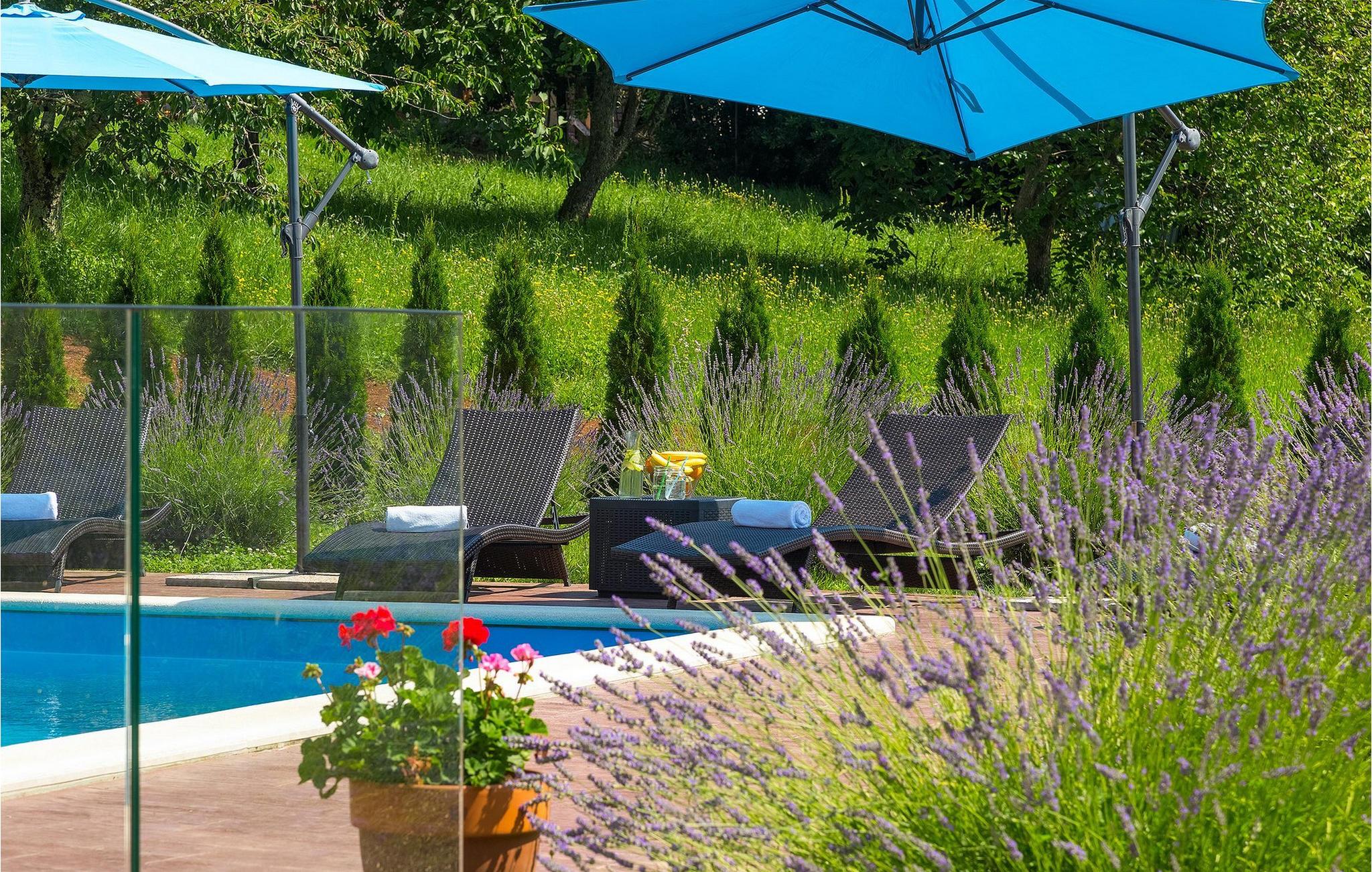Beliggende i hjertet af det centrale Istria midt i de skovklædte bakker over den magiske Mirna-dal giver den smukke Villa Brazzana et perfekt sted at nyde at nyde den autentiske lokale atmosfære og nyde det traditionelle køkken. Dets moderne design smelter harmonisk ind i de naturlige omgivelser og fanger fantastiske udsigter fra alle vinkler. Villaen er fordelt på tre plan. Stueetagen har en åben stue og spisestue med hyggelige sofaer og lænestole omkring en smuk pejs. Her er også et elegant køkken med en kogeø samt et ensuite soveværelse med dobbeltseng, der begge fører direkte ud til den indbydende terrasse med en smart lounge og al fresco spiseplads. Der er yderligere to soveværelser med dobbeltsenge med deres egne badeværelser på øverste niveau, hvoraf det ene åbner ud til en privat balkon med en spektakulær udsigt at vågne op til hver morgen. Den nederste etage byder på en taverna med åben pejs og spisebord samt et spillelokale, mini-motionscenter og et ekstra badeværelse. De store glasvægge fører herfra ud til den smukke poolterrasse igen med en fantastisk udsigt over det omkringliggende landskab. Her finder du en muret grill, hvor du kan tilberede dine egne versioner af regionens specialiteter i den smukke, rummelige have. Uanset om du er her for at sightsee, nyde det lokale køkken og kultur eller bare slappe af med familie og venner, lader Villa Brazzana intet tilbage at ønske. Den luksuriøse Villa Brazzana ligger i den søvnige landsby Pracana lige uden for Buzet i det centrale Istrien. Det centrale Istrien er kendt for et landskab af små, maleriske middelalderbyer og smukt bølgende landskab. Den gamle historiske kerne af Buzet ligger på en bakketop over den frugtbare dal af den længste flod i Istrien - Mirna. I dag er Buzet almindeligt kendt som 'Trøflernes by', da skovene langs Mirna-floden er særligt rige på denne guddommelige svamp. Tilbyder en blanding af lækker mad, udsøgte Malvasia- og Teran-sorter, rig kulturel og historisk arv og naturlig skønhed er denne fængslende region en perfekt destination for en autentisk oplevelse af det traditionelle Istrien.