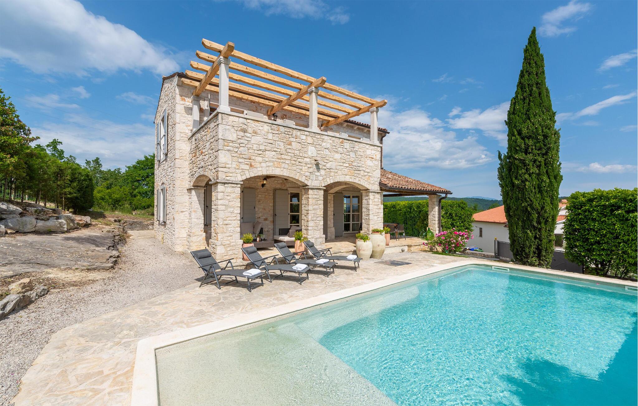 I det grønne hjerte af Istrien finder I dette smukke feriehus i traditionel stenhusstil.