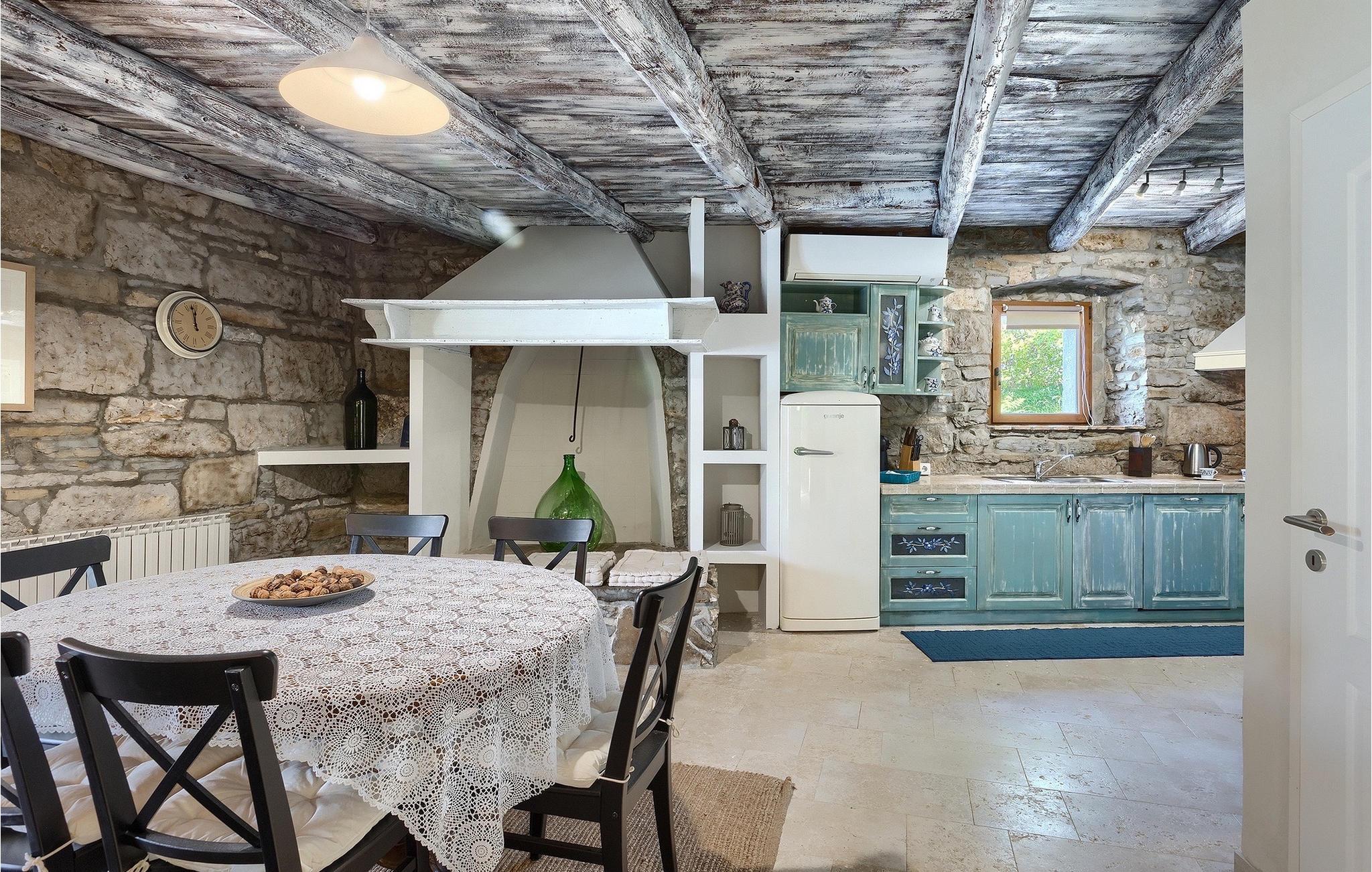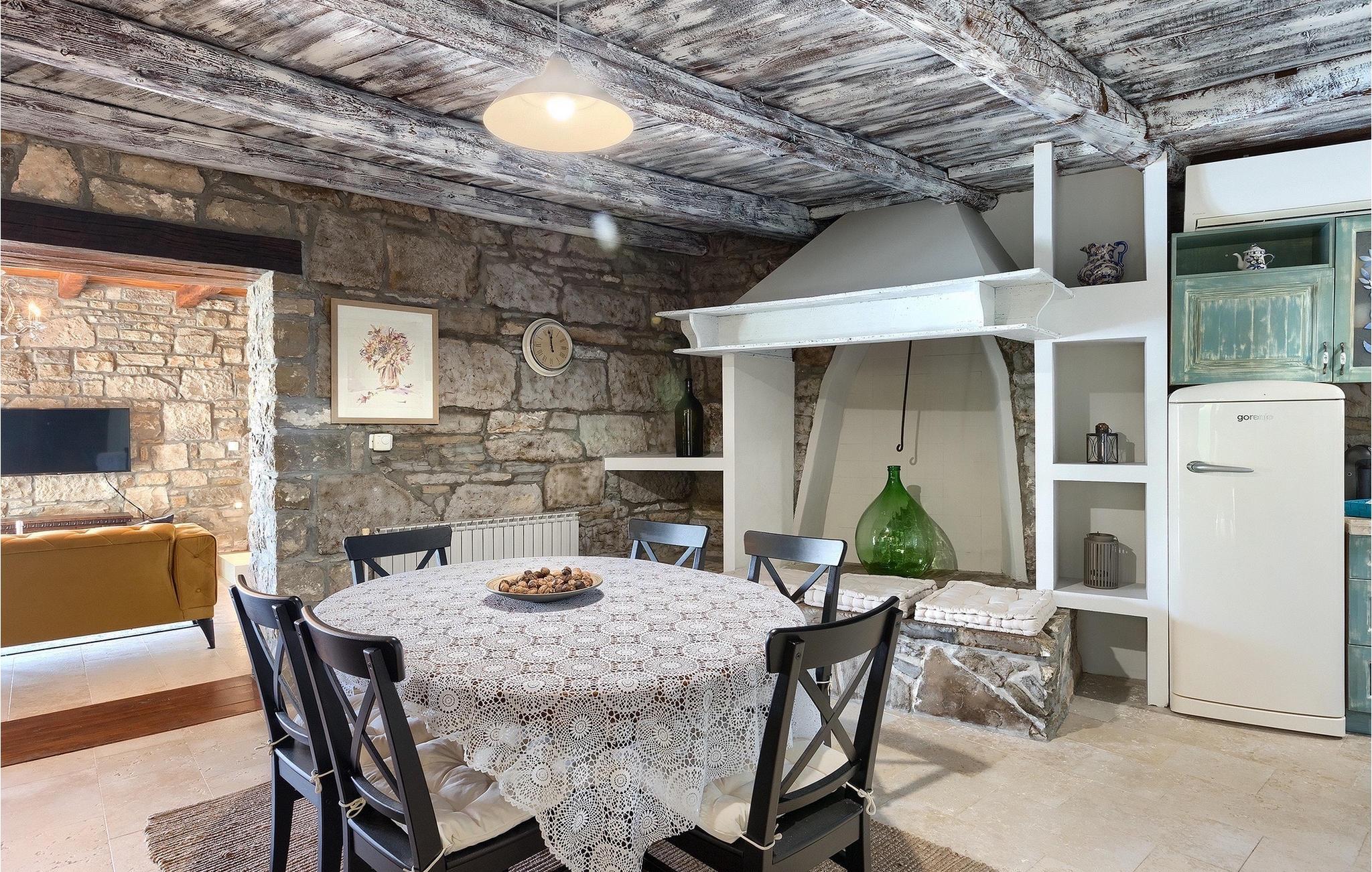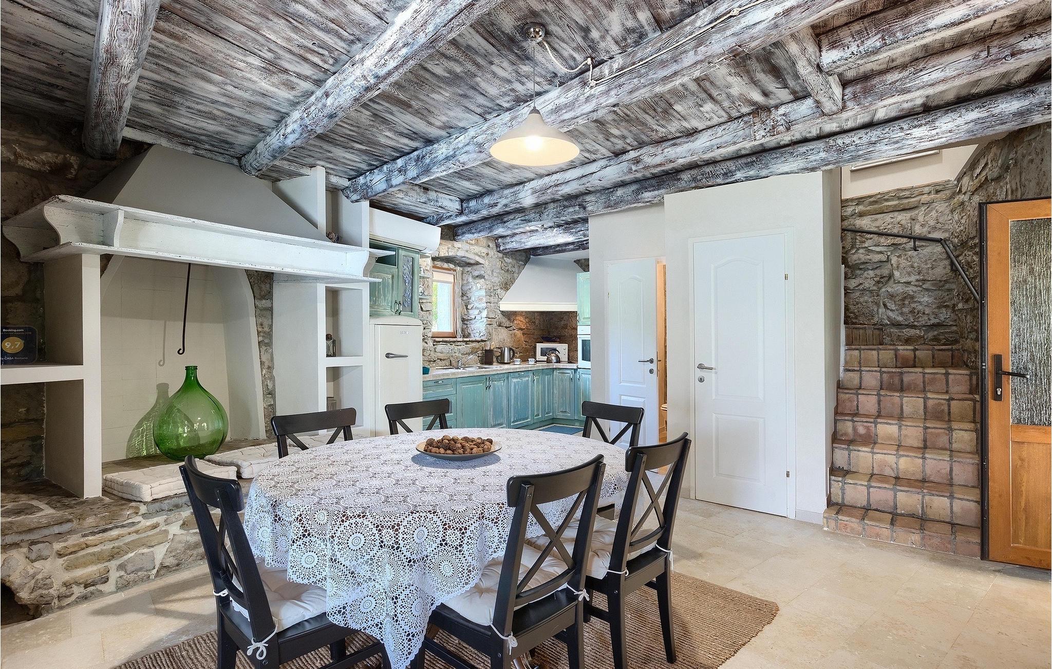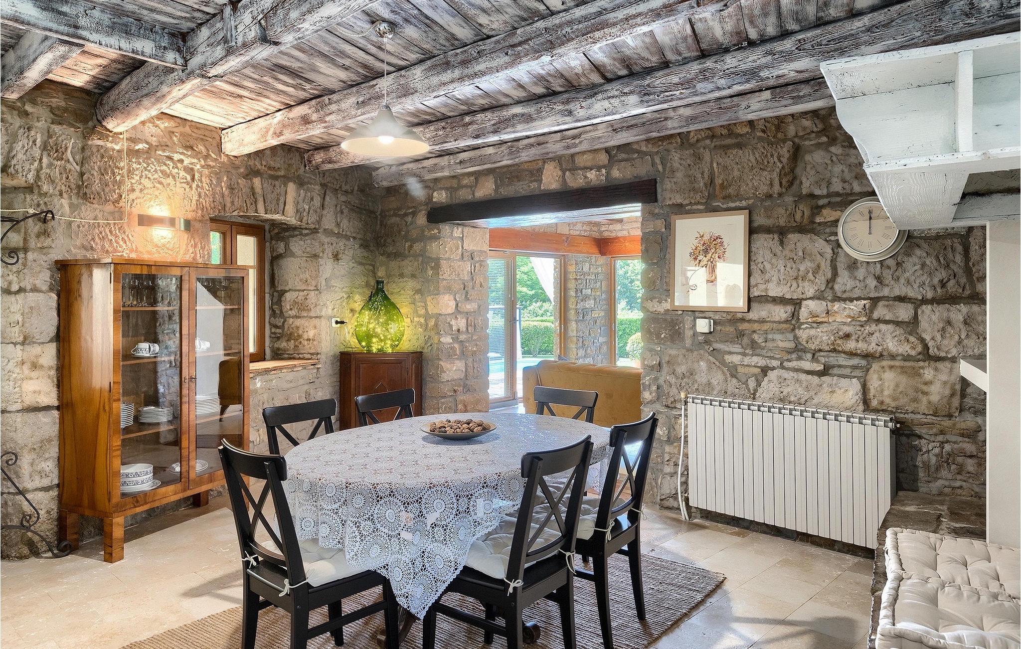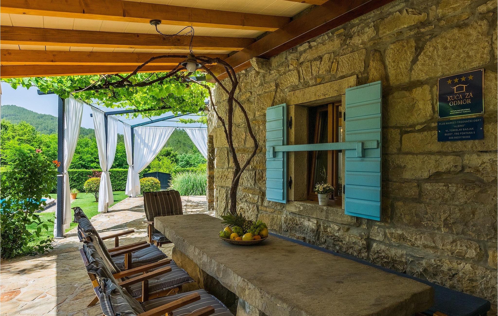 Denne stenvilla ligger i den romantiske middelalderby Buzet. Alt er indrettet i en meget varm stil, der vil give dig en følelse af hjem. Villa Romano breder sig over 100m2 og kan rumme op til 5 personer. Det åbne rum i stueetagen er meget lyst og luftigt. Den består af et fuldt udstyret køkken, spisestue og stue, som er oversvømmet med dagslys. Trappen fører til 1. sal, hvor du kan finde to smukt indrettede soveværelser med ensuite badeværelser. Hvert soveværelse har en dobbeltseng og et af dem en ekstra enkeltseng. Den rustikke charme løber fra soveværelserne til ydersiden af villaen. Villaen har en 24m2 stor privat pool, hvor du kan forfriske dig på varme sommerdage eller bare nyde solen på terrassen. I den omhyggeligt plejede have er der en grill til rådighed til at tilberede lækre måltider, som du kan nyde med din familie og venner. Denne ejendom er det perfekte valg for familier, der ønsker at bruge deres tid på at slappe af i deres egen private villa eller bruge deres tid aktivt, mens de opdager Istriens skjulte perler. Villaen er beliggende lige uden for den antikke by Buzet. Buzet ligger i den nordlige del af Istrien nær grænsen til Slovenien. Dens historiske kerne, der stammer fra middelalderen, ligger på en bakketop over en frugtbar dal af den længste flod i Istrien - Mirna. I dag er Buzet almindeligt kendt som 'trøflernes by', da skovene langs Mirna-floden er særligt rige på denne guddommelige knold. Ifølge nogle synspunkter er den hvide trøffel i Istrien lige så god som den mest berømte hvide trøffel fra den italienske region Alba. Til ære for denne trøffel arrangeres hvert år Trøffeldage i september og oktober. Den anden weekend i september finder der også en stor folkefest i Buzet sted med en særlig attraktion – en kæmpe omelet (almindeligvis kendt som 'fritada' eller 'fritaja') med over 2.000 æg og 10 kg trøfler tilberedes i en kæmpe pande. Denne begivenhed markerer officielt begyndelsen på Trøffeldage i Istrien. I Buzets omgivelser er der nogle meget velbevarede middelalderbyer. Bil anbefales.