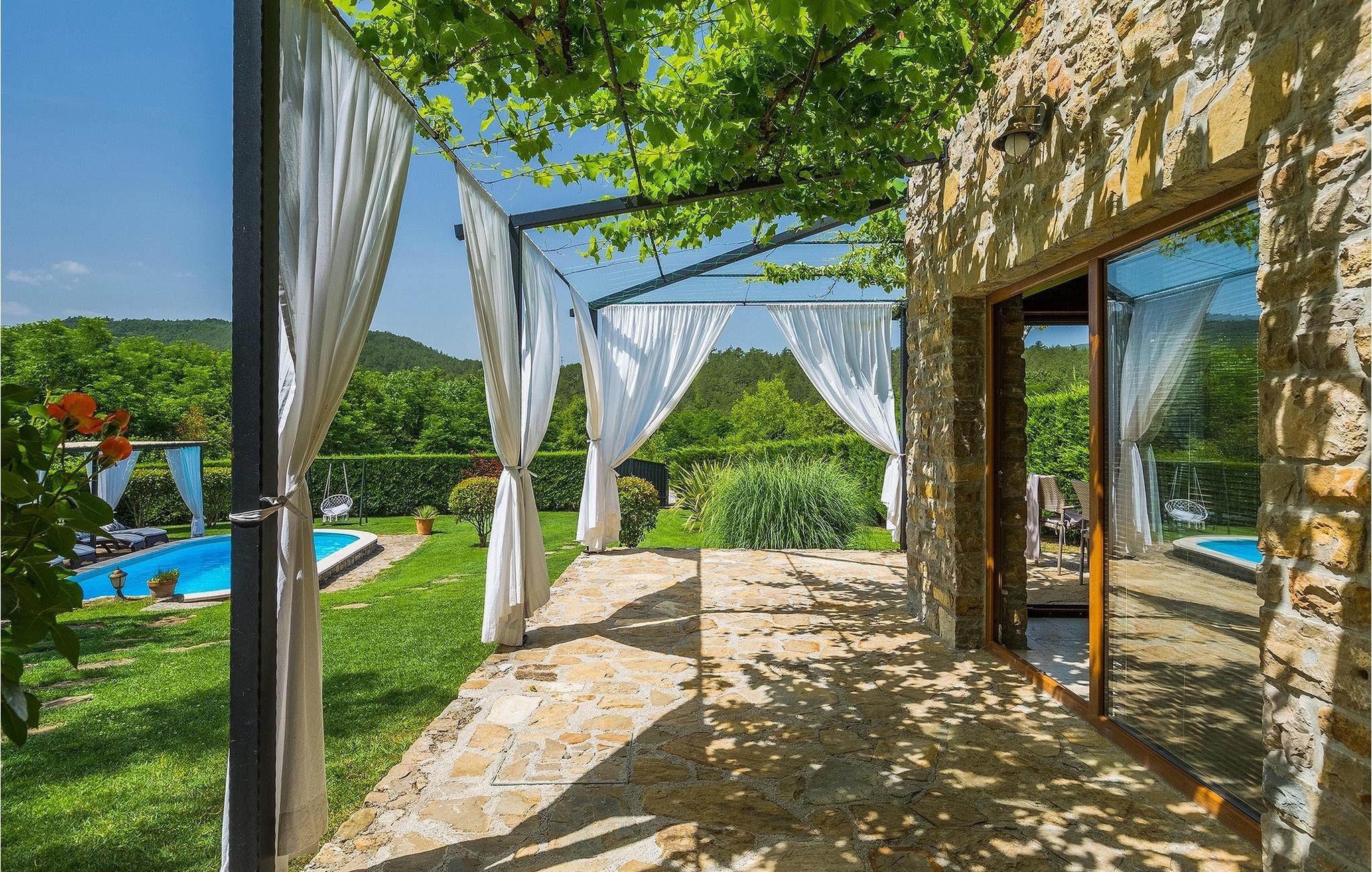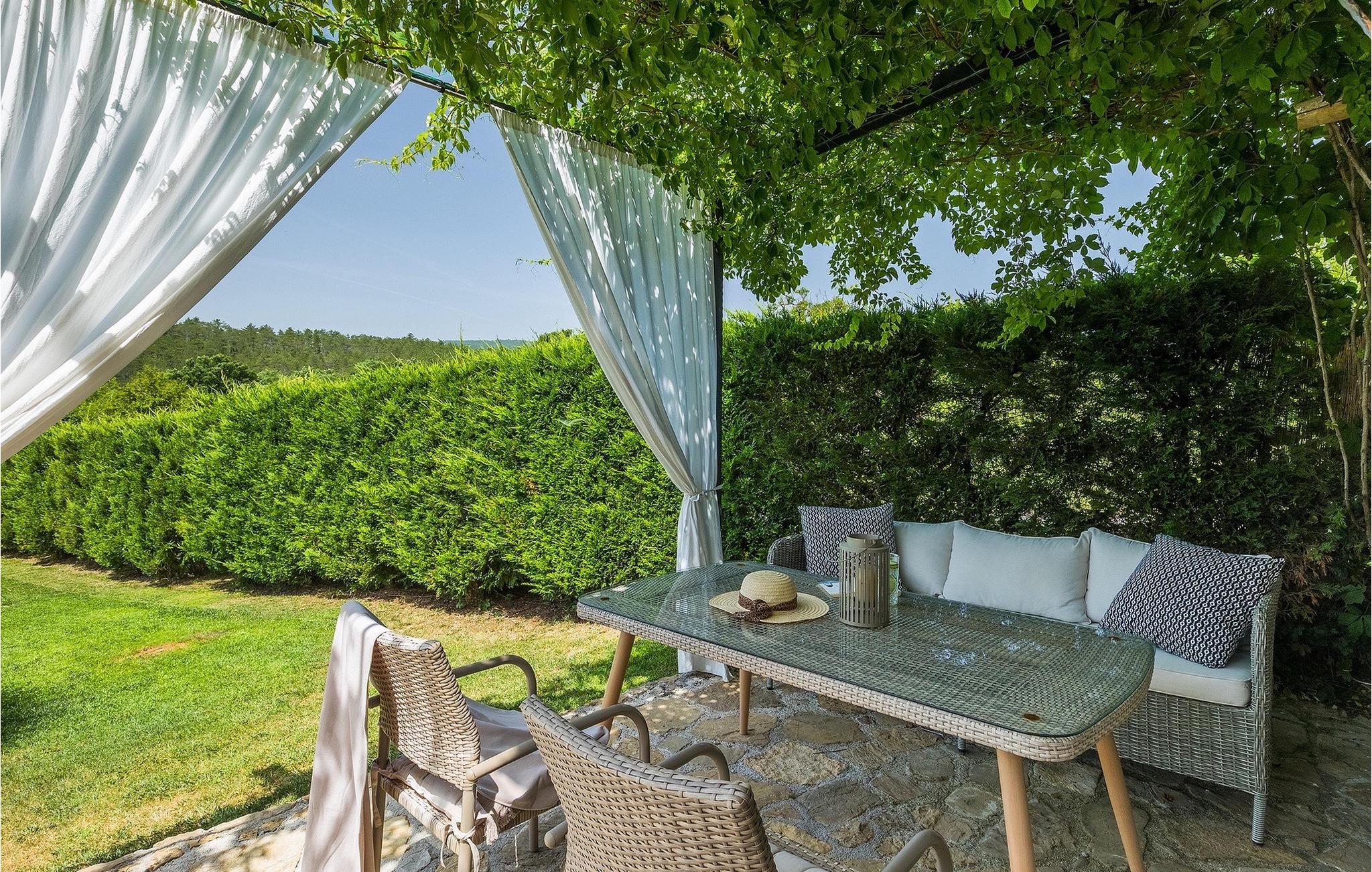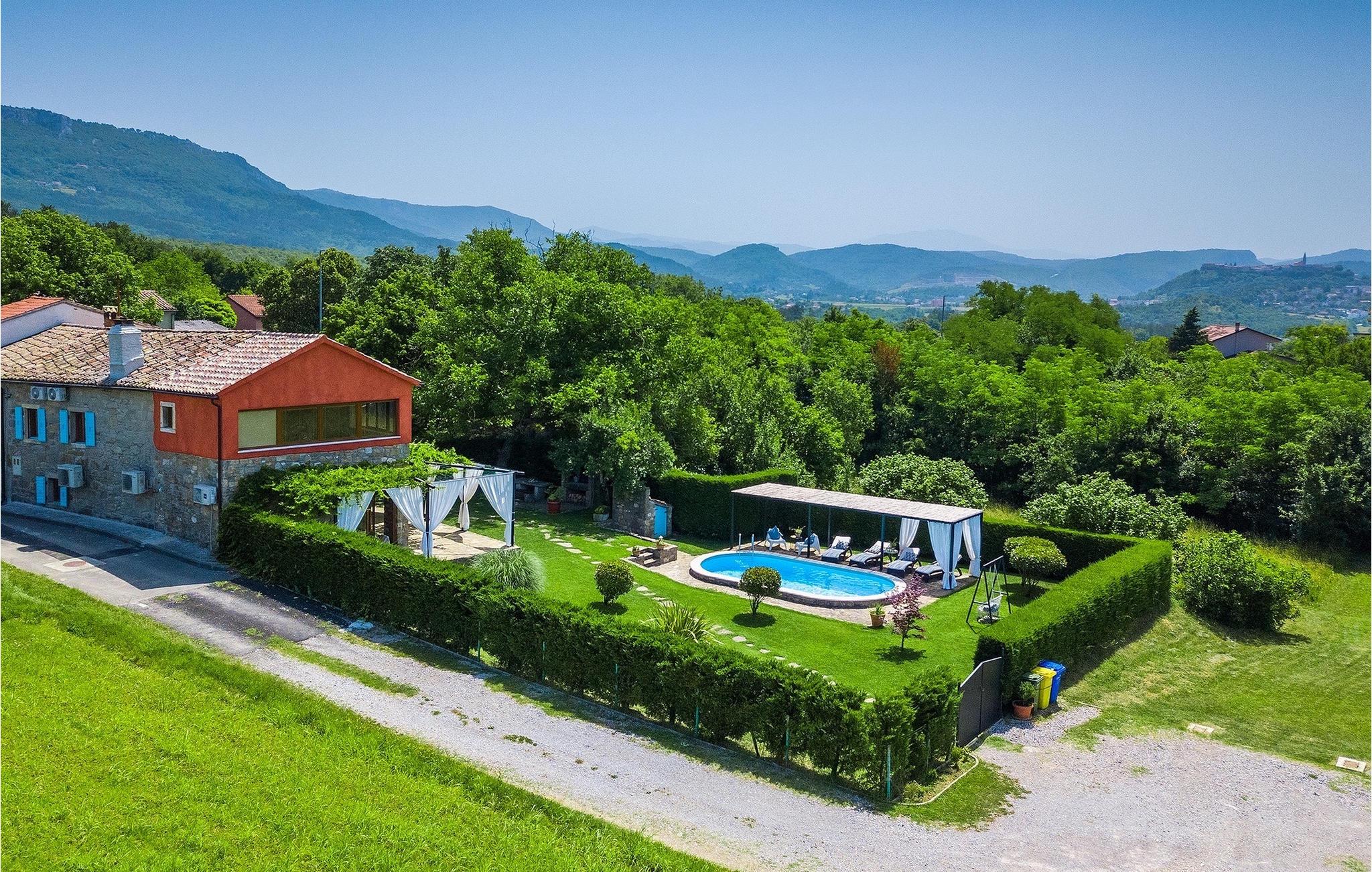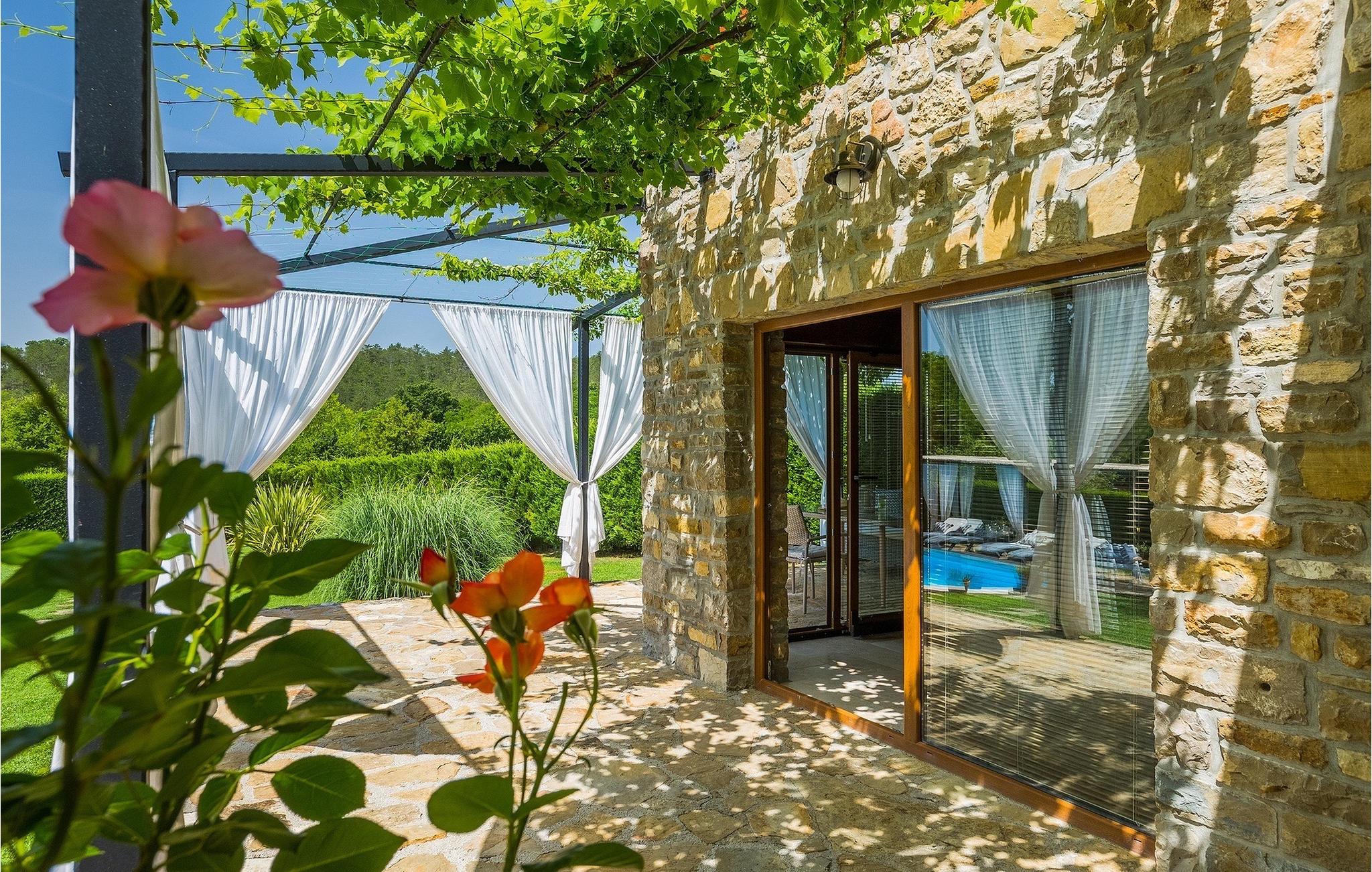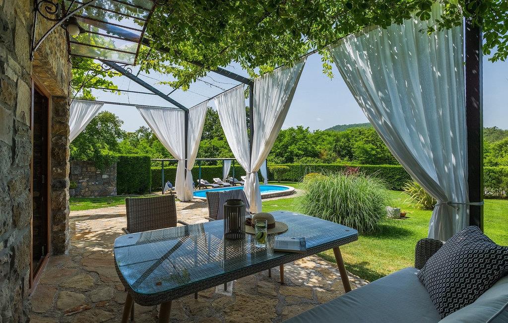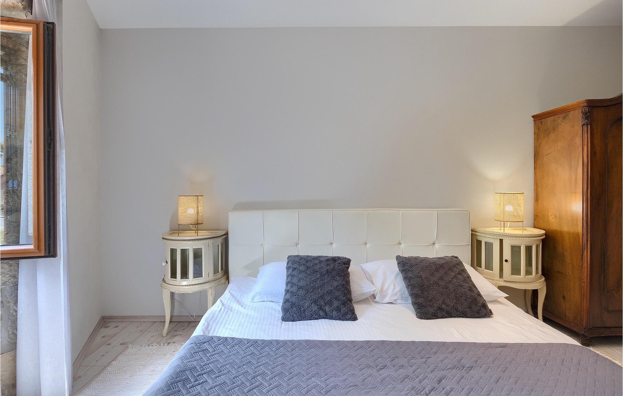 Denne stenvilla ligger i den romantiske middelalderby Buzet. Alt er indrettet i en meget varm stil, der vil give dig en følelse af hjem. Villa Romano breder sig over 100m2 og kan rumme op til 5 personer. Det åbne rum i stueetagen er meget lyst og luftigt. Den består af et fuldt udstyret køkken, spisestue og stue, som er oversvømmet med dagslys. Trappen fører til 1. sal, hvor du kan finde to smukt indrettede soveværelser med ensuite badeværelser. Hvert soveværelse har en dobbeltseng og et af dem en ekstra enkeltseng. Den rustikke charme løber fra soveværelserne til ydersiden af villaen. Villaen har en 24m2 stor privat pool, hvor du kan forfriske dig på varme sommerdage eller bare nyde solen på terrassen. I den omhyggeligt plejede have er der en grill til rådighed til at tilberede lækre måltider, som du kan nyde med din familie og venner. Denne ejendom er det perfekte valg for familier, der ønsker at bruge deres tid på at slappe af i deres egen private villa eller bruge deres tid aktivt, mens de opdager Istriens skjulte perler. Villaen er beliggende lige uden for den antikke by Buzet. Buzet ligger i den nordlige del af Istrien nær grænsen til Slovenien. Dens historiske kerne, der stammer fra middelalderen, ligger på en bakketop over en frugtbar dal af den længste flod i Istrien - Mirna. I dag er Buzet almindeligt kendt som 'trøflernes by', da skovene langs Mirna-floden er særligt rige på denne guddommelige knold. Ifølge nogle synspunkter er den hvide trøffel i Istrien lige så god som den mest berømte hvide trøffel fra den italienske region Alba. Til ære for denne trøffel arrangeres hvert år Trøffeldage i september og oktober. Den anden weekend i september finder der også en stor folkefest i Buzet sted med en særlig attraktion – en kæmpe omelet (almindeligvis kendt som 'fritada' eller 'fritaja') med over 2.000 æg og 10 kg trøfler tilberedes i en kæmpe pande. Denne begivenhed markerer officielt begyndelsen på Trøffeldage i Istrien. I Buzets omgivelser er der nogle meget velbevarede middelalderbyer. Bil anbefales.