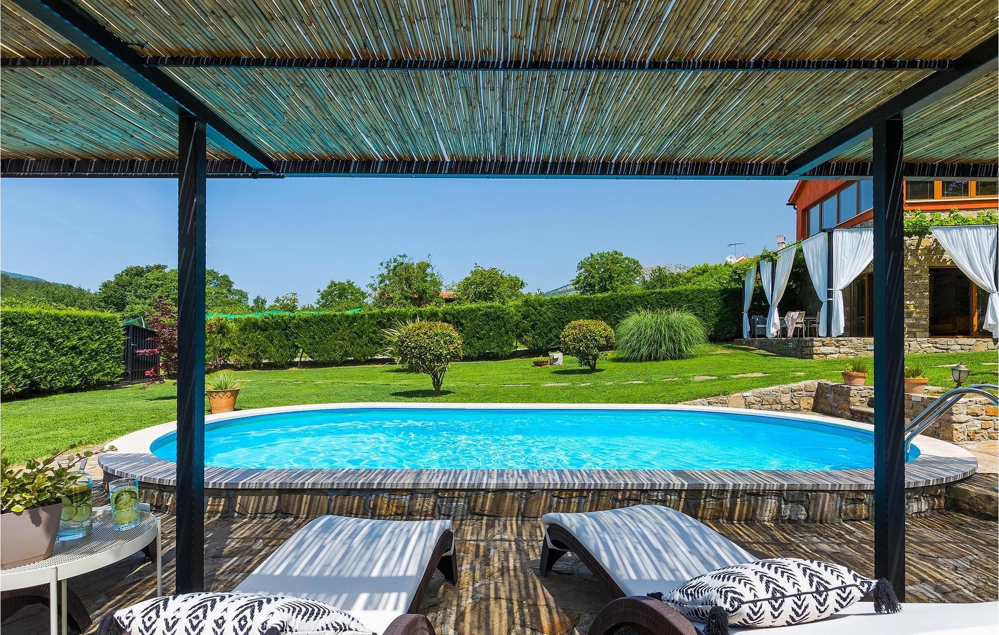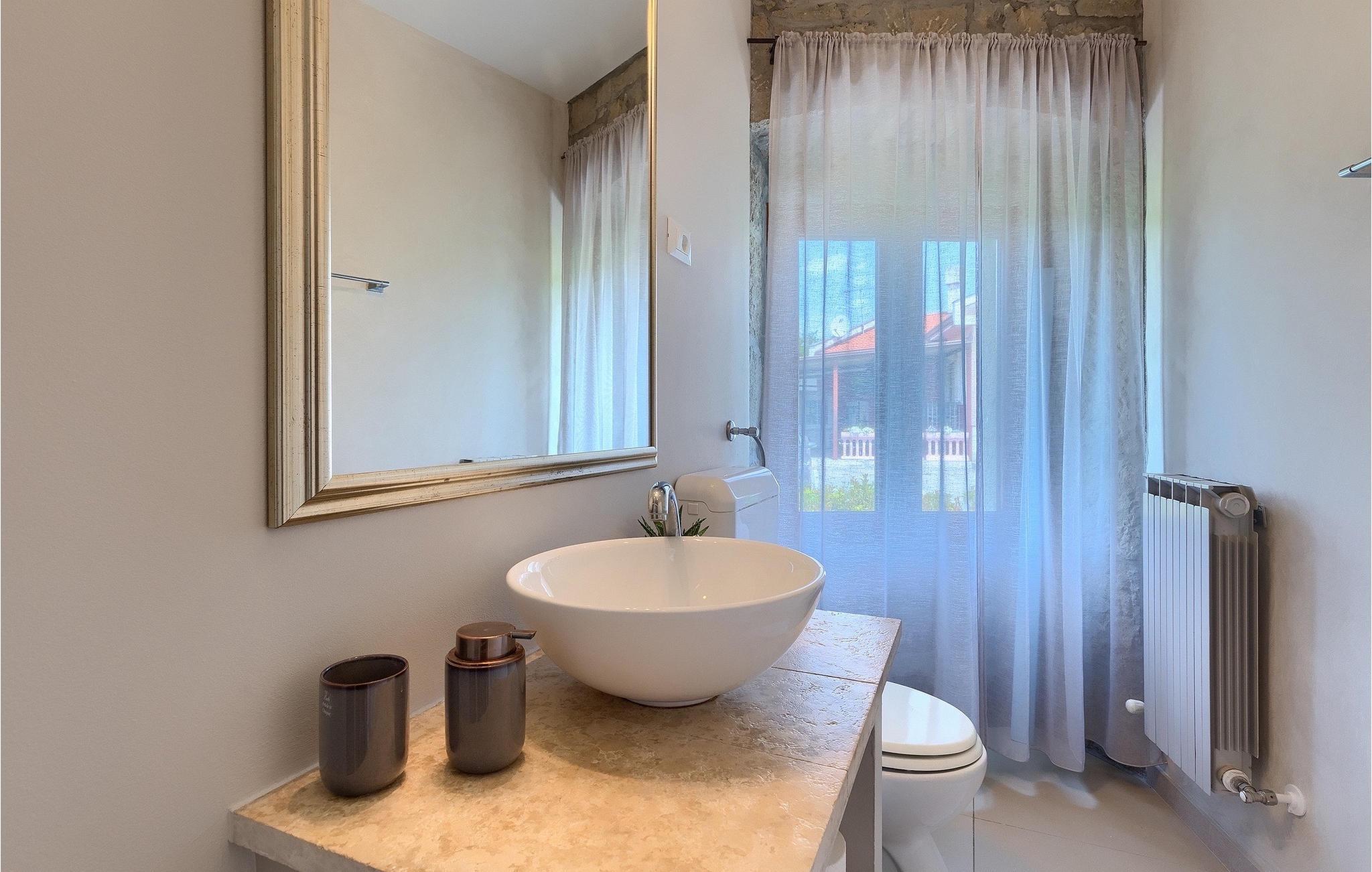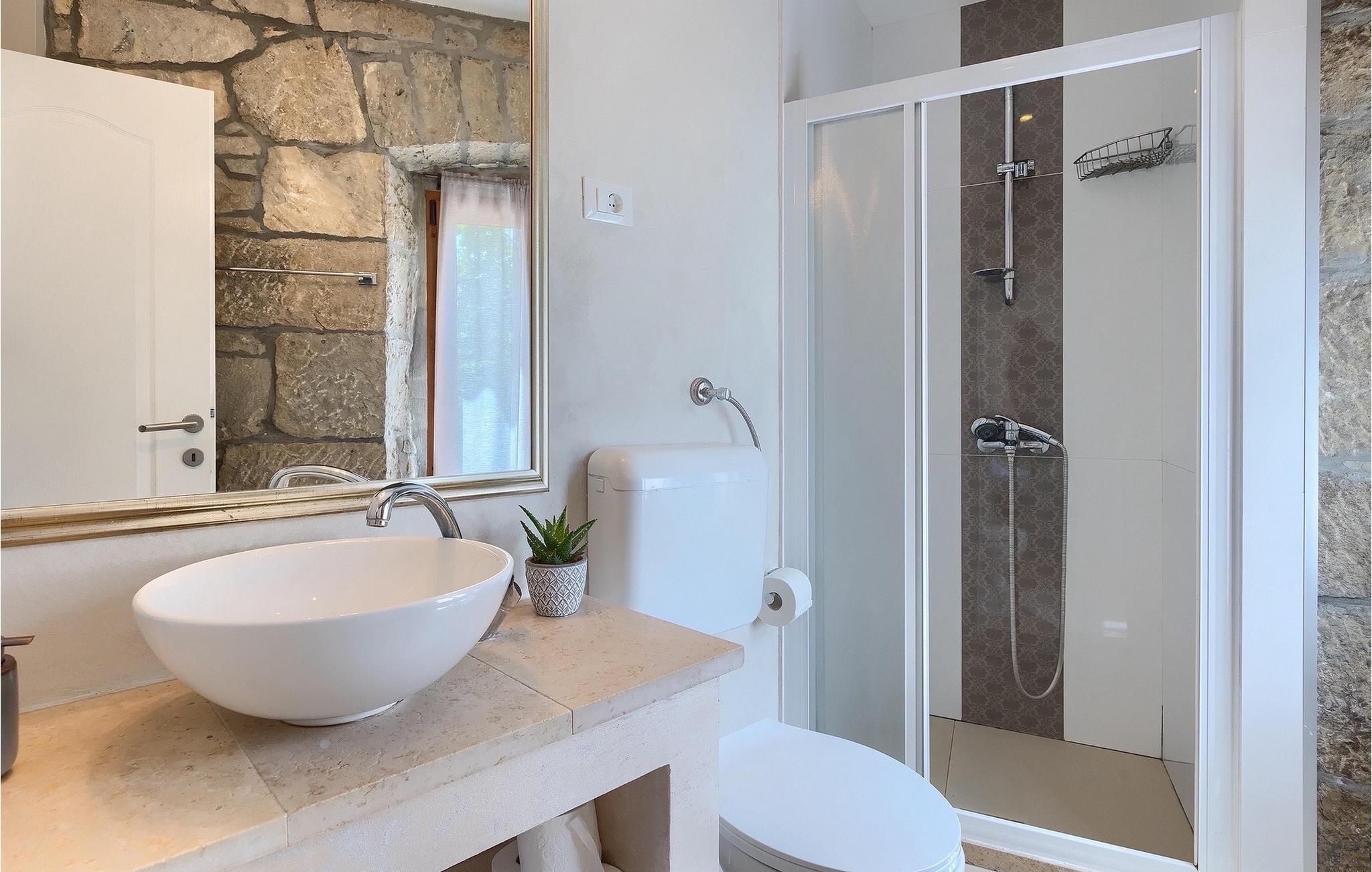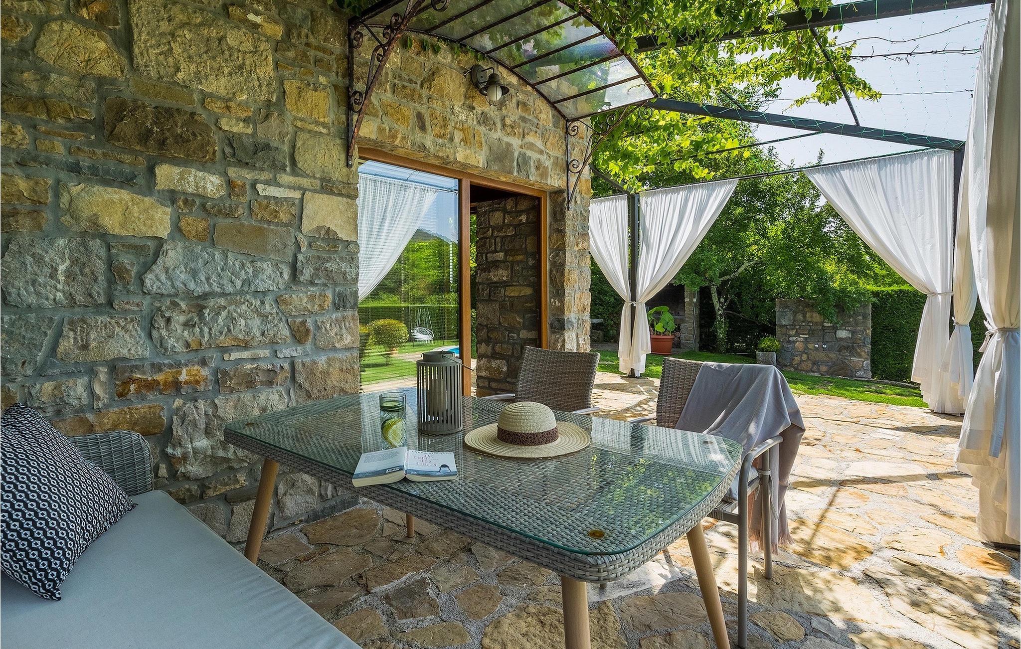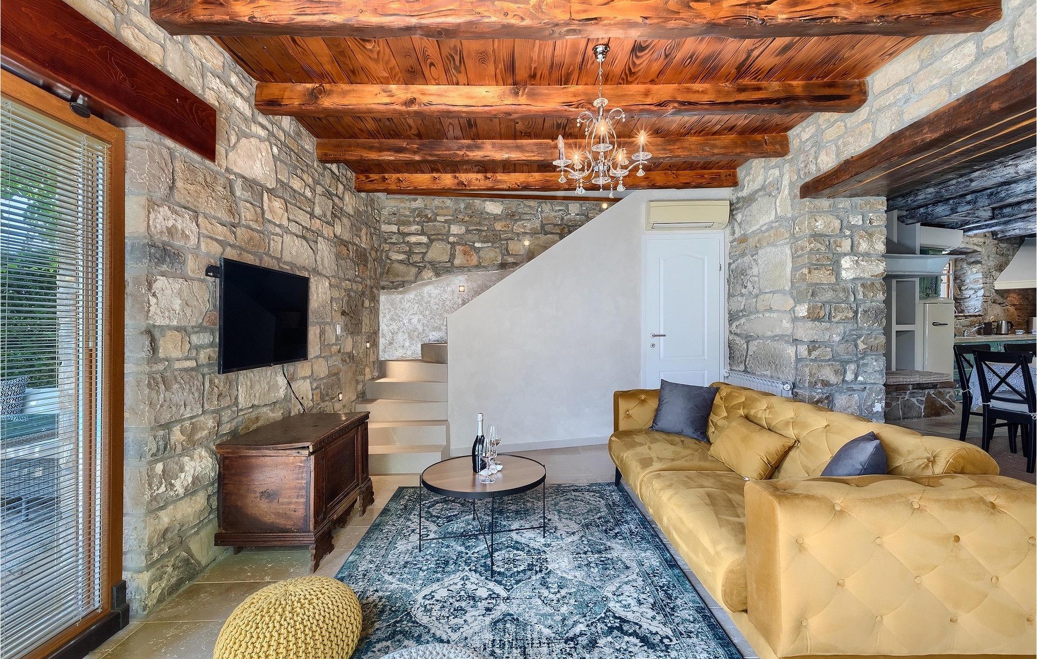 Denne stenvilla ligger i den romantiske middelalderby Buzet. Alt er indrettet i en meget varm stil, der vil give dig en følelse af hjem. Villa Romano breder sig over 100m2 og kan rumme op til 5 personer. Det åbne rum i stueetagen er meget lyst og luftigt. Den består af et fuldt udstyret køkken, spisestue og stue, som er oversvømmet med dagslys. Trappen fører til 1. sal, hvor du kan finde to smukt indrettede soveværelser med ensuite badeværelser. Hvert soveværelse har en dobbeltseng og et af dem en ekstra enkeltseng. Den rustikke charme løber fra soveværelserne til ydersiden af villaen. Villaen har en 24m2 stor privat pool, hvor du kan forfriske dig på varme sommerdage eller bare nyde solen på terrassen. I den omhyggeligt plejede have er der en grill til rådighed til at tilberede lækre måltider, som du kan nyde med din familie og venner. Denne ejendom er det perfekte valg for familier, der ønsker at bruge deres tid på at slappe af i deres egen private villa eller bruge deres tid aktivt, mens de opdager Istriens skjulte perler. Villaen er beliggende lige uden for den antikke by Buzet. Buzet ligger i den nordlige del af Istrien nær grænsen til Slovenien. Dens historiske kerne, der stammer fra middelalderen, ligger på en bakketop over en frugtbar dal af den længste flod i Istrien - Mirna. I dag er Buzet almindeligt kendt som 'trøflernes by', da skovene langs Mirna-floden er særligt rige på denne guddommelige knold. Ifølge nogle synspunkter er den hvide trøffel i Istrien lige så god som den mest berømte hvide trøffel fra den italienske region Alba. Til ære for denne trøffel arrangeres hvert år Trøffeldage i september og oktober. Den anden weekend i september finder der også en stor folkefest i Buzet sted med en særlig attraktion – en kæmpe omelet (almindeligvis kendt som 'fritada' eller 'fritaja') med over 2.000 æg og 10 kg trøfler tilberedes i en kæmpe pande. Denne begivenhed markerer officielt begyndelsen på Trøffeldage i Istrien. I Buzets omgivelser er der nogle meget velbevarede middelalderbyer. Bil anbefales.