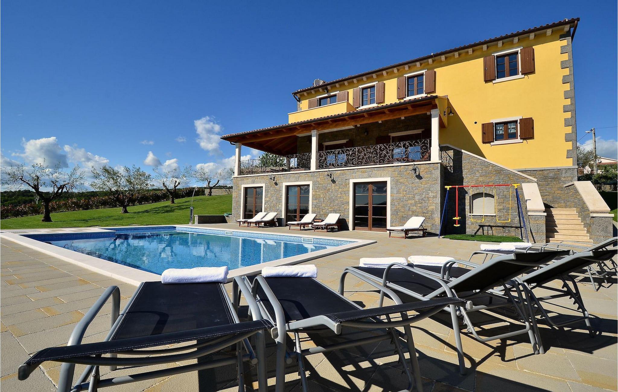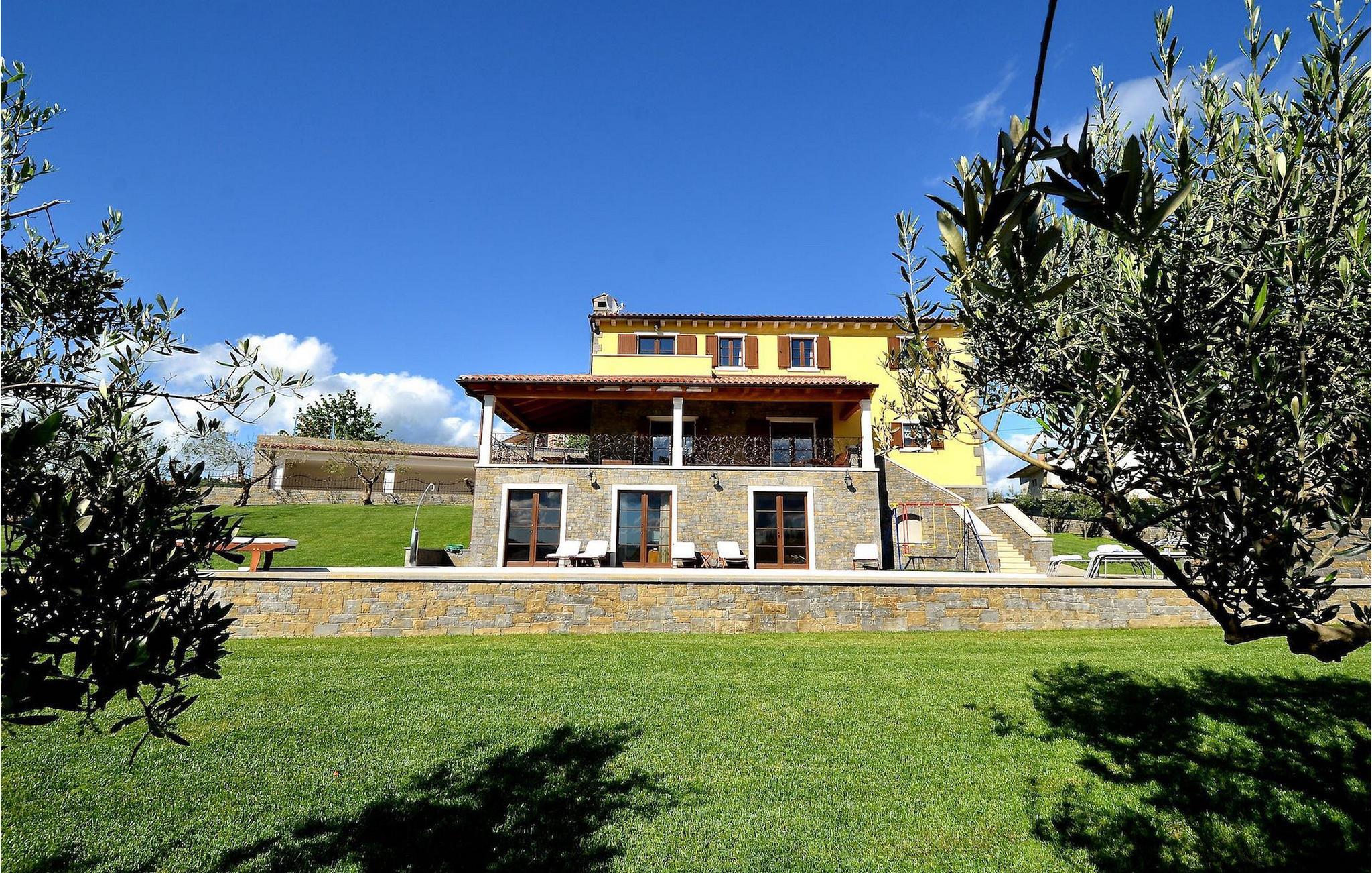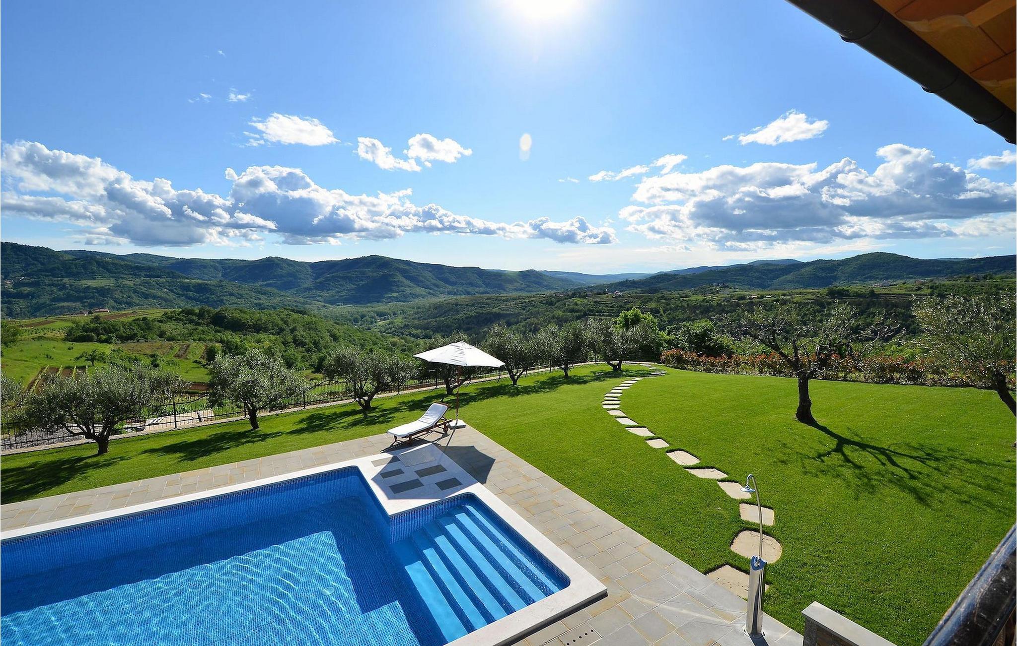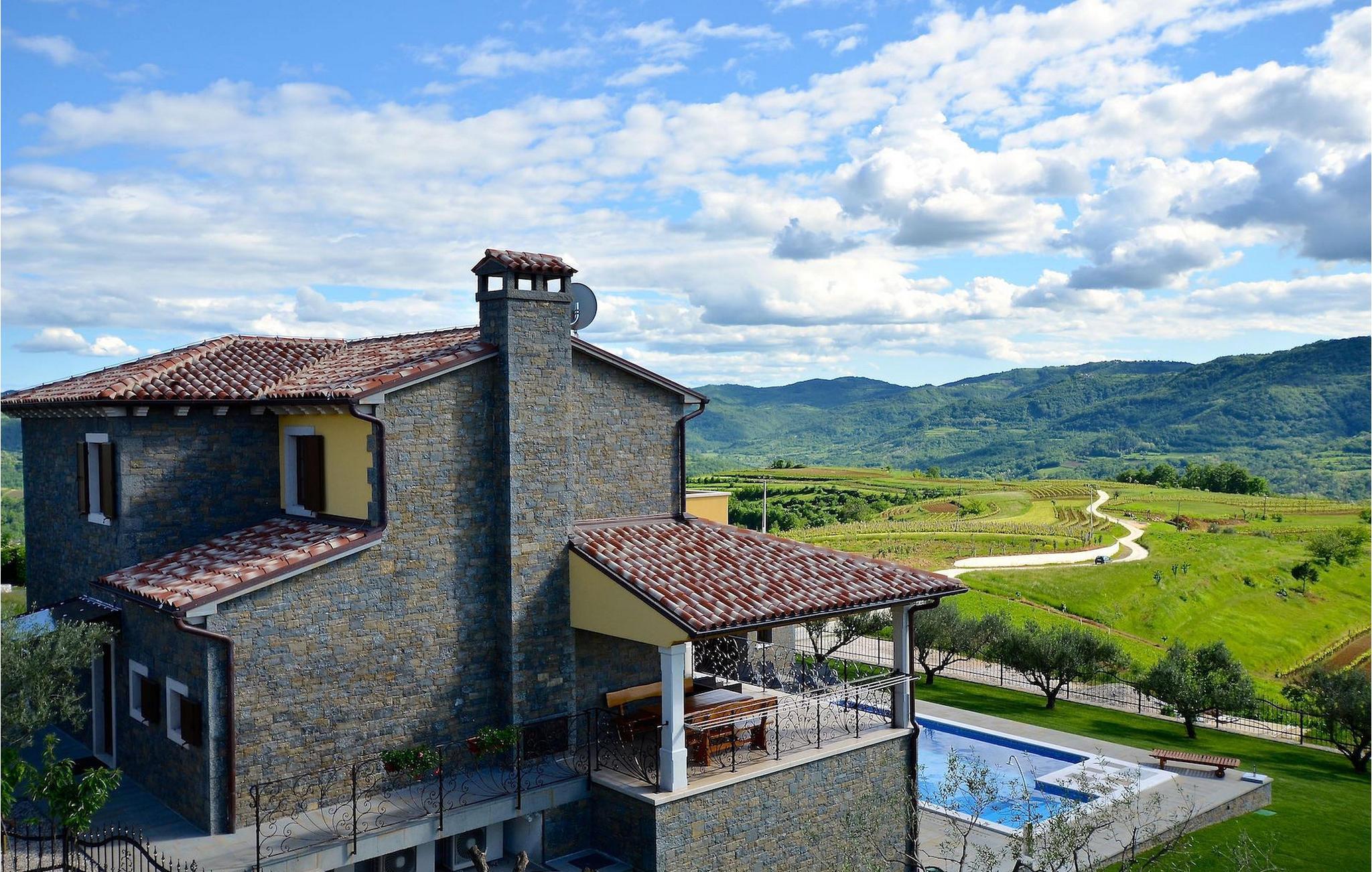 Den rummelige stue i denne villa er et ideelt område at samles, da det omfatter et stort træbord med plads til tolv og en traditionel istrisk pejs. Mens åbningen til venstre fører ind i et køkken udstyret på en moderne måde, trækker den forreste dig ud på en terrasse med udsigt over det hvide trøffelhabitat, den begravede sø Butoniga og flere maleriske, historiske små byer. Lejen inkluderer en gratis trøffelsmagning arrangeret af ejerne. På samme etage er der et rummeligt to-personers soveværelse med eget bad med udgang til terrassen. Villaen tilbyder lokale kvalitetsprodukter lavet af ejerne, såsom istriske pølser med trøfler, trøffelost, trøffelhonning. Anden sal er reserveret til tre soveværelser. Hvert soveværelse har eget badeværelse med to håndvaske og bruser. Stueetagen er reserveret til rekreation, tidsfordriv og afslapning. Intet er overladt til tilfældighederne med alle generationer taget hånd om. For de mindste er der et børnehjørne, mens der for de ældre er plads til afslapning – et wellness-område med en fire personers jacuzzi og en finsk sauna. Også på denne etage er der poolbord, bordfodbold og dartmaskine samt motionsområde med direkte adgang til poolen. Gæsterne har også et vaskeri til deres rådighed. Det femte og også det største soveværelse ligger i stueetagen, det har en dobbeltseng og 2 enkeltsenge, et moderne badeværelse og direkte adgang til haven. Hvis du har brug for at køle af i de varme sommermåneder, er der en 50 m2 stor pool med hydromassagepumper. Du kan fange lidt sol i en af de tolv liggestole, og hvis du ønsker et mindre isoleret sted, vælg et af oliventræerne for at give dig lidt skygge. Mens du nyder udsigten over søen og de omkringliggende hundredeårsskove, kan din yngste hygge sig i sandkassen, på vippen eller gyngerne. I haven er der også et overdækket udekøkken med grill, gaskomfur, vask, køleskab og et tolv personers bord. Her kan gæsterne selv tilberede specialiteter fra Istrien eller stole på professionel vejledning. En mobil butik med basale dagligvarer kommer til landsbyen 3 gange om ugen. Villa Olea er beliggende i en lille og rolig landsby kaldet Paladini, beliggende på en unik høj position, der tilbyder perfekt privatliv og betagende udsigt til søen Butoniga og dens magiske omgivelser. Den større by er Buzet, der er almindeligt kendt som 'trøflernes by', da skovene langs Mirna-floden er særligt rige på dem. Beliggende på en bakke, blev det befæstet under det romerske styre, og den centrale plads med sognekirken for Jomfru Marias himmelfart er selve kernen i den gamle bydel. Mens du er her, så sørg for ikke at gå glip af et besøg på County Museum of Buzet og dets omgivelser. I Buzets omgivelser er der nogle meget velbevarede middelalderbyer.