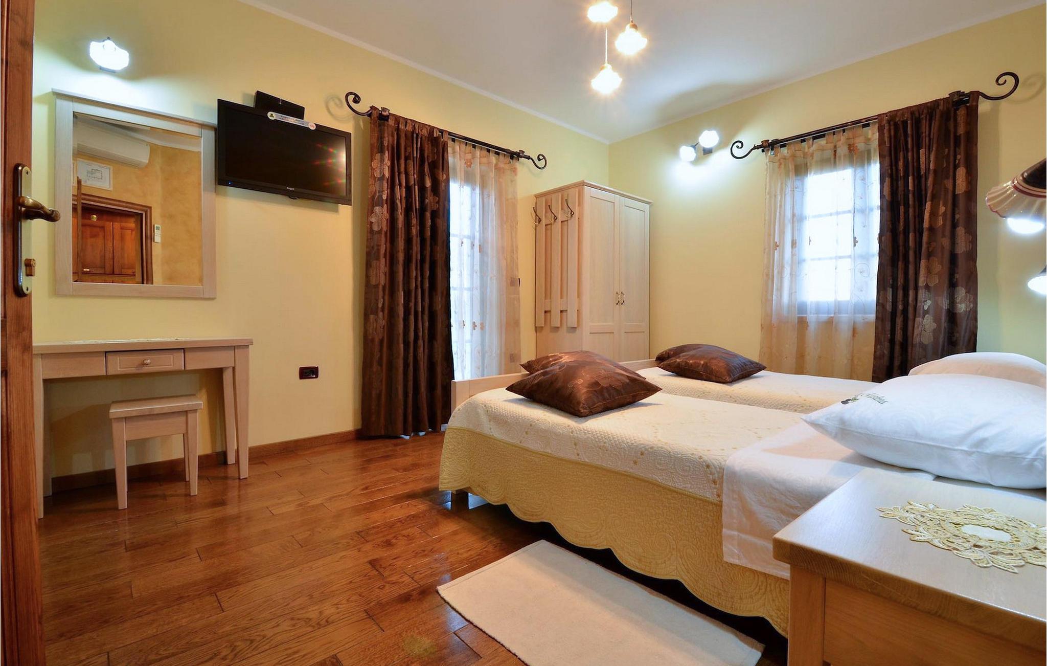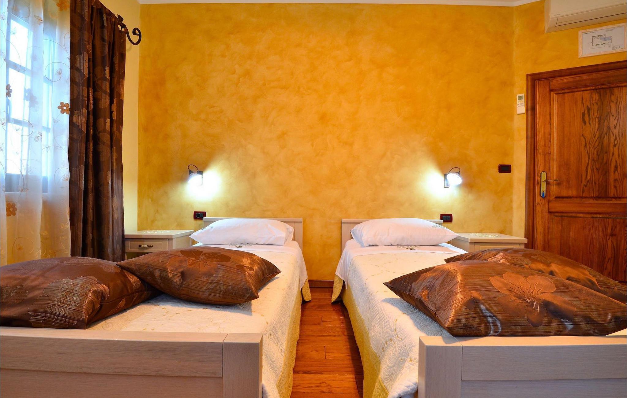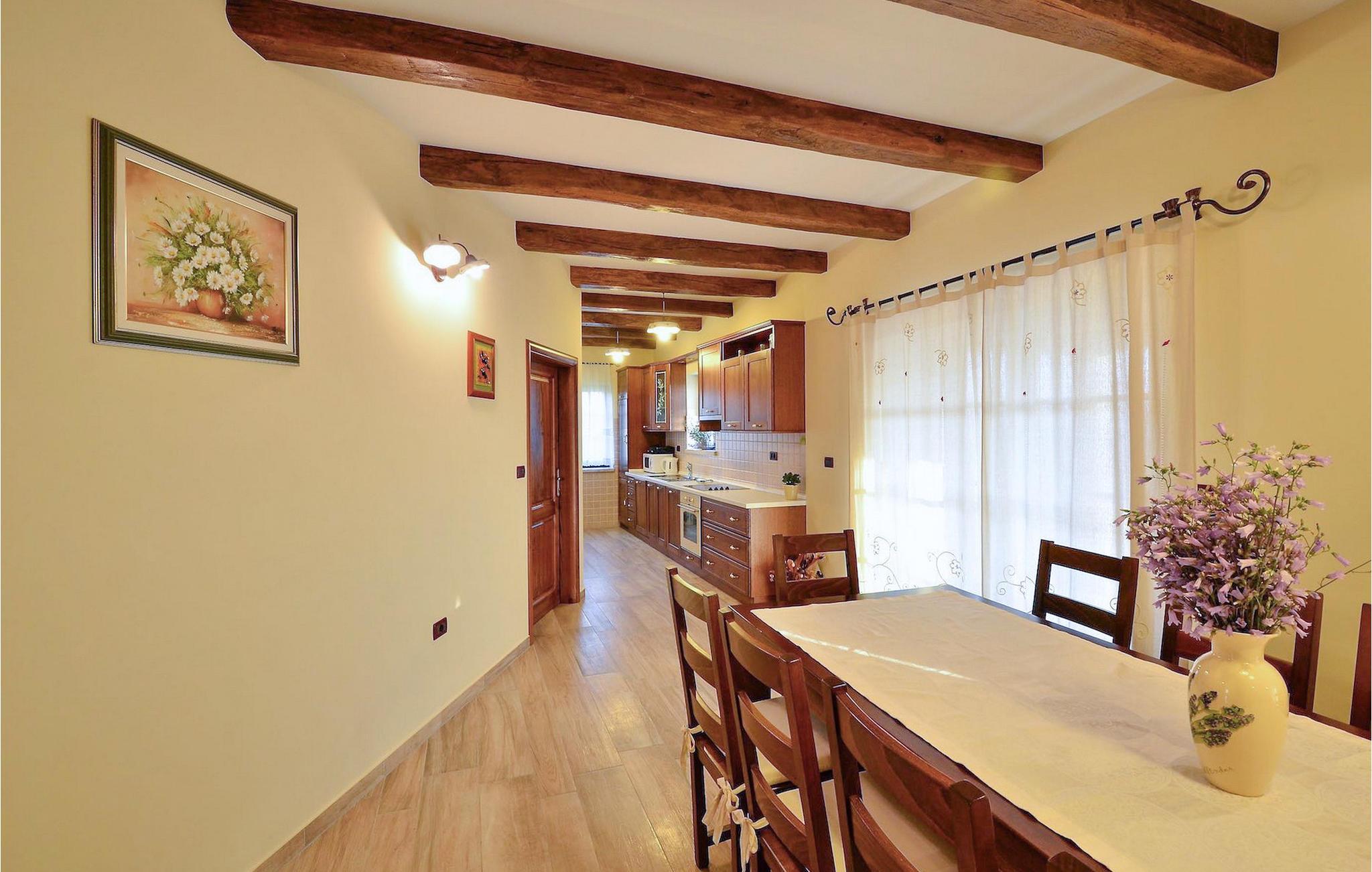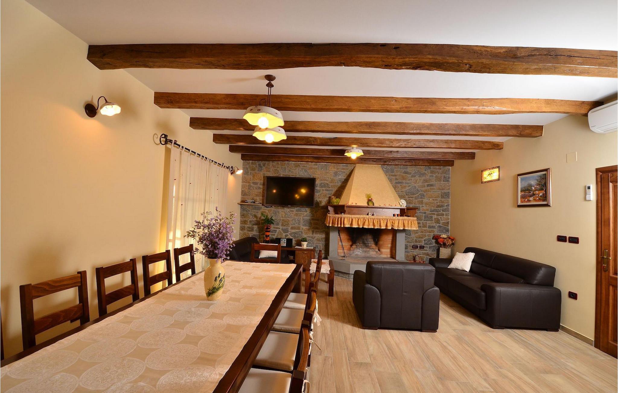 Den rummelige stue i denne villa er et ideelt område at samles, da det omfatter et stort træbord med plads til tolv og en traditionel istrisk pejs. Mens åbningen til venstre fører ind i et køkken udstyret på en moderne måde, trækker den forreste dig ud på en terrasse med udsigt over det hvide trøffelhabitat, den begravede sø Butoniga og flere maleriske, historiske små byer. Lejen inkluderer en gratis trøffelsmagning arrangeret af ejerne. På samme etage er der et rummeligt to-personers soveværelse med eget bad med udgang til terrassen. Villaen tilbyder lokale kvalitetsprodukter lavet af ejerne, såsom istriske pølser med trøfler, trøffelost, trøffelhonning. Anden sal er reserveret til tre soveværelser. Hvert soveværelse har eget badeværelse med to håndvaske og bruser. Stueetagen er reserveret til rekreation, tidsfordriv og afslapning. Intet er overladt til tilfældighederne med alle generationer taget hånd om. For de mindste er der et børnehjørne, mens der for de ældre er plads til afslapning – et wellness-område med en fire personers jacuzzi og en finsk sauna. Også på denne etage er der poolbord, bordfodbold og dartmaskine samt motionsområde med direkte adgang til poolen. Gæsterne har også et vaskeri til deres rådighed. Det femte og også det største soveværelse ligger i stueetagen, det har en dobbeltseng og 2 enkeltsenge, et moderne badeværelse og direkte adgang til haven. Hvis du har brug for at køle af i de varme sommermåneder, er der en 50 m2 stor pool med hydromassagepumper. Du kan fange lidt sol i en af de tolv liggestole, og hvis du ønsker et mindre isoleret sted, vælg et af oliventræerne for at give dig lidt skygge. Mens du nyder udsigten over søen og de omkringliggende hundredeårsskove, kan din yngste hygge sig i sandkassen, på vippen eller gyngerne. I haven er der også et overdækket udekøkken med grill, gaskomfur, vask, køleskab og et tolv personers bord. Her kan gæsterne selv tilberede specialiteter fra Istrien eller stole på professionel vejledning. En mobil butik med basale dagligvarer kommer til landsbyen 3 gange om ugen. Villa Olea er beliggende i en lille og rolig landsby kaldet Paladini, beliggende på en unik høj position, der tilbyder perfekt privatliv og betagende udsigt til søen Butoniga og dens magiske omgivelser. Den større by er Buzet, der er almindeligt kendt som 'trøflernes by', da skovene langs Mirna-floden er særligt rige på dem. Beliggende på en bakke, blev det befæstet under det romerske styre, og den centrale plads med sognekirken for Jomfru Marias himmelfart er selve kernen i den gamle bydel. Mens du er her, så sørg for ikke at gå glip af et besøg på County Museum of Buzet og dets omgivelser. I Buzets omgivelser er der nogle meget velbevarede middelalderbyer.