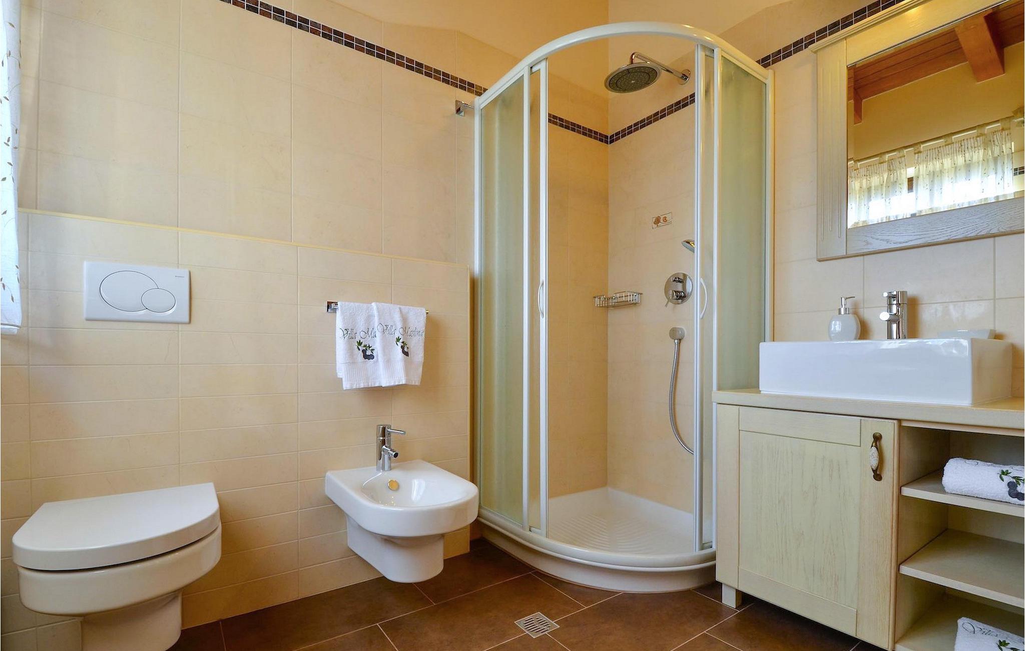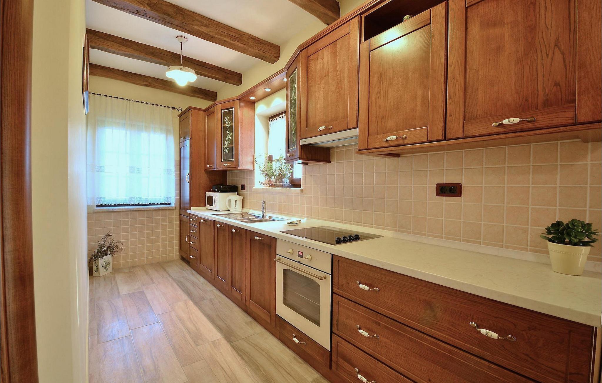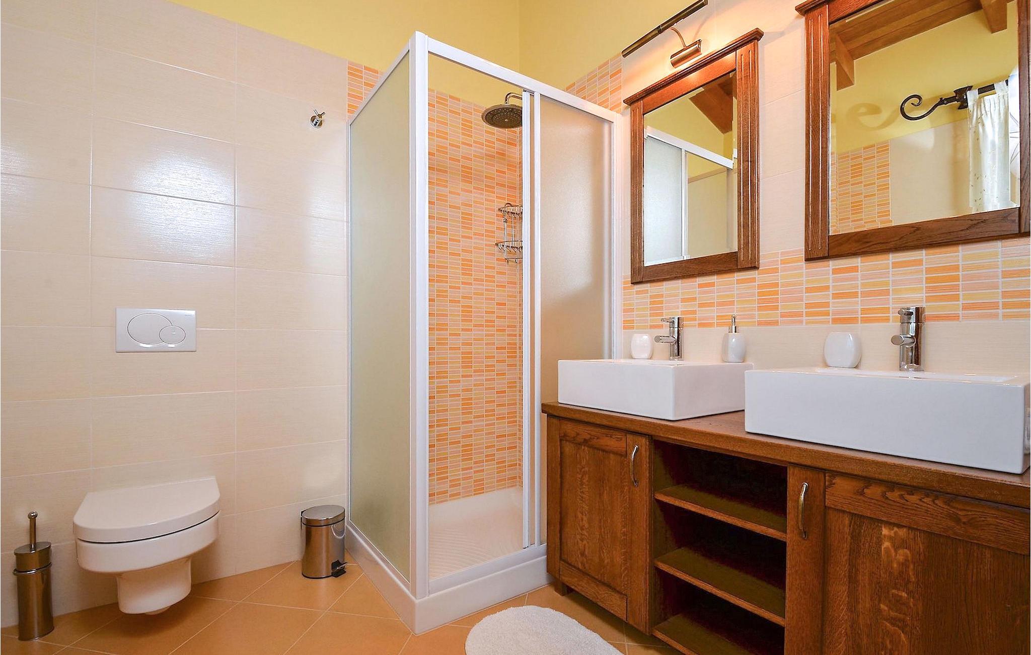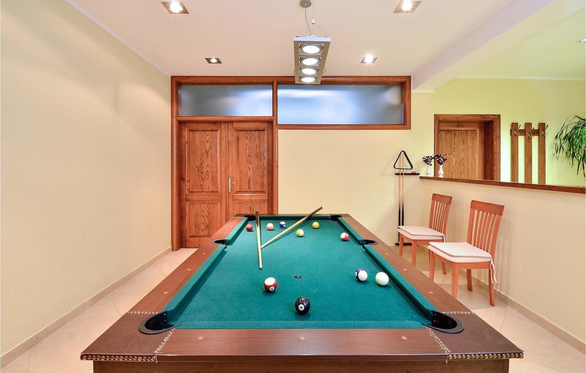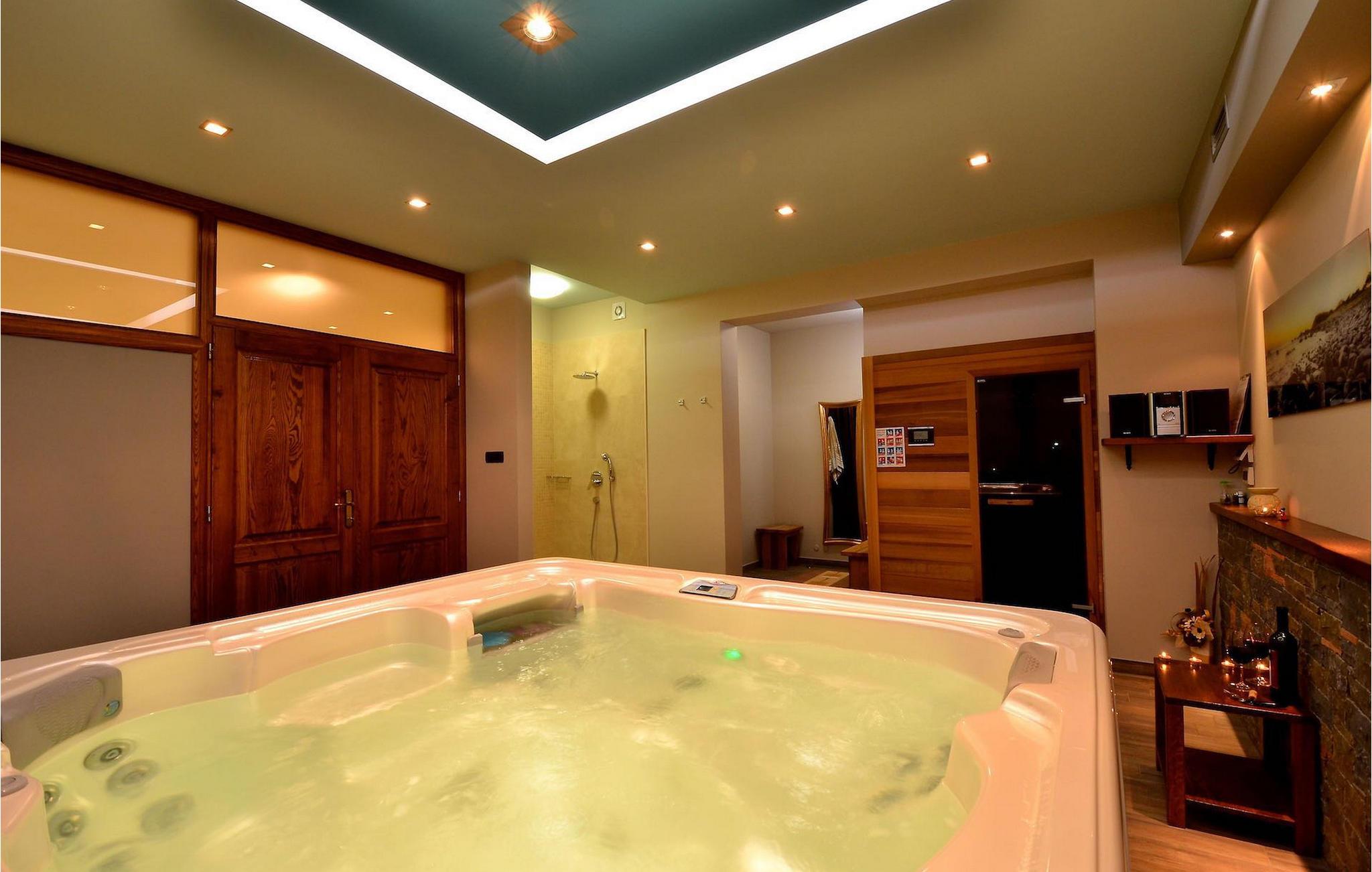 Den rummelige stue i denne villa er et ideelt område at samles, da det omfatter et stort træbord med plads til tolv og en traditionel istrisk pejs. Mens åbningen til venstre fører ind i et køkken udstyret på en moderne måde, trækker den forreste dig ud på en terrasse med udsigt over det hvide trøffelhabitat, den begravede sø Butoniga og flere maleriske, historiske små byer. Lejen inkluderer en gratis trøffelsmagning arrangeret af ejerne. På samme etage er der et rummeligt to-personers soveværelse med eget bad med udgang til terrassen. Villaen tilbyder lokale kvalitetsprodukter lavet af ejerne, såsom istriske pølser med trøfler, trøffelost, trøffelhonning. Anden sal er reserveret til tre soveværelser. Hvert soveværelse har eget badeværelse med to håndvaske og bruser. Stueetagen er reserveret til rekreation, tidsfordriv og afslapning. Intet er overladt til tilfældighederne med alle generationer taget hånd om. For de mindste er der et børnehjørne, mens der for de ældre er plads til afslapning – et wellness-område med en fire personers jacuzzi og en finsk sauna. Også på denne etage er der poolbord, bordfodbold og dartmaskine samt motionsområde med direkte adgang til poolen. Gæsterne har også et vaskeri til deres rådighed. Det femte og også det største soveværelse ligger i stueetagen, det har en dobbeltseng og 2 enkeltsenge, et moderne badeværelse og direkte adgang til haven. Hvis du har brug for at køle af i de varme sommermåneder, er der en 50 m2 stor pool med hydromassagepumper. Du kan fange lidt sol i en af de tolv liggestole, og hvis du ønsker et mindre isoleret sted, vælg et af oliventræerne for at give dig lidt skygge. Mens du nyder udsigten over søen og de omkringliggende hundredeårsskove, kan din yngste hygge sig i sandkassen, på vippen eller gyngerne. I haven er der også et overdækket udekøkken med grill, gaskomfur, vask, køleskab og et tolv personers bord. Her kan gæsterne selv tilberede specialiteter fra Istrien eller stole på professionel vejledning. En mobil butik med basale dagligvarer kommer til landsbyen 3 gange om ugen. Villa Olea er beliggende i en lille og rolig landsby kaldet Paladini, beliggende på en unik høj position, der tilbyder perfekt privatliv og betagende udsigt til søen Butoniga og dens magiske omgivelser. Den større by er Buzet, der er almindeligt kendt som 'trøflernes by', da skovene langs Mirna-floden er særligt rige på dem. Beliggende på en bakke, blev det befæstet under det romerske styre, og den centrale plads med sognekirken for Jomfru Marias himmelfart er selve kernen i den gamle bydel. Mens du er her, så sørg for ikke at gå glip af et besøg på County Museum of Buzet og dets omgivelser. I Buzets omgivelser er der nogle meget velbevarede middelalderbyer.