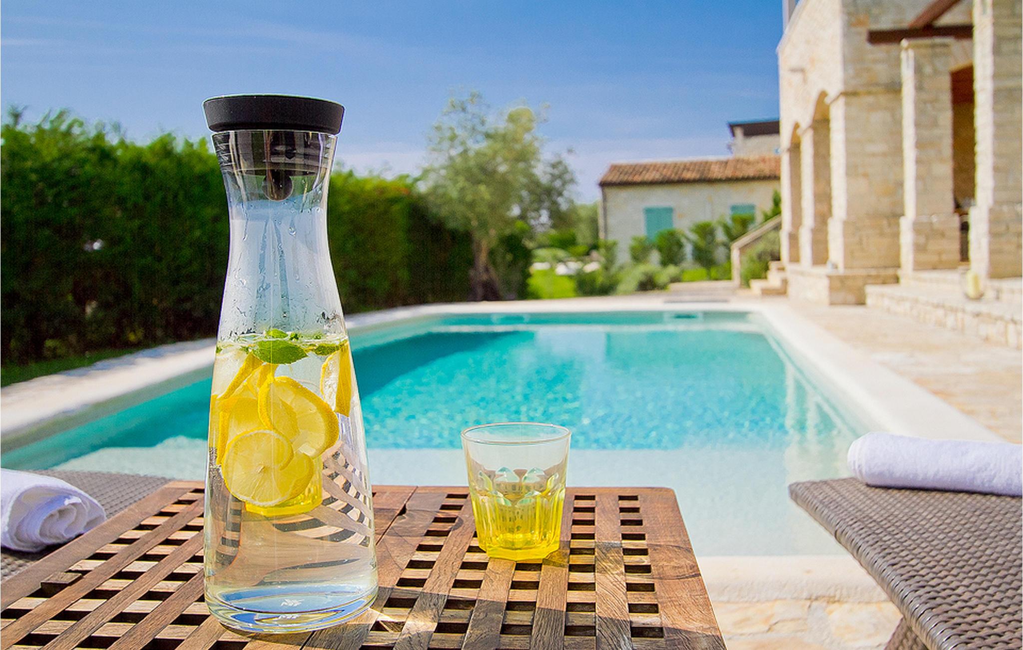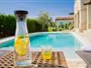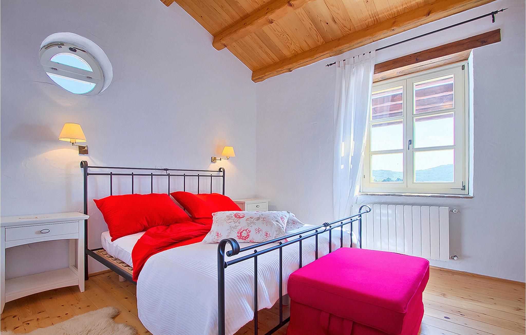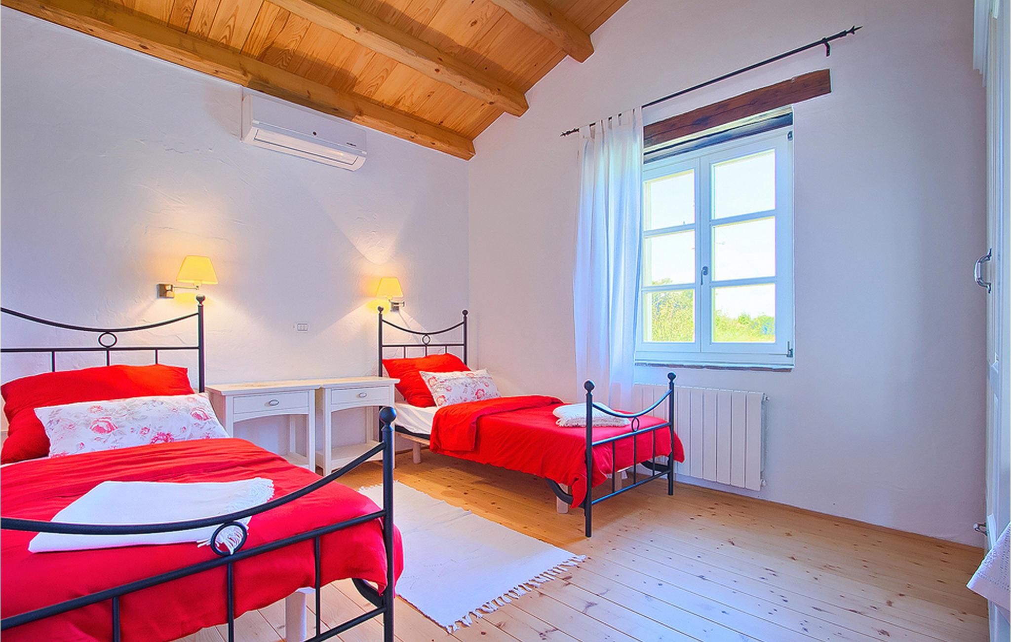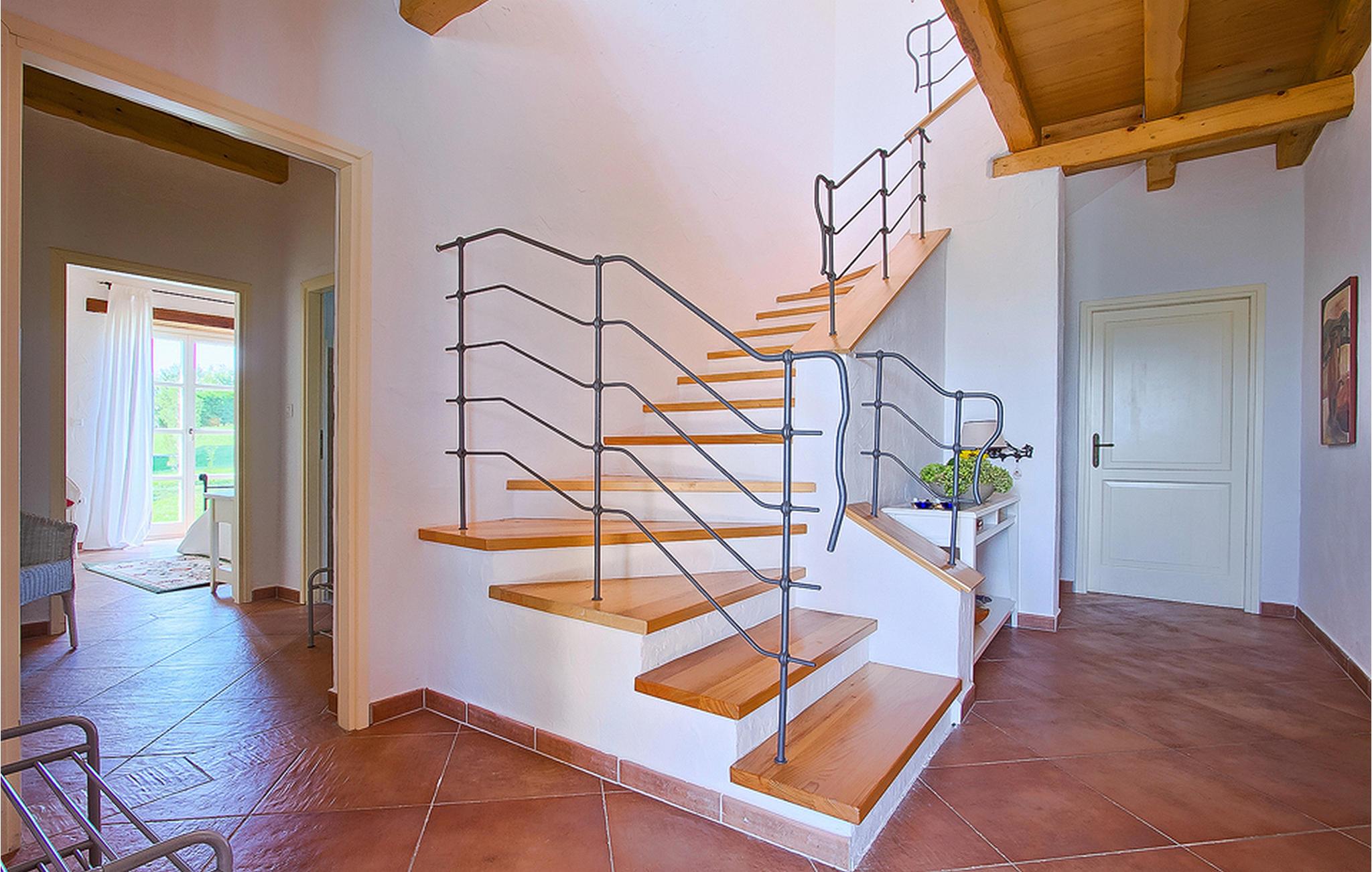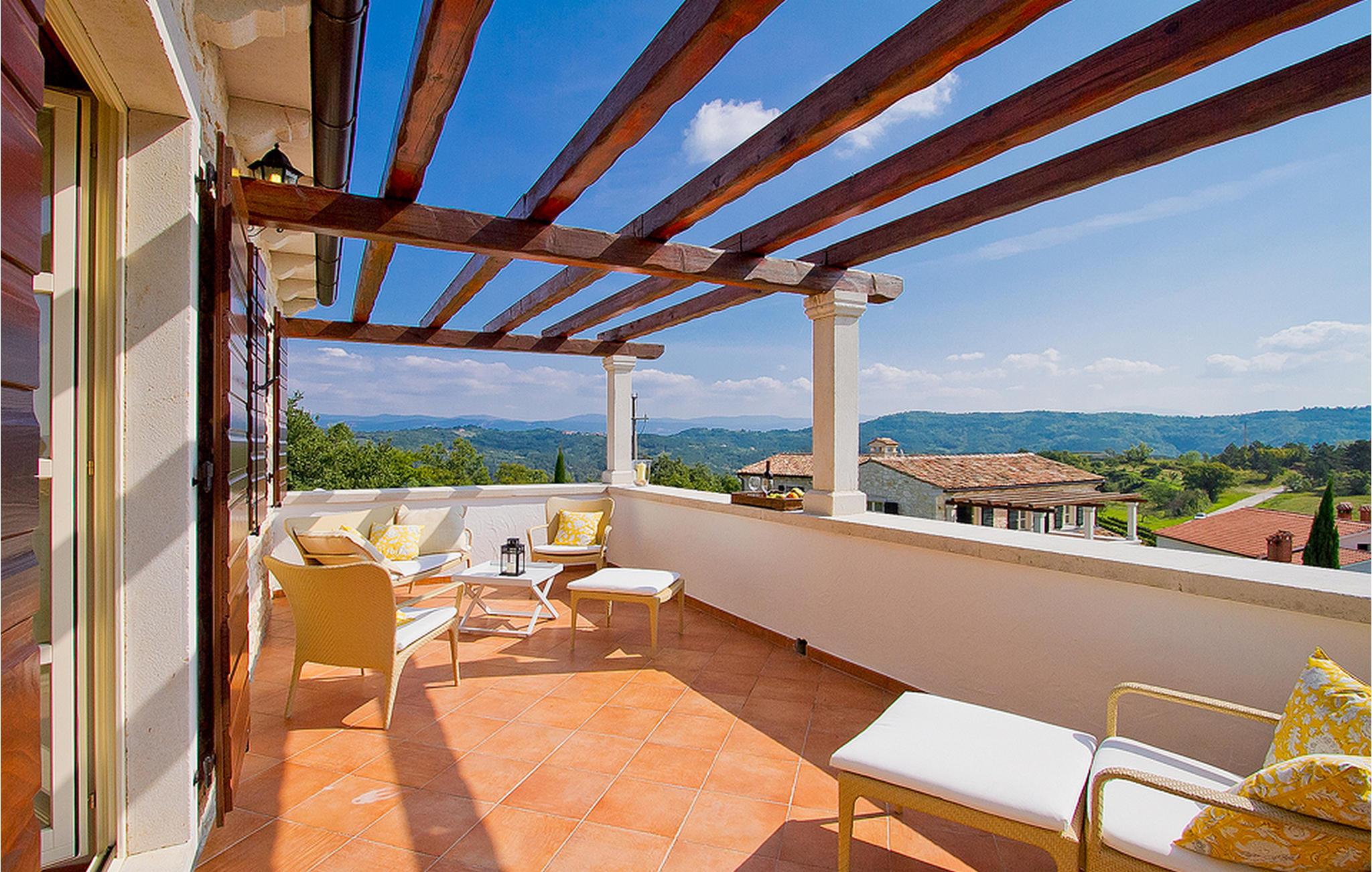 In der wunderschönen mit Holzbalken geschmackvoll dekorierten Villa gibt es vier Schlafzimmer, drei Bäder und ein schönes Wohnzimmer mit angeschlossener Küche und Essbereich. Das Erdgeschoss verfügt über Zugang zum Pool, charmanten grünen Garten und gemütlicher Essecke. Hier können Sie leckere Mahlzeiten zubereiten oder einfach ein Glas guten istrischen Weins genießen. Der große private Pool 40 m2 ist ausschließlich für die Nutzung während Ihres Aufenthaltes in dieser schönen Villa. Aus der Terrasse im Obergeschoss können Sie den herrlichen Blick auf die Umgebung genießen. Villa Livia hat einen schönen Garten rund um die Villa. Hier können Sie in der Sonne an bequemen Liegestühlen genießen. Diese Villa bietet einen ruhigen Rückzugsort aus der Hektik des 21. Jahrhunderts und ist doch gut als Ausgangspunkt, von dem Sie alle Freuden, die Istrien zu bieten hat, besuchen können. Jugendgruppen sind nicht erlaubt.
