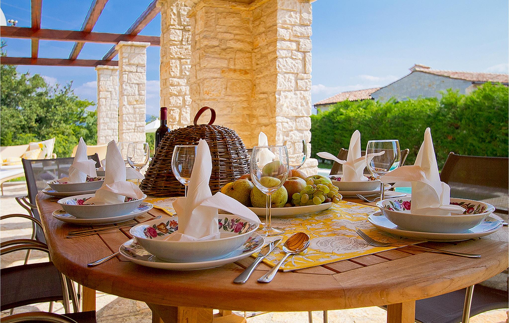 Villa Livia befindet sich in einem kleinen und ruhigen Dorf namens Sovinjak außerhalb von Buhet in Zentralistrien. Zentralistrien ist für eine Landschaft von kleinen, malerischen, mittelalterlichen Städten bekannt, die unwiderstehlich an Toskana oder Provence erinnern. Heute ist Buzet weithin als die "Stadt der Trüffel" bekannt, da die Wälder entlang des Flusses Mirna besonders reich an diesen göttlichen Knollen sind. Die Stadt, mit seinen kulturellen und historischen Denkmälern, zusammen mit gesunden, hausgemachtem Essen (vor allem, die Zutaten aus eigenem Anbau und der hochgeschätzte weiße Trüffel), exquisiten Weine aus der Region, Folklore (alte Musik - Klänge und Tänze - Balun , Legenden der Zitadellen) und Perlen der kleinen Städte an geformten Hügeln (Motovun, Roc, Hum, Vrh und Sovinjak) ziehen Touristen jedes Jahr an. Während Ihres Aufenthalts in Istrien verpassen Sie nicht, die lokalen istrischen und mediterranen Spezialitäten zu probieren und zu genießen: Trüffel, Olivenöl, istrischen Ochsen Boškarin, Prosciutto, Fisch.