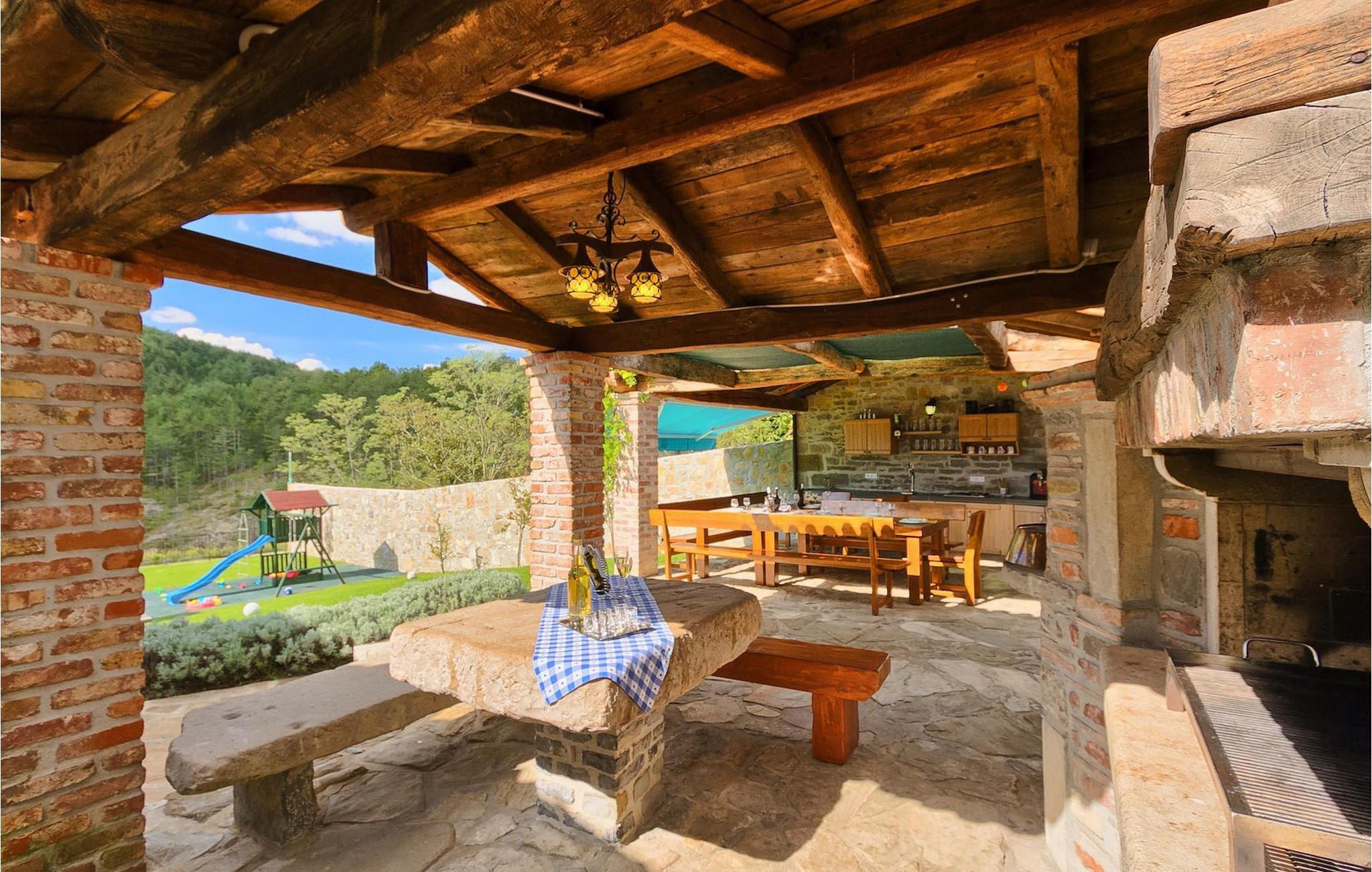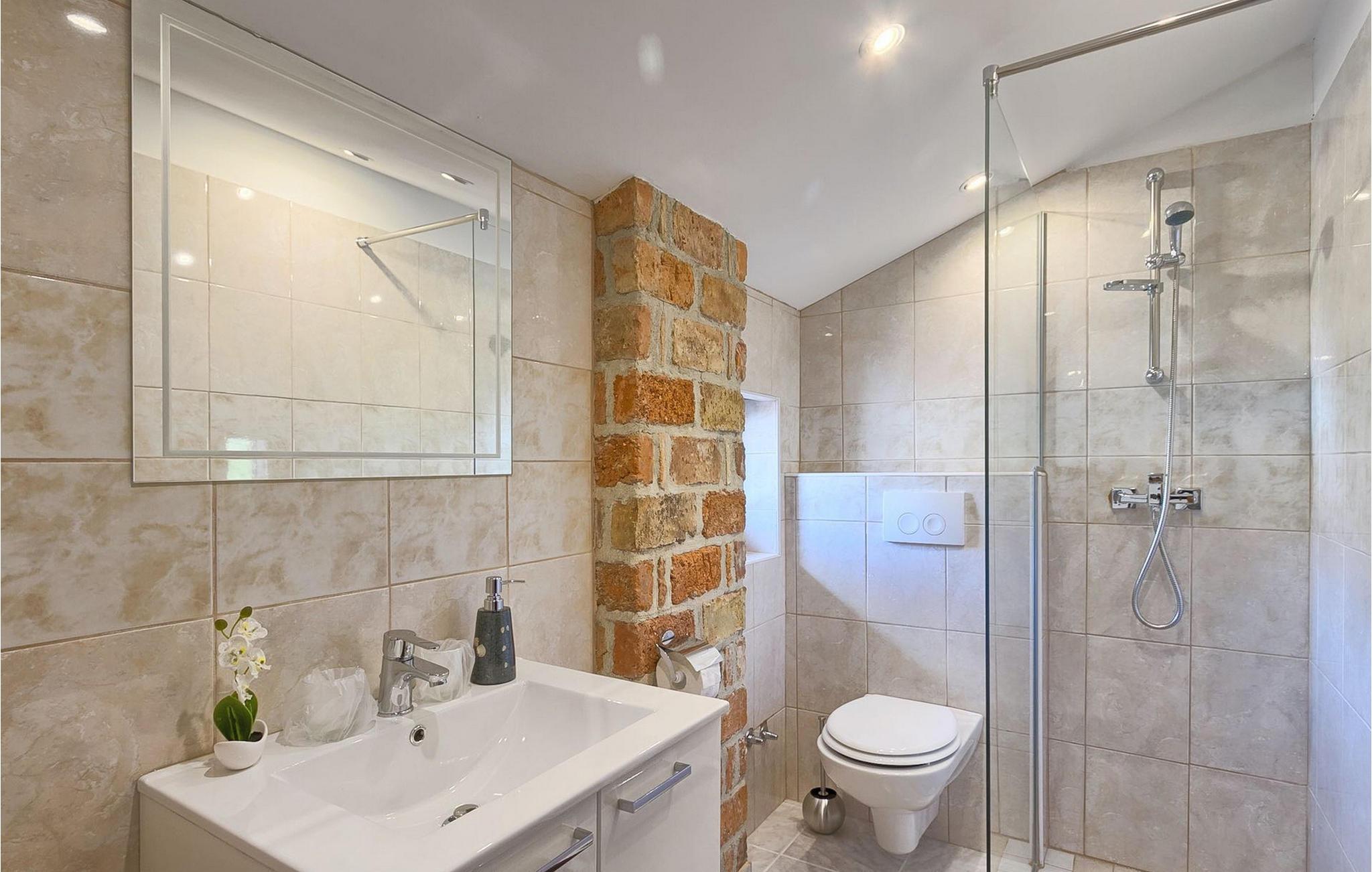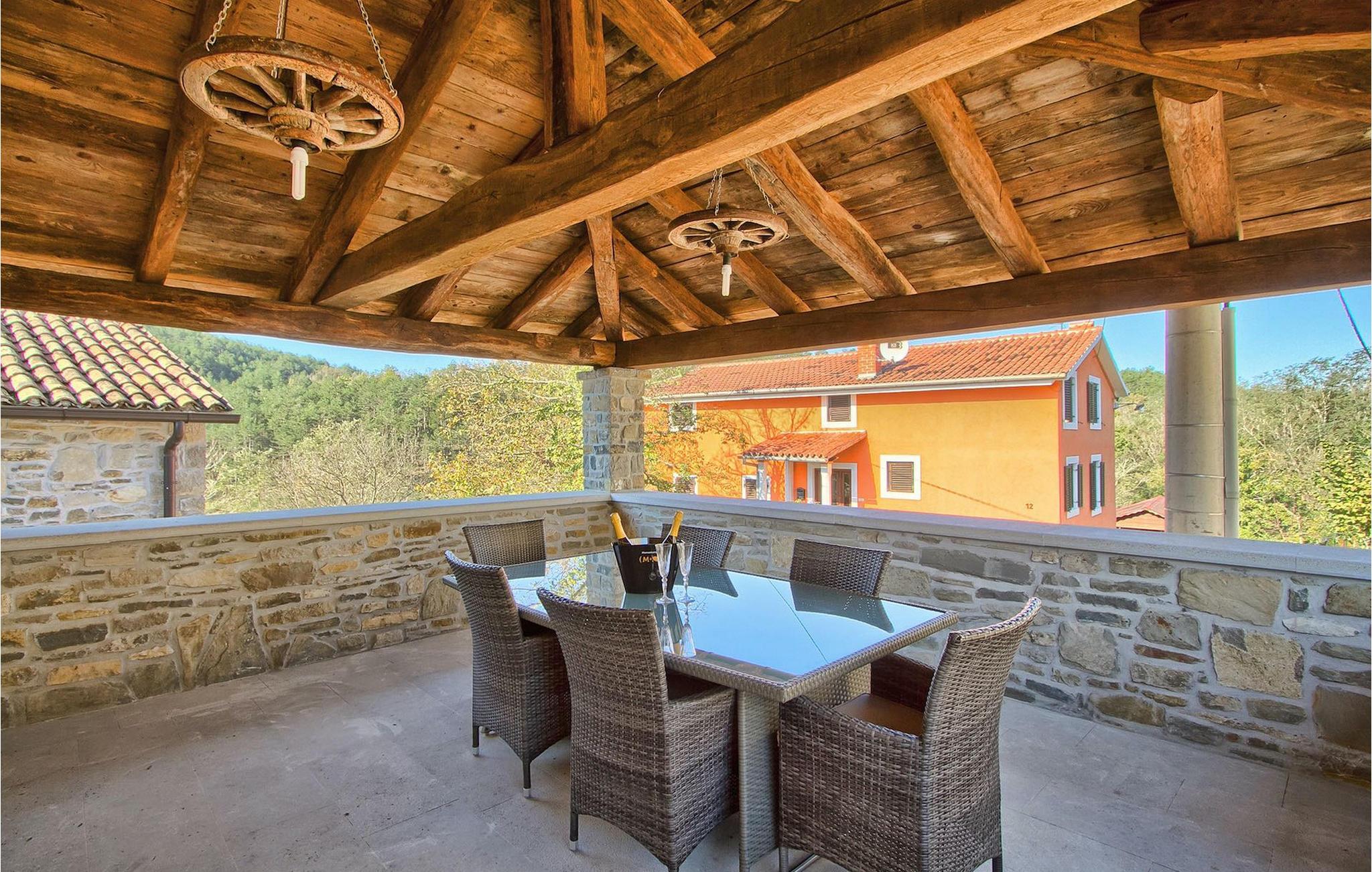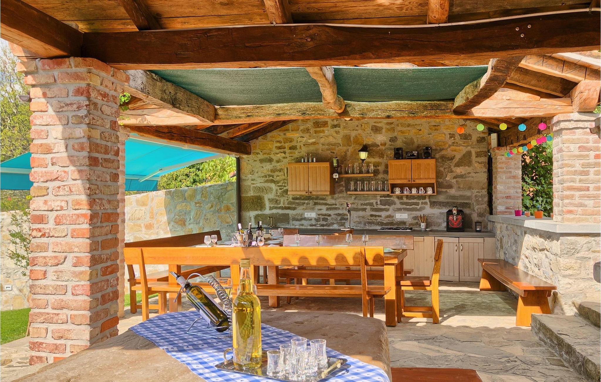 En nænsomt restaureret gammel stenejendom omgivet af drømmeagtig natur. Villa Denis består af fire individuelt indrettede huse og er ideel til familieferier, der giver privatliv og sikrer afslapning. Det første hus med lysegrønne skodder har et rummeligt åbent opholds-, spise- og køkkenområde samt et soveværelse med dobbeltseng og eget badeværelse i stueetagen. Der er yderligere 3 soveværelser med dobbeltsenge med private badeværelser på øverste etage. Det 2. hus med mørkegrønne skodder har køkken og spiseplads i stueetagen samt 1 soveværelse med dobbeltseng og 1 soveværelse med 2 enkeltsenge på øverste etage med fælles badeværelse. Det 3. hus med blå skodder har 1 soveværelse med dobbeltseng og 1 soveværelse med 2 enkeltsenge med et fælles badeværelse i stueetagen og et køkken, spisestue og opholdsstue på øverste etage med direkte adgang til terrassen med et andet udendørs opholdsområde. I stueetagen af 4. hus med røde skodder er der spillelokale, fitnessrum og separat toilet. To soveværelser med dobbeltsenge med private badeværelser er placeret på første sal, og der er yderligere 2 soveværelser med dobbeltsenge (et med en ekstra enkeltseng) begge med eget badeværelse på anden sal. Udenfor er der en indbydende infinity pool, en dejlig have, udendørs spiseplads og køkken med grill. Mens du skødesløst nyder udsigten over de omkringliggende hundredeårsskove, kan din yngste more sig på legepladsen. Villaen er beliggende lige uden for den antikke by Buzet. Buzet ligger i den nordlige del af Istrien nær grænsen til Slovenien. Dens historiske kerne, der stammer fra middelalderen, ligger på en bakketop over en frugtbar dal af den længste flod i Istrien - Mirna. I dag er Buzet almindeligt kendt som 'trøflernes by', da skovene langs Mirna-floden er særligt rige på denne guddommelige knold. Ifølge nogle synspunkter er den hvide trøffel i Istrien lige så god som den mest berømte hvide trøffel fra den italienske region Alba. Til ære for denne trøffel arrangeres hvert år Trøffeldage i september og oktober. Den anden weekend i september finder også en stor folkefest i Buzet sted med en særlig attraktion – en kæmpe omelet (almindeligvis kendt som 'fritada' eller 'fritaja') med over 2.000 æg og 10 kg trøfler er tilberedt i en kæmpestor pande. Denne begivenhed markerer officielt begyndelsen på Trøffeldage i Istrien. I Buzets omgivelser er der nogle meget velbevarede middelalderbyer. En bil anbefales.