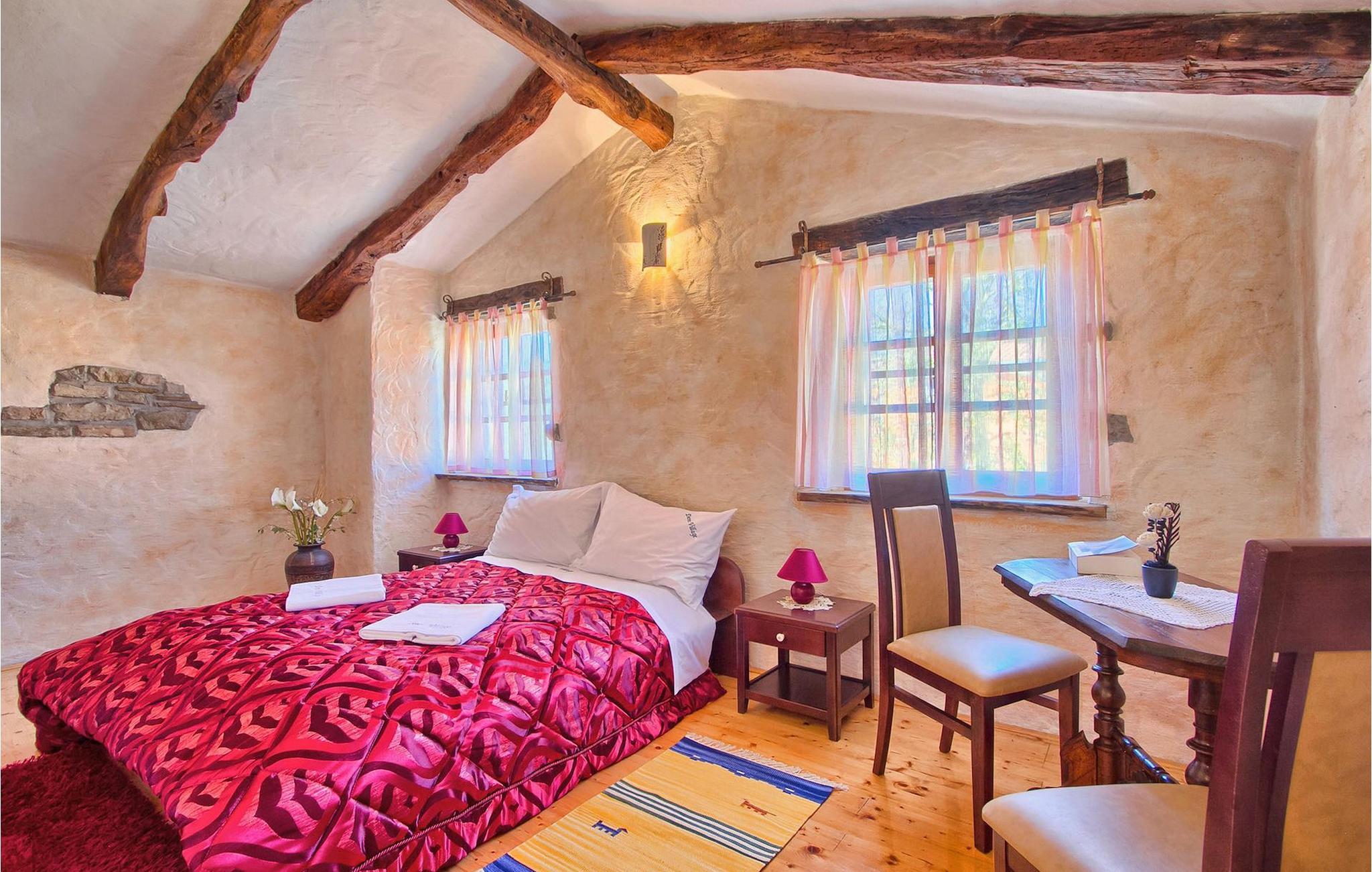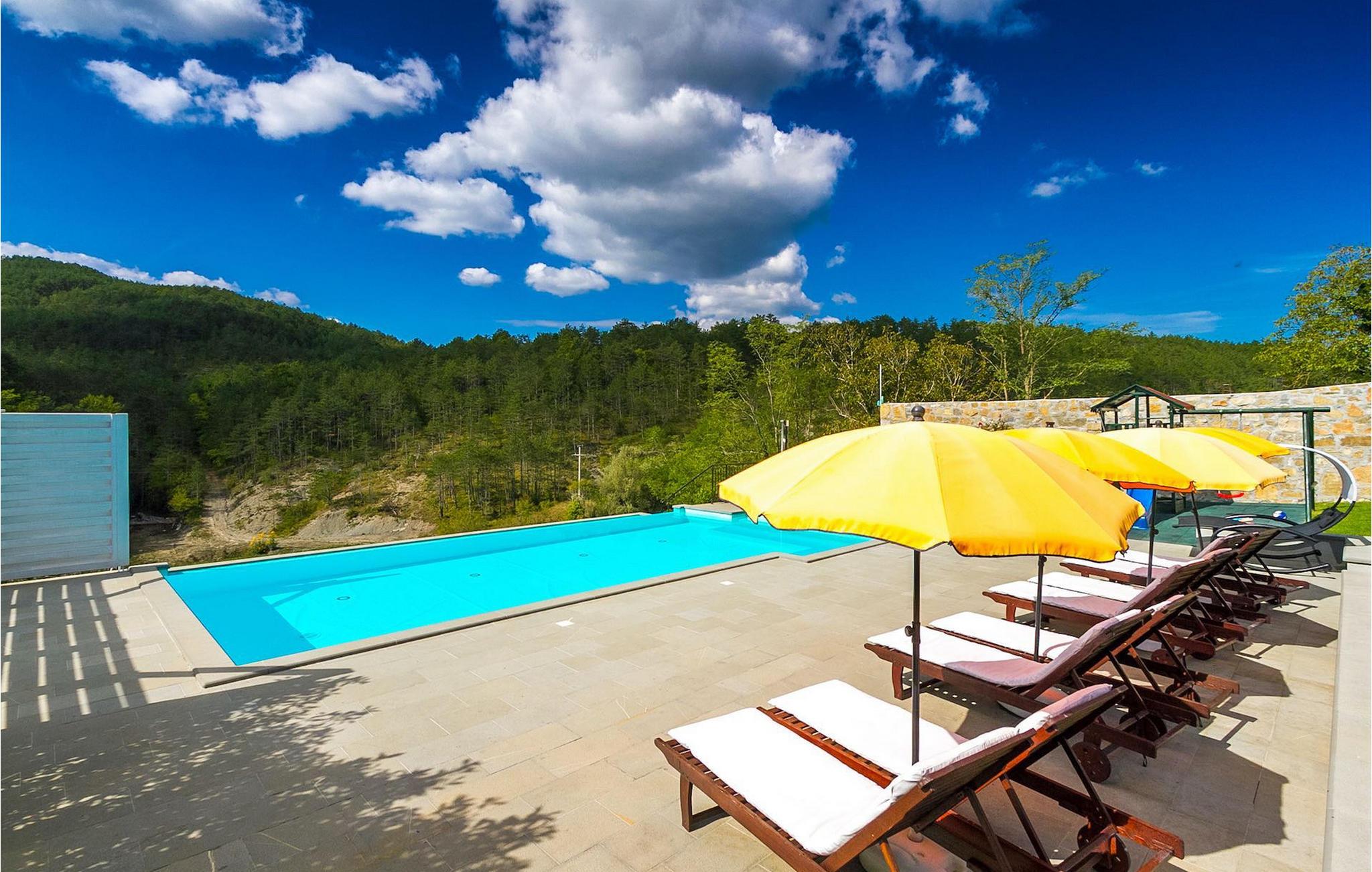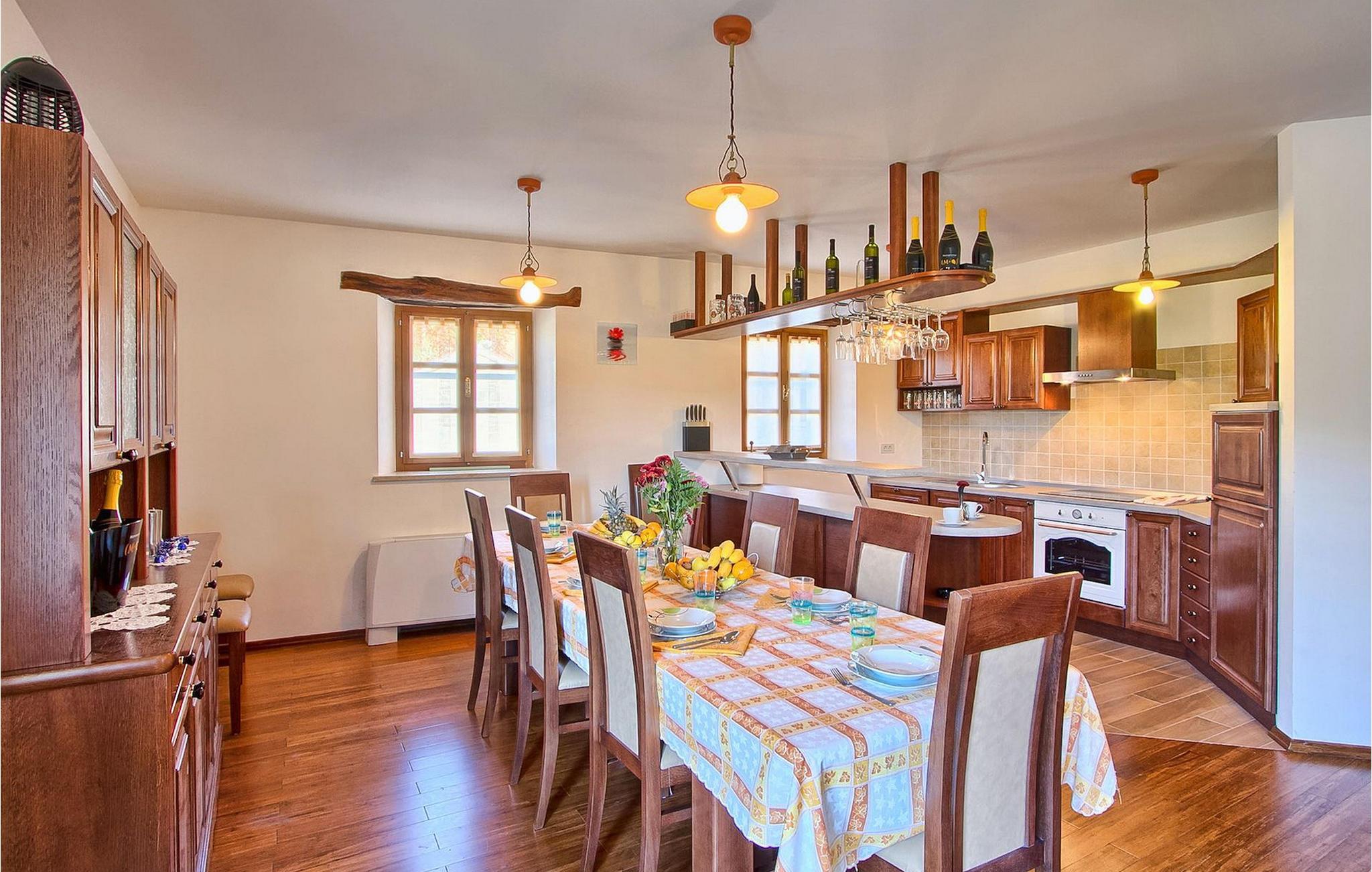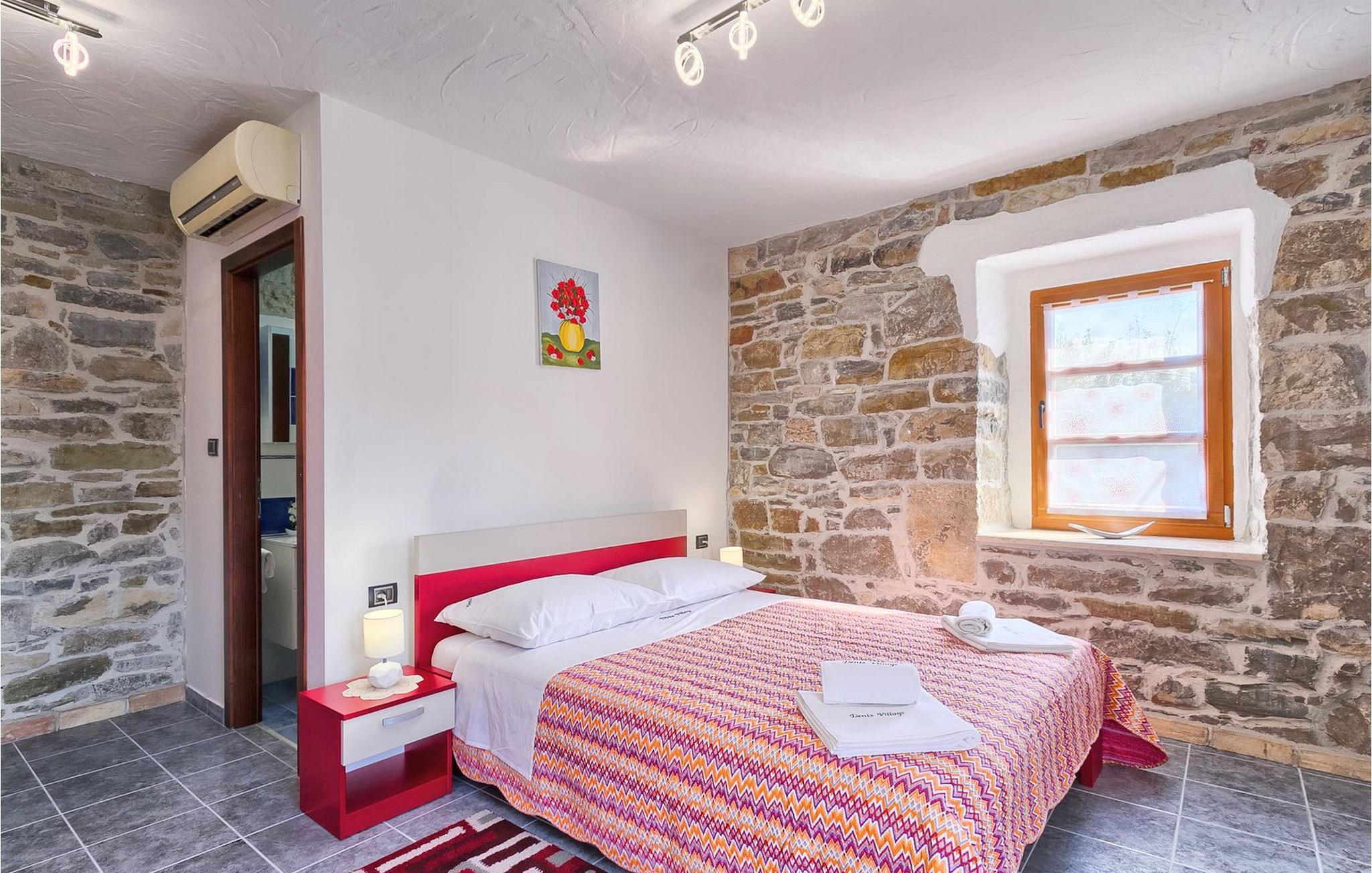 En nænsomt restaureret gammel stenejendom omgivet af drømmeagtig natur. Villa Denis består af fire individuelt indrettede huse og er ideel til familieferier, der giver privatliv og sikrer afslapning. Det første hus med lysegrønne skodder har et rummeligt åbent opholds-, spise- og køkkenområde samt et soveværelse med dobbeltseng og eget badeværelse i stueetagen. Der er yderligere 3 soveværelser med dobbeltsenge med private badeværelser på øverste etage. Det 2. hus med mørkegrønne skodder har køkken og spiseplads i stueetagen samt 1 soveværelse med dobbeltseng og 1 soveværelse med 2 enkeltsenge på øverste etage med fælles badeværelse. Det 3. hus med blå skodder har 1 soveværelse med dobbeltseng og 1 soveværelse med 2 enkeltsenge med et fælles badeværelse i stueetagen og et køkken, spisestue og opholdsstue på øverste etage med direkte adgang til terrassen med et andet udendørs opholdsområde. I stueetagen af 4. hus med røde skodder er der spillelokale, fitnessrum og separat toilet. To soveværelser med dobbeltsenge med private badeværelser er placeret på første sal, og der er yderligere 2 soveværelser med dobbeltsenge (et med en ekstra enkeltseng) begge med eget badeværelse på anden sal. Udenfor er der en indbydende infinity pool, en dejlig have, udendørs spiseplads og køkken med grill. Mens du skødesløst nyder udsigten over de omkringliggende hundredeårsskove, kan din yngste more sig på legepladsen. Villaen er beliggende lige uden for den antikke by Buzet. Buzet ligger i den nordlige del af Istrien nær grænsen til Slovenien. Dens historiske kerne, der stammer fra middelalderen, ligger på en bakketop over en frugtbar dal af den længste flod i Istrien - Mirna. I dag er Buzet almindeligt kendt som 'trøflernes by', da skovene langs Mirna-floden er særligt rige på denne guddommelige knold. Ifølge nogle synspunkter er den hvide trøffel i Istrien lige så god som den mest berømte hvide trøffel fra den italienske region Alba. Til ære for denne trøffel arrangeres hvert år Trøffeldage i september og oktober. Den anden weekend i september finder også en stor folkefest i Buzet sted med en særlig attraktion – en kæmpe omelet (almindeligvis kendt som 'fritada' eller 'fritaja') med over 2.000 æg og 10 kg trøfler er tilberedt i en kæmpestor pande. Denne begivenhed markerer officielt begyndelsen på Trøffeldage i Istrien. I Buzets omgivelser er der nogle meget velbevarede middelalderbyer. En bil anbefales.