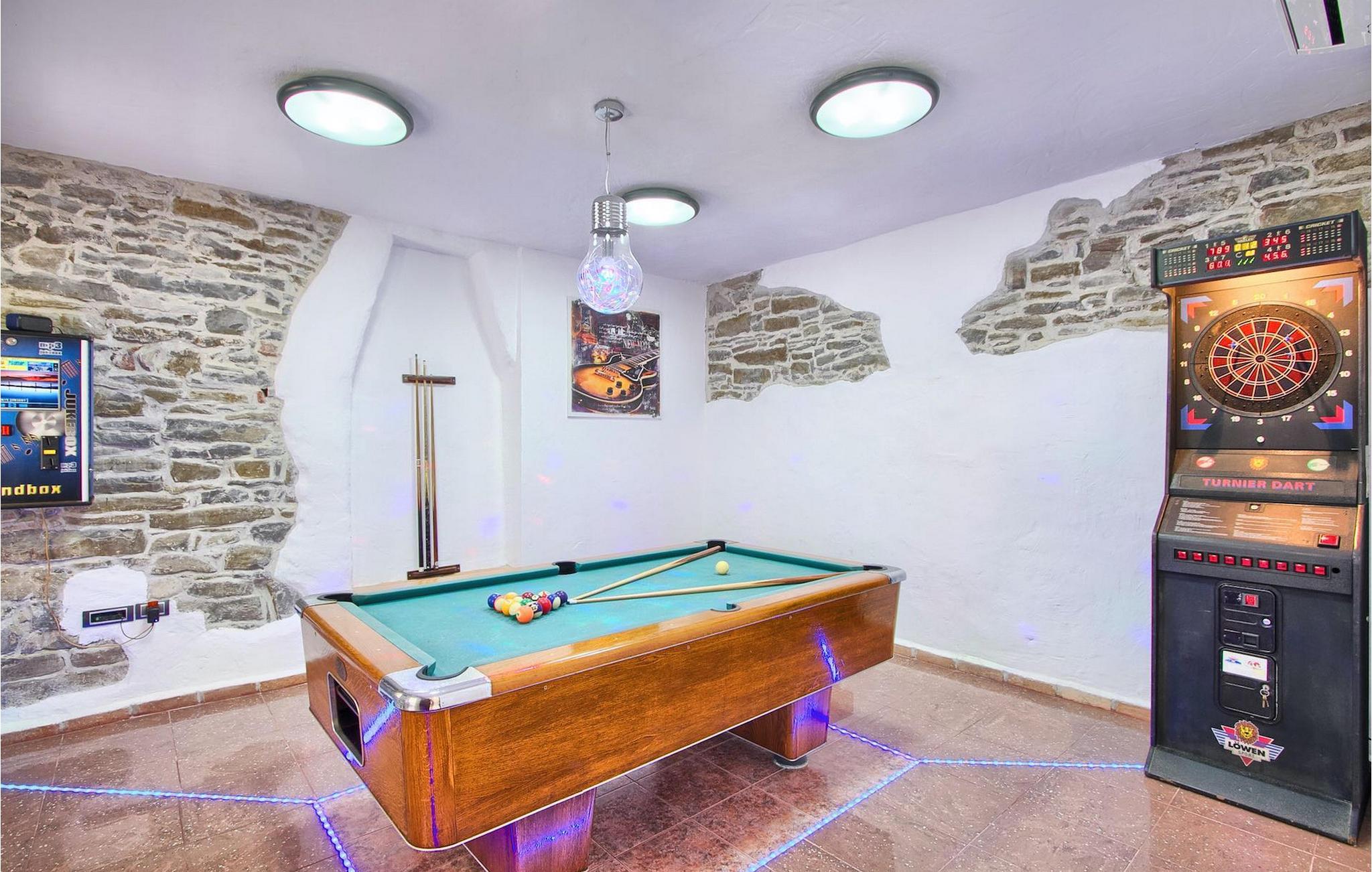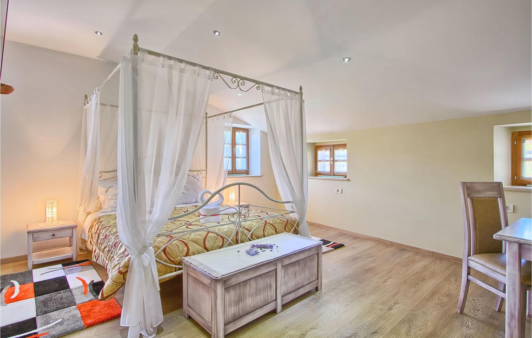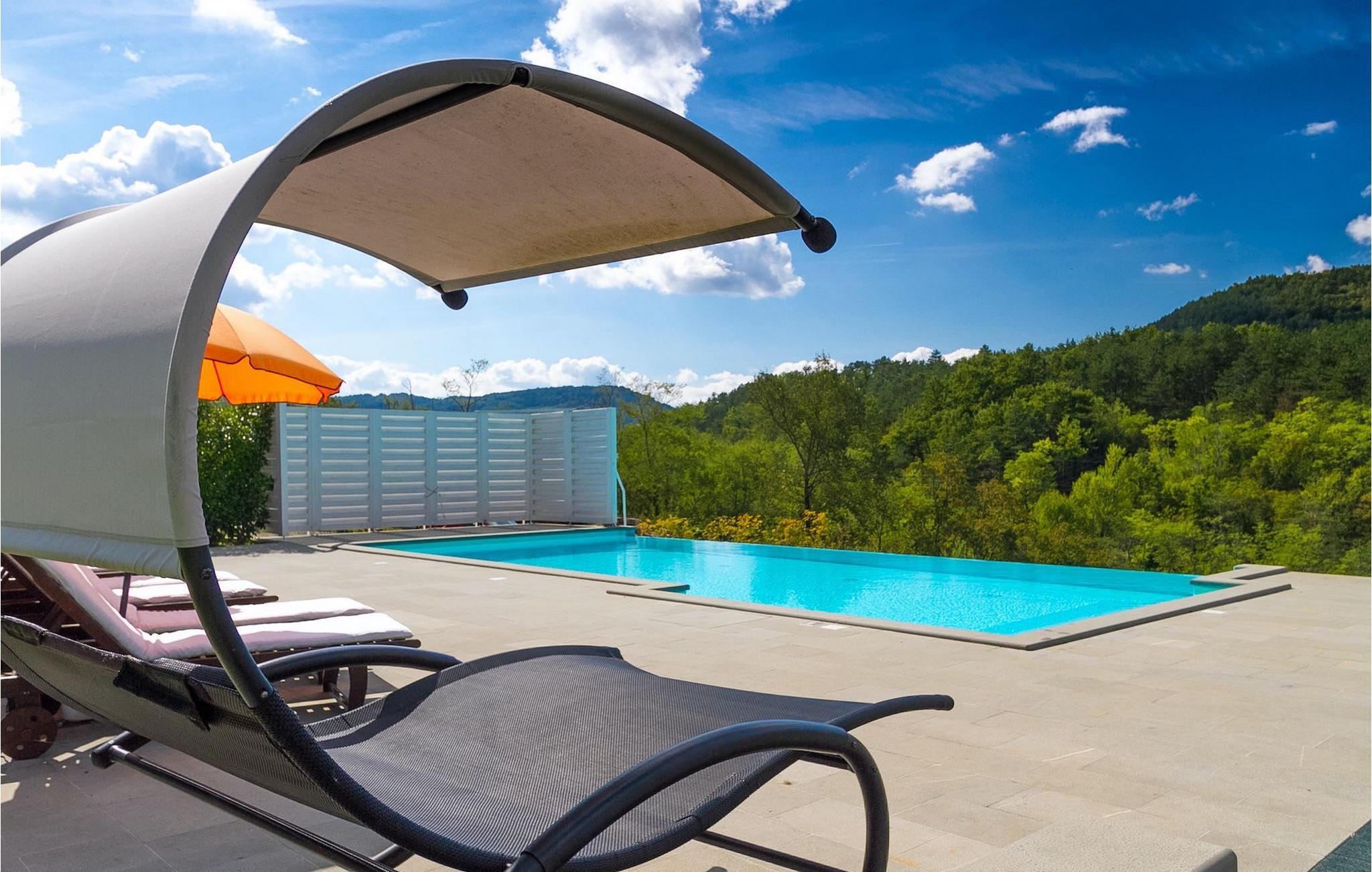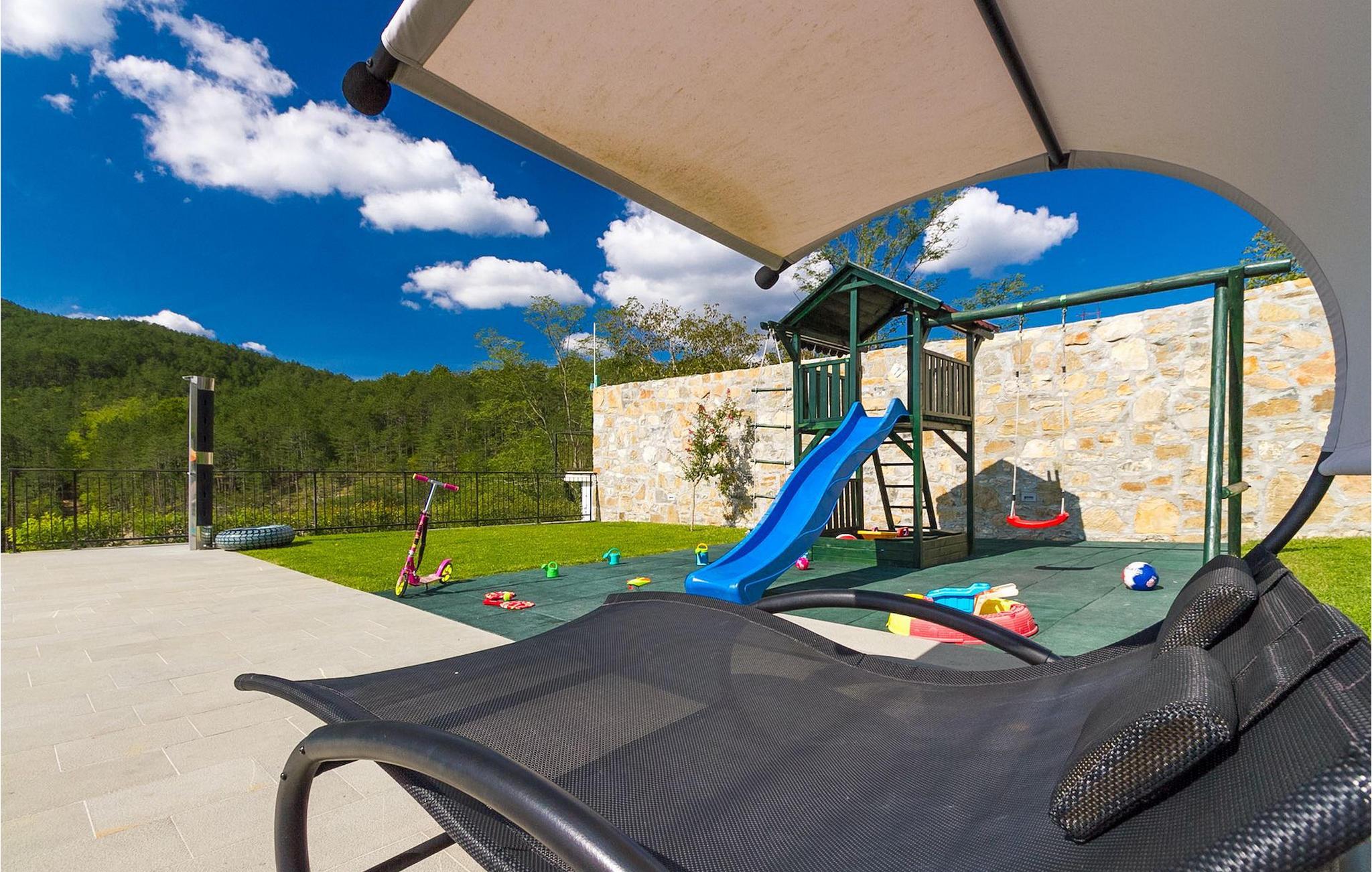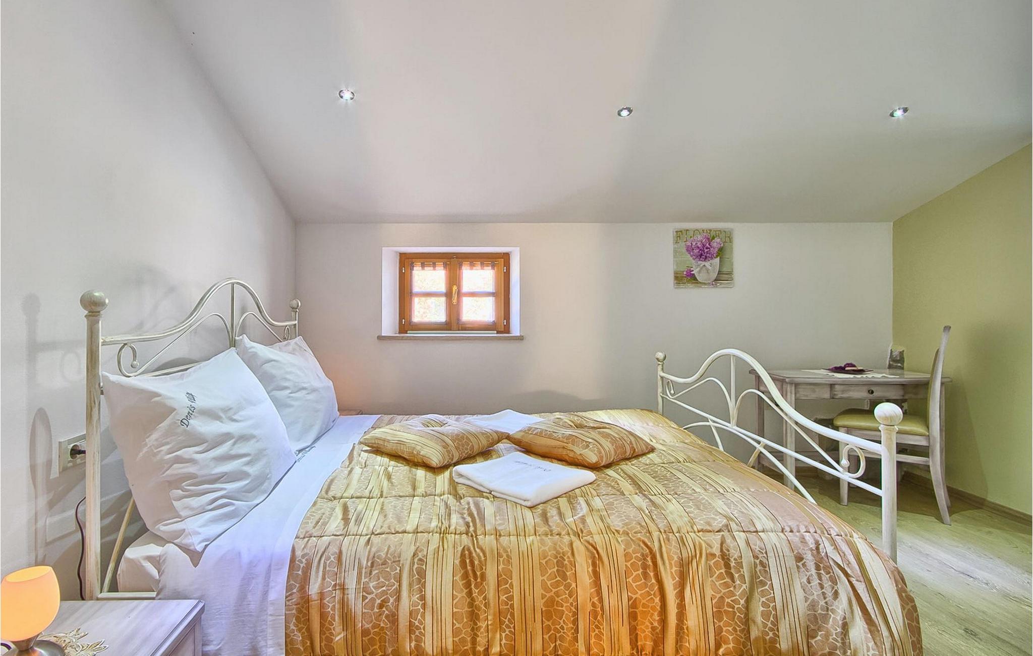 En nænsomt restaureret gammel stenejendom omgivet af drømmeagtig natur. Villa Denis består af fire individuelt indrettede huse og er ideel til familieferier, der giver privatliv og sikrer afslapning. Det første hus med lysegrønne skodder har et rummeligt åbent opholds-, spise- og køkkenområde samt et soveværelse med dobbeltseng og eget badeværelse i stueetagen. Der er yderligere 3 soveværelser med dobbeltsenge med private badeværelser på øverste etage. Det 2. hus med mørkegrønne skodder har køkken og spiseplads i stueetagen samt 1 soveværelse med dobbeltseng og 1 soveværelse med 2 enkeltsenge på øverste etage med fælles badeværelse. Det 3. hus med blå skodder har 1 soveværelse med dobbeltseng og 1 soveværelse med 2 enkeltsenge med et fælles badeværelse i stueetagen og et køkken, spisestue og opholdsstue på øverste etage med direkte adgang til terrassen med et andet udendørs opholdsområde. I stueetagen af 4. hus med røde skodder er der spillelokale, fitnessrum og separat toilet. To soveværelser med dobbeltsenge med private badeværelser er placeret på første sal, og der er yderligere 2 soveværelser med dobbeltsenge (et med en ekstra enkeltseng) begge med eget badeværelse på anden sal. Udenfor er der en indbydende infinity pool, en dejlig have, udendørs spiseplads og køkken med grill. Mens du skødesløst nyder udsigten over de omkringliggende hundredeårsskove, kan din yngste more sig på legepladsen. Villaen er beliggende lige uden for den antikke by Buzet. Buzet ligger i den nordlige del af Istrien nær grænsen til Slovenien. Dens historiske kerne, der stammer fra middelalderen, ligger på en bakketop over en frugtbar dal af den længste flod i Istrien - Mirna. I dag er Buzet almindeligt kendt som 'trøflernes by', da skovene langs Mirna-floden er særligt rige på denne guddommelige knold. Ifølge nogle synspunkter er den hvide trøffel i Istrien lige så god som den mest berømte hvide trøffel fra den italienske region Alba. Til ære for denne trøffel arrangeres hvert år Trøffeldage i september og oktober. Den anden weekend i september finder også en stor folkefest i Buzet sted med en særlig attraktion – en kæmpe omelet (almindeligvis kendt som 'fritada' eller 'fritaja') med over 2.000 æg og 10 kg trøfler er tilberedt i en kæmpestor pande. Denne begivenhed markerer officielt begyndelsen på Trøffeldage i Istrien. I Buzets omgivelser er der nogle meget velbevarede middelalderbyer. En bil anbefales.